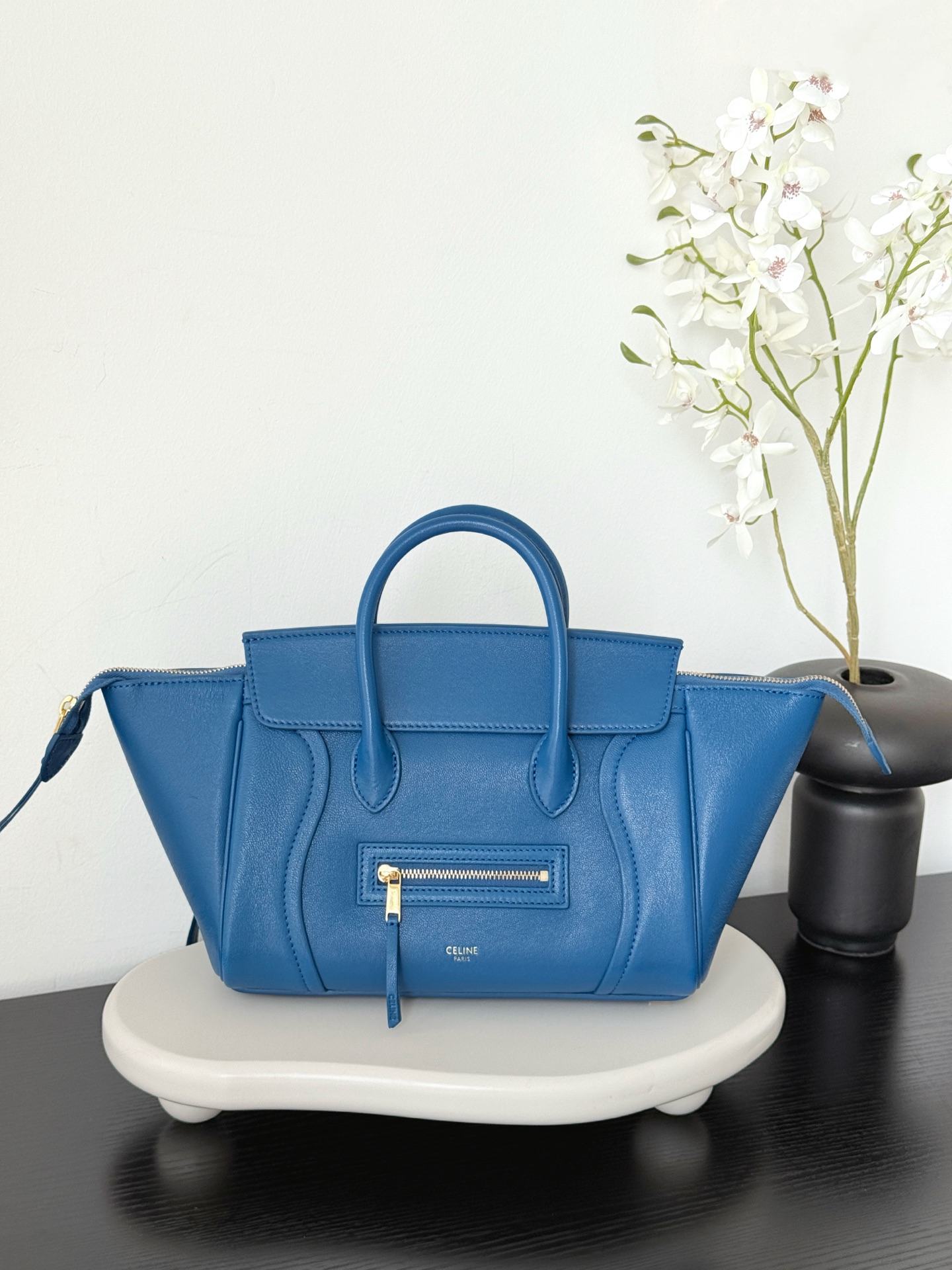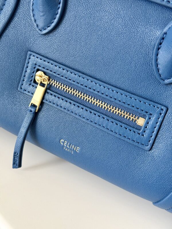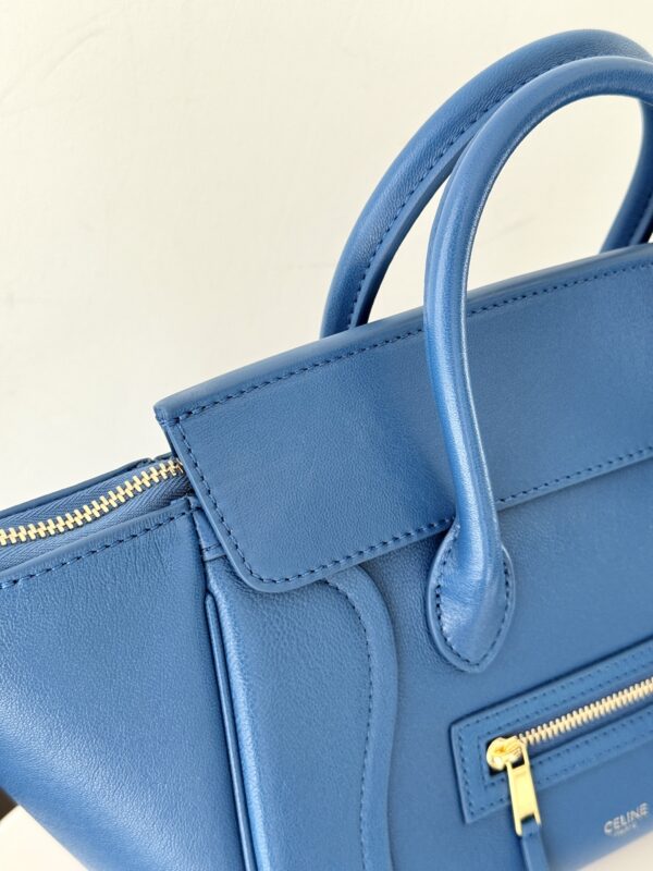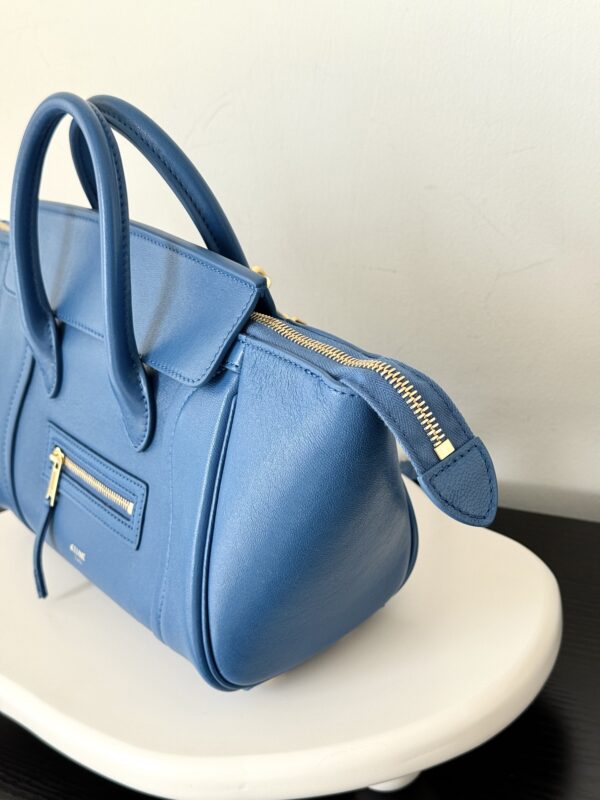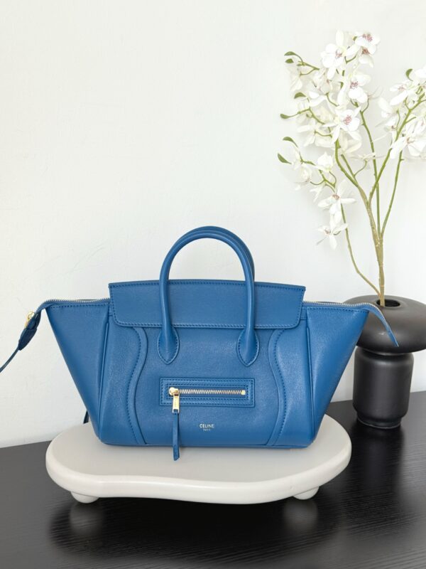 셀린느의 웃는 얼굴 가방이 새로운 모습으로 돌아왔습니다. 부드럽고 가벼운 양가죽 소재로 제작되어 우아함을 더합니다.