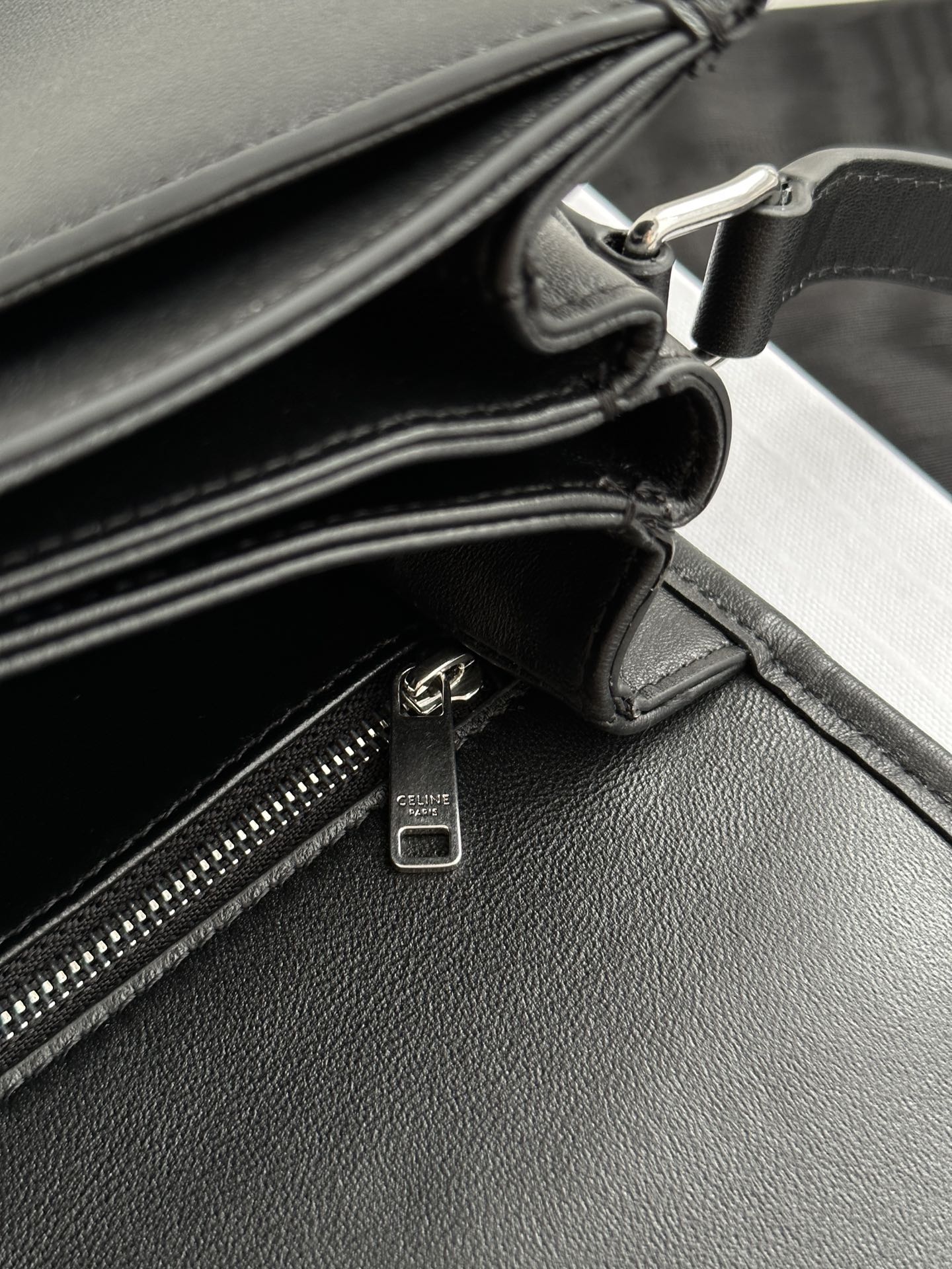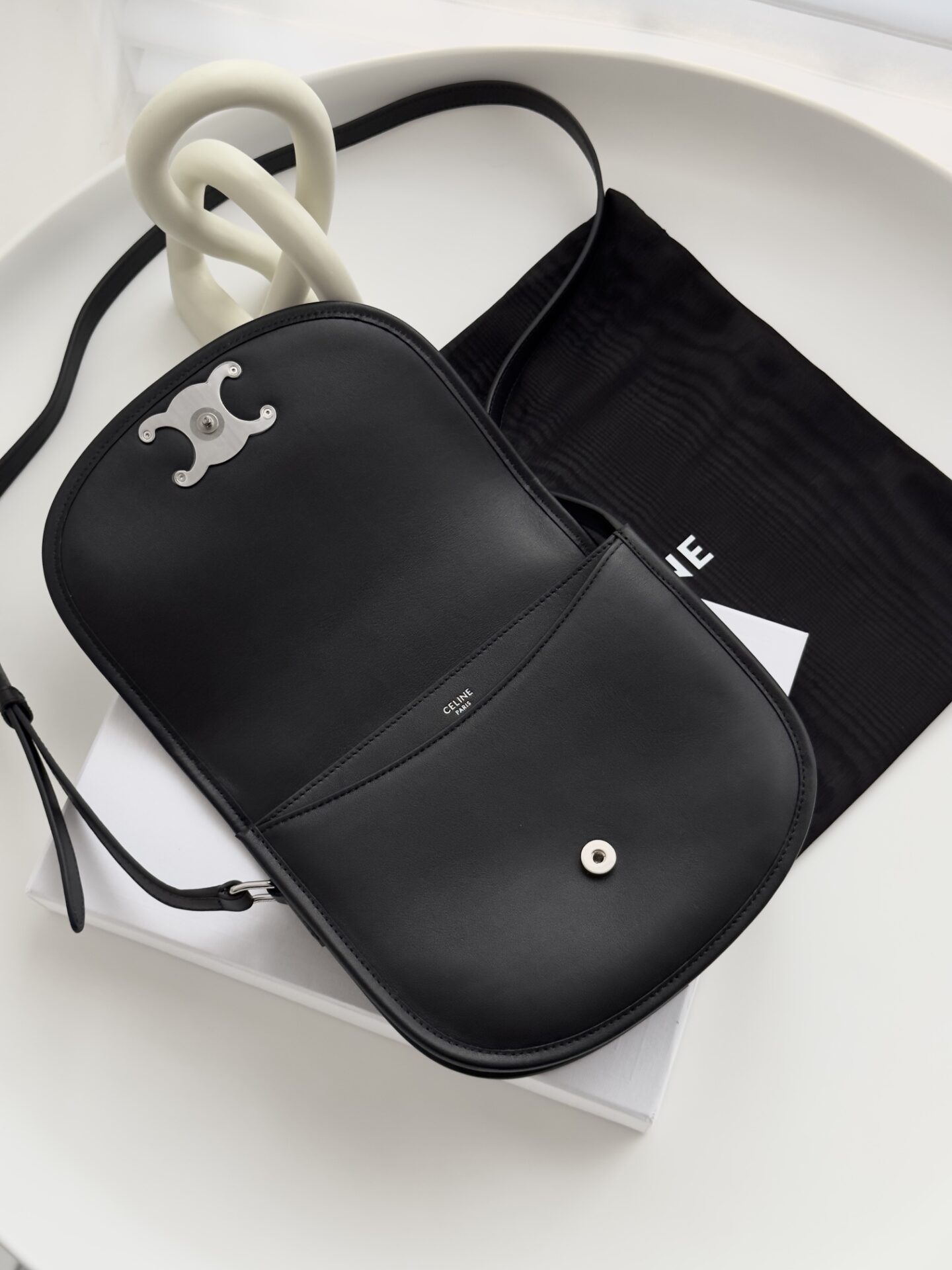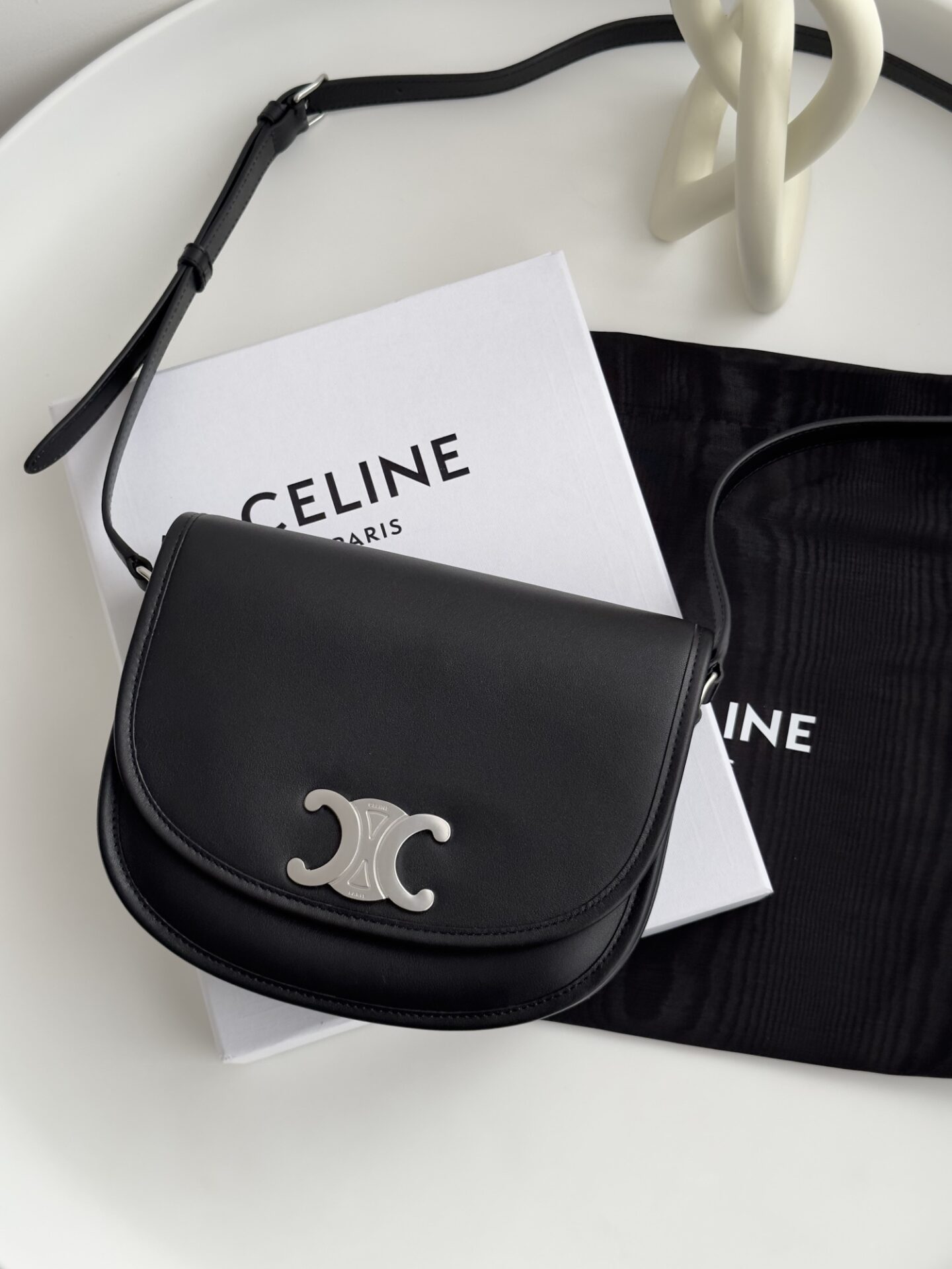 셀린느의 마차백은 블랙 색상으로 고급스러운 느낌을 자아냅니다.