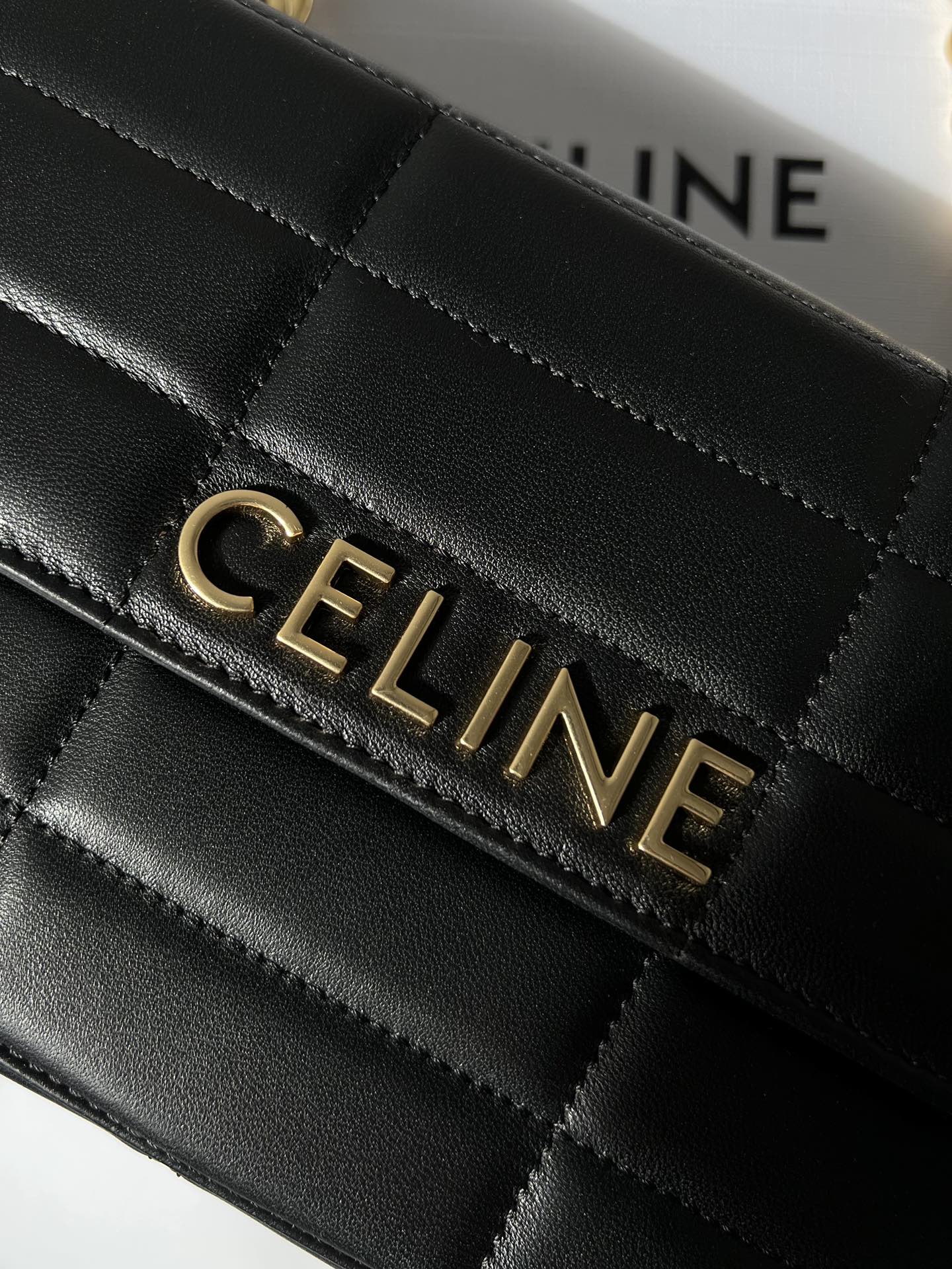 셀린느의 마텔라세 모노크롬 퀼팅 양가죽 체인 숄더백입니다.