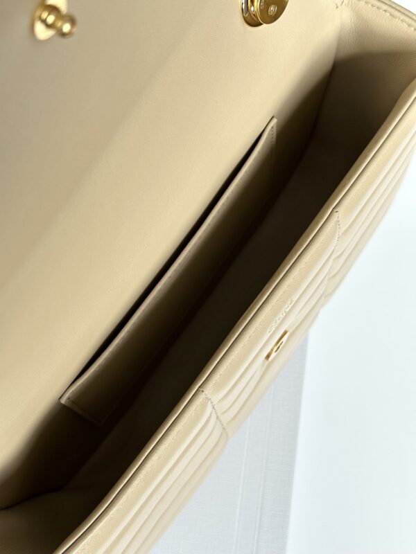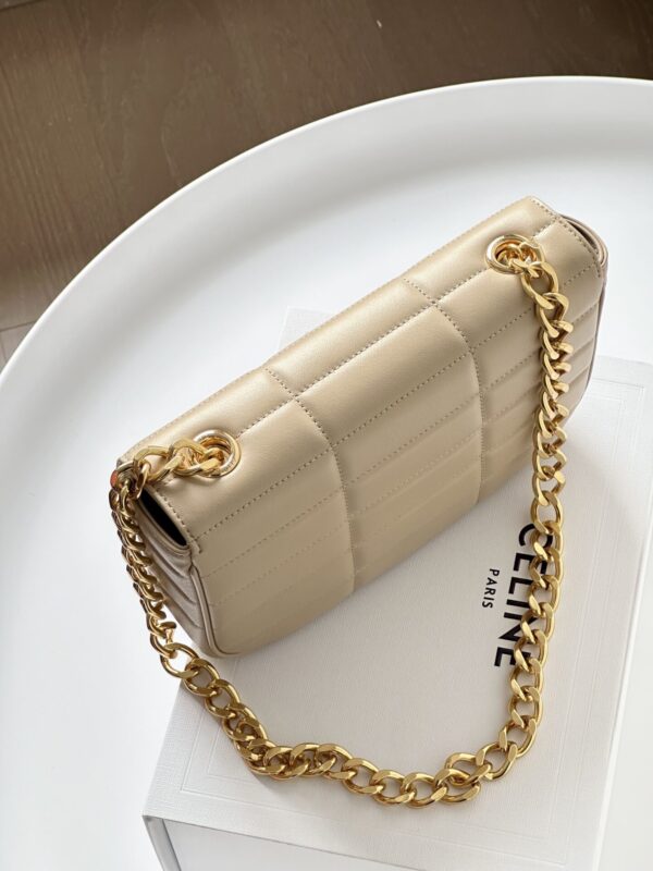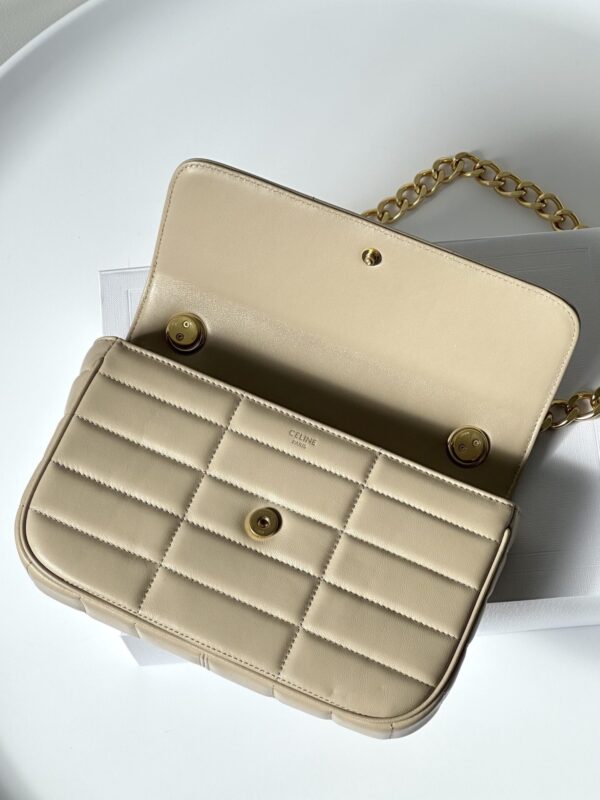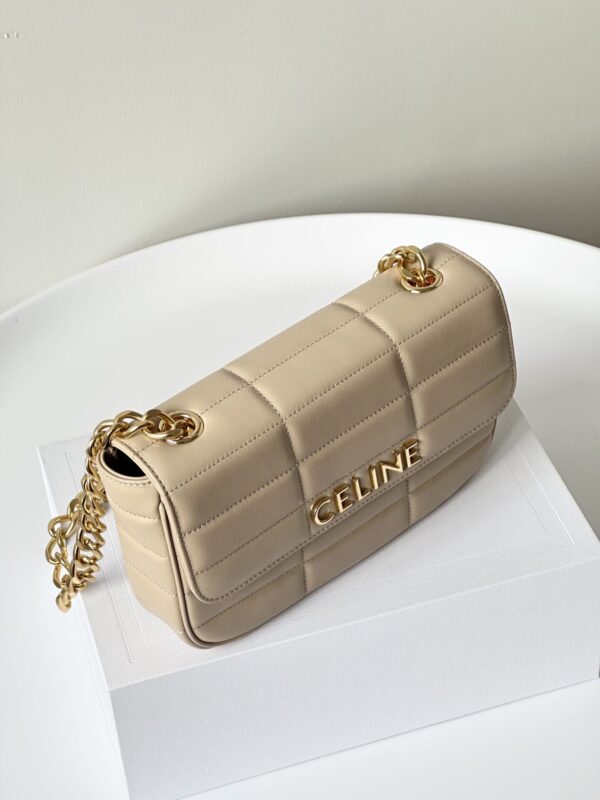 셀린느의 마텔라즈 모노크롬 퀼팅 양가죽 체인 숄더백입니다. 부드러운 양가죽 소재로 제작되어 고급스러운 질감을 자랑합니다.