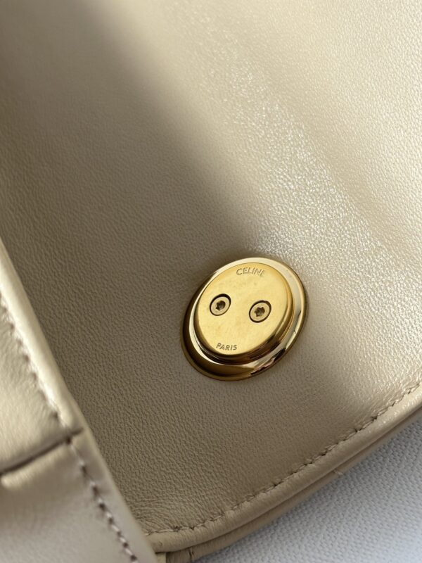 독특한 퀼팅 디자인이 모던한 실루엣을 강조하며, 풍성한 느낌을 더해줍니다. 금속 CELINE 로고가 포인트로 자리잡아 세련된 디테일을 완성합니다.