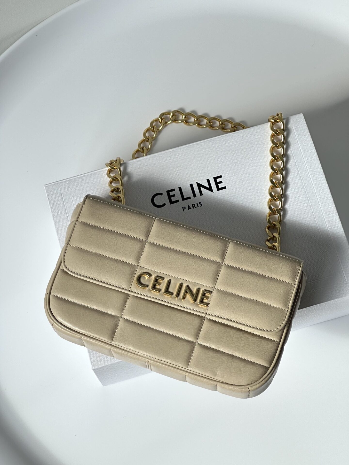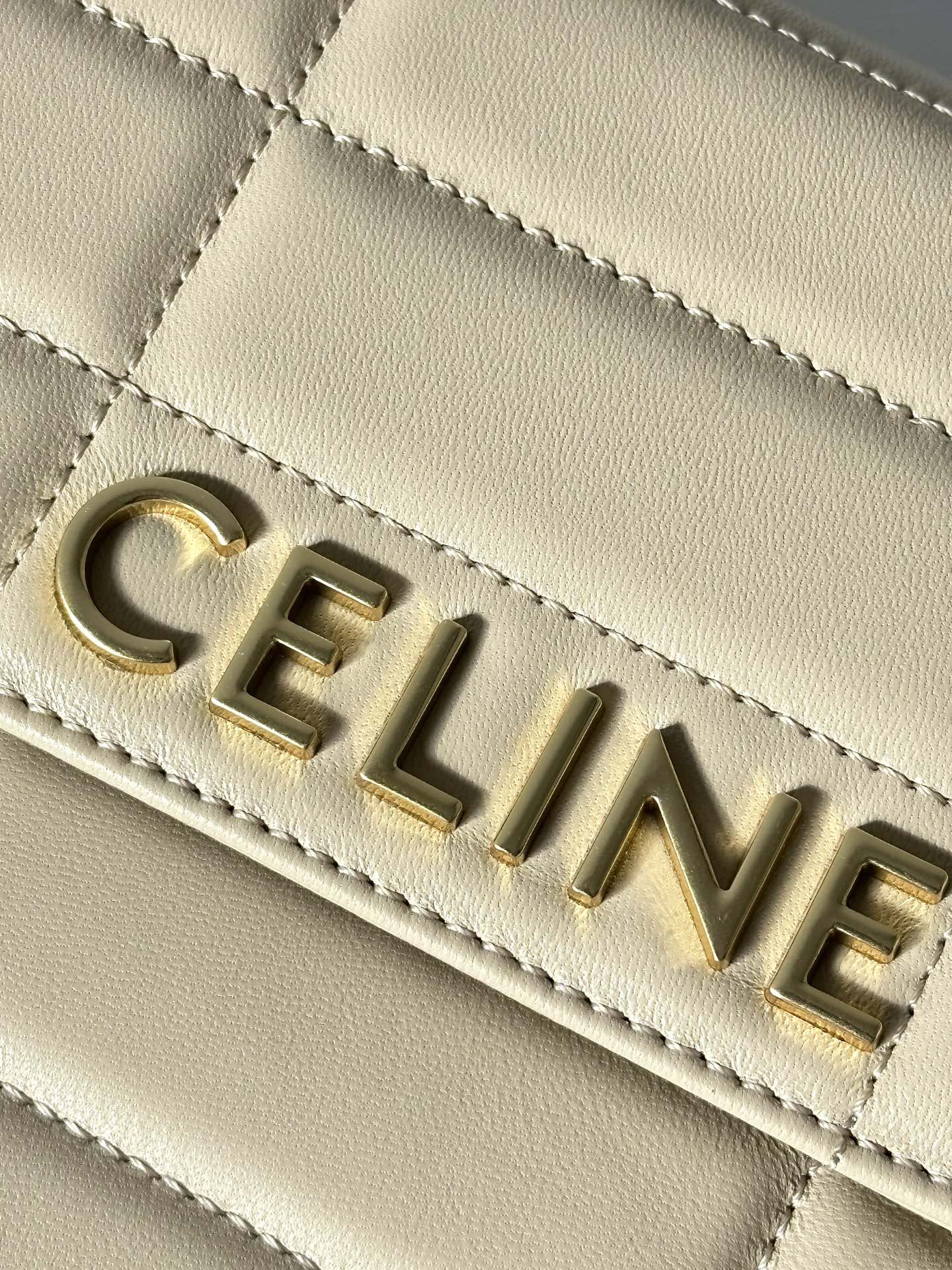 독특한 퀼팅 디자인이 모던한 실루엣을 강조하며, 풍성한 느낌을 더해줍니다. 금속 CELINE 로고가 포인트로 자리잡아 세련된 디테일을 완성합니다.