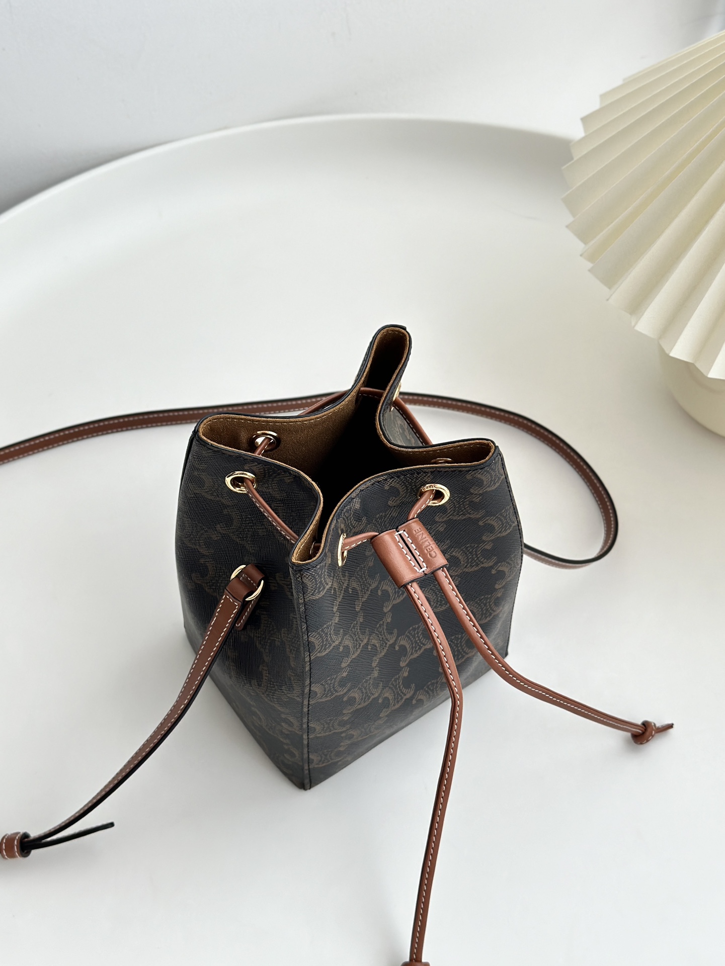 셀린느의 물결 미니백은 귀여운 디자인으로 여름 룩에 완벽하게 어울립니다.