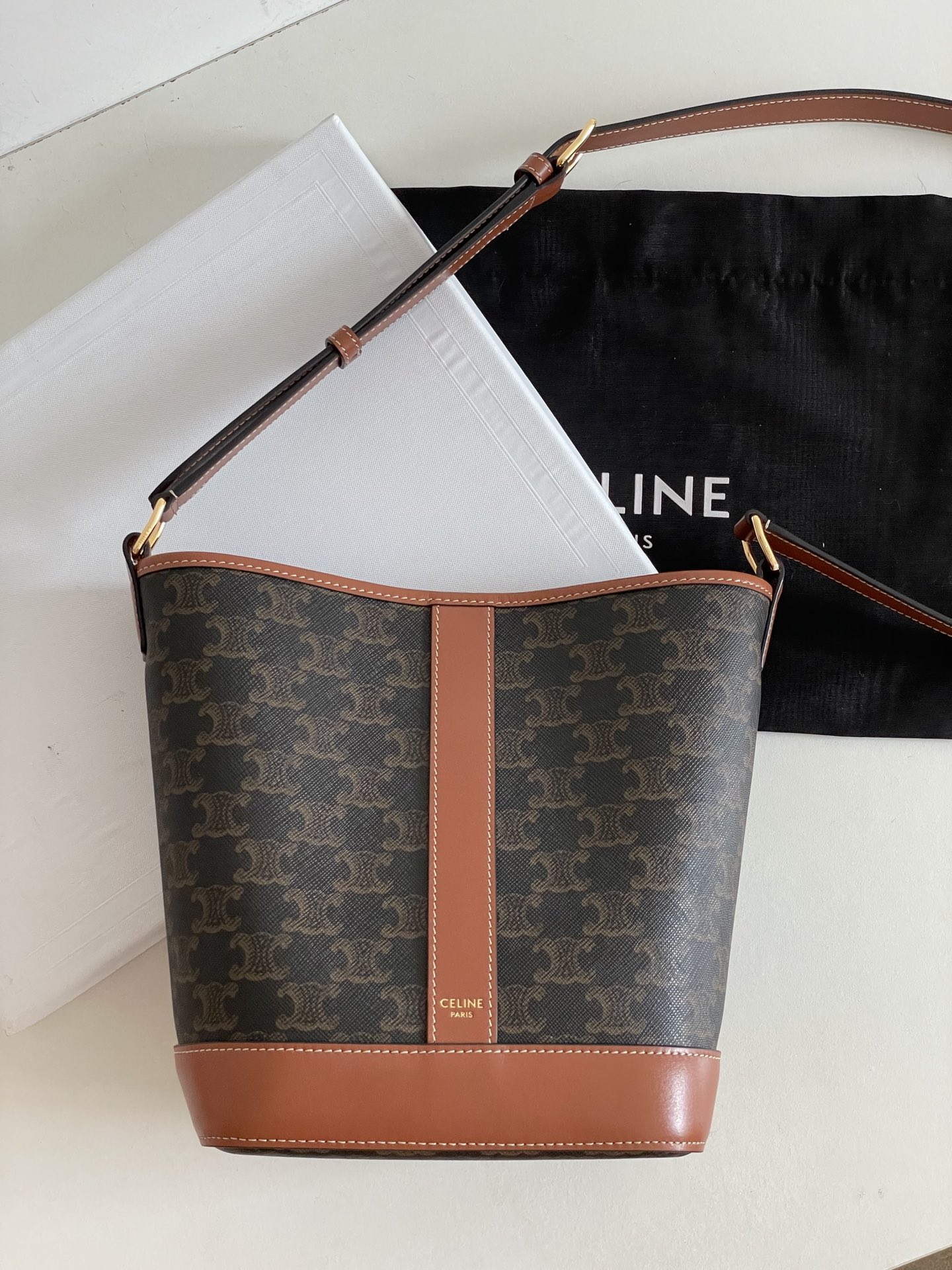 셀린느의 미니 물통백은 클래식한 디자인과 현대적인 감각이 완벽하게 조화를 이룹니다.