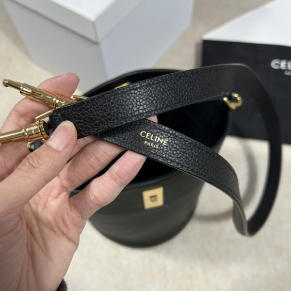 고급스러운 질감의 소가죽으로 제작된 셀린느 미니 물통백입니다.