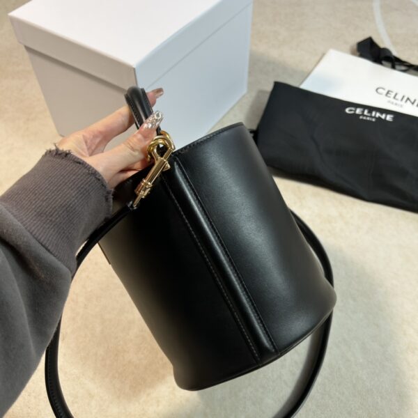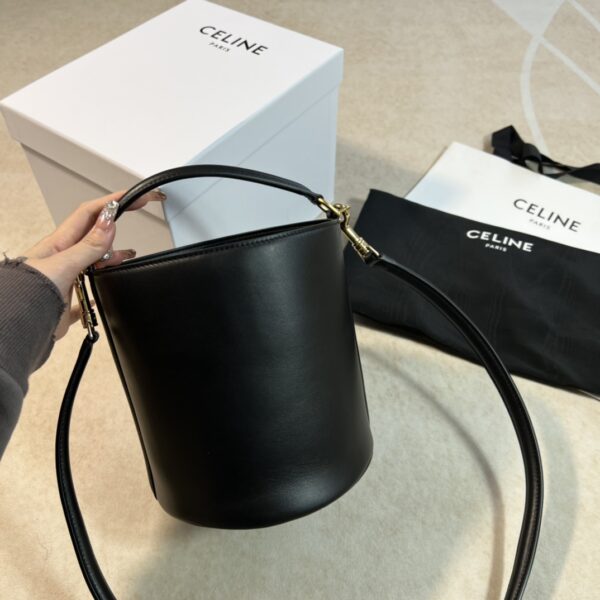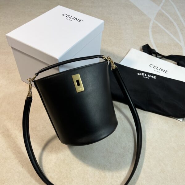셀린느의 미니 물통백은 고급스러운 평纹 소가죽으로 제작되어 내구성이 뛰어납니다.
