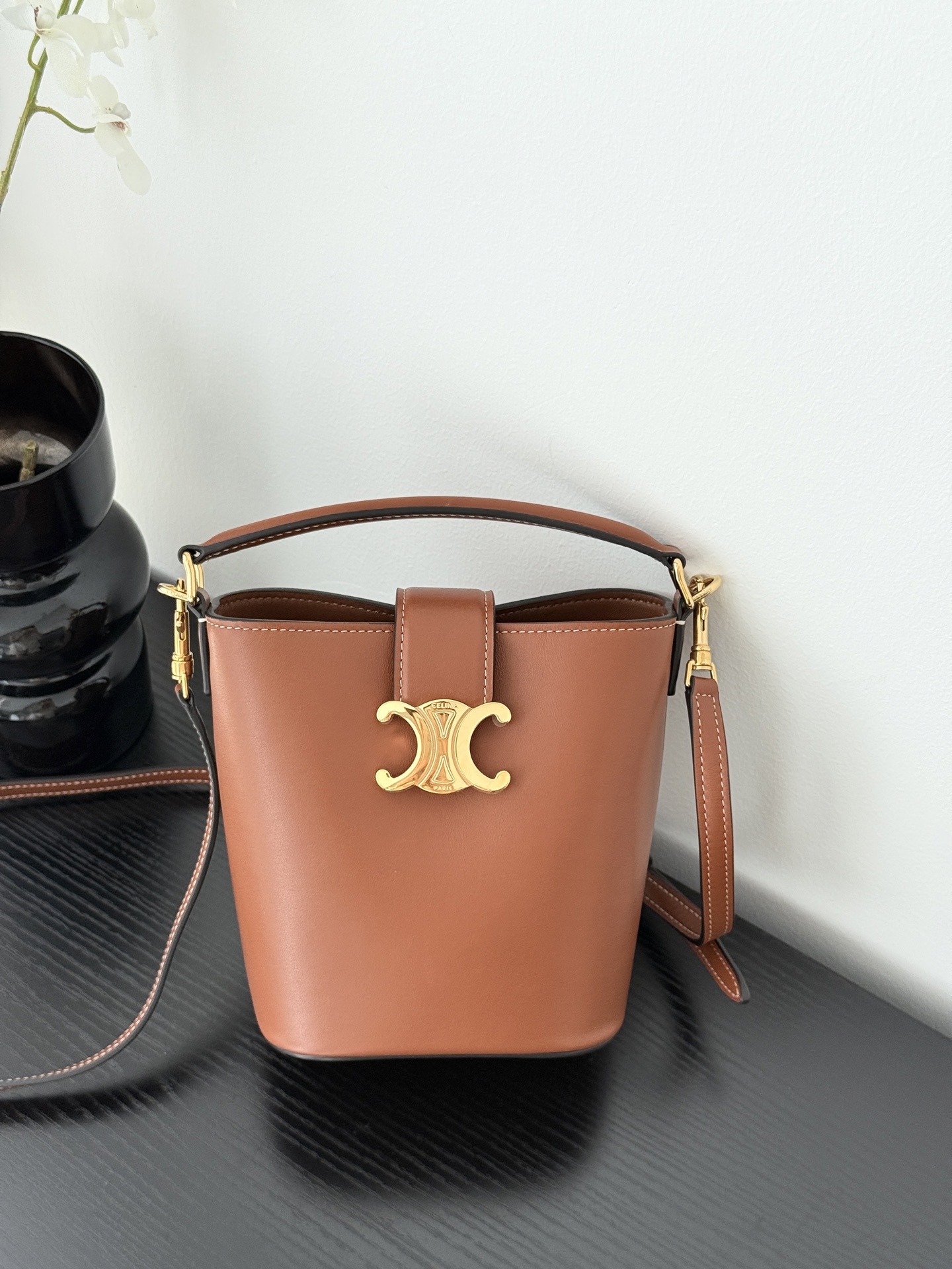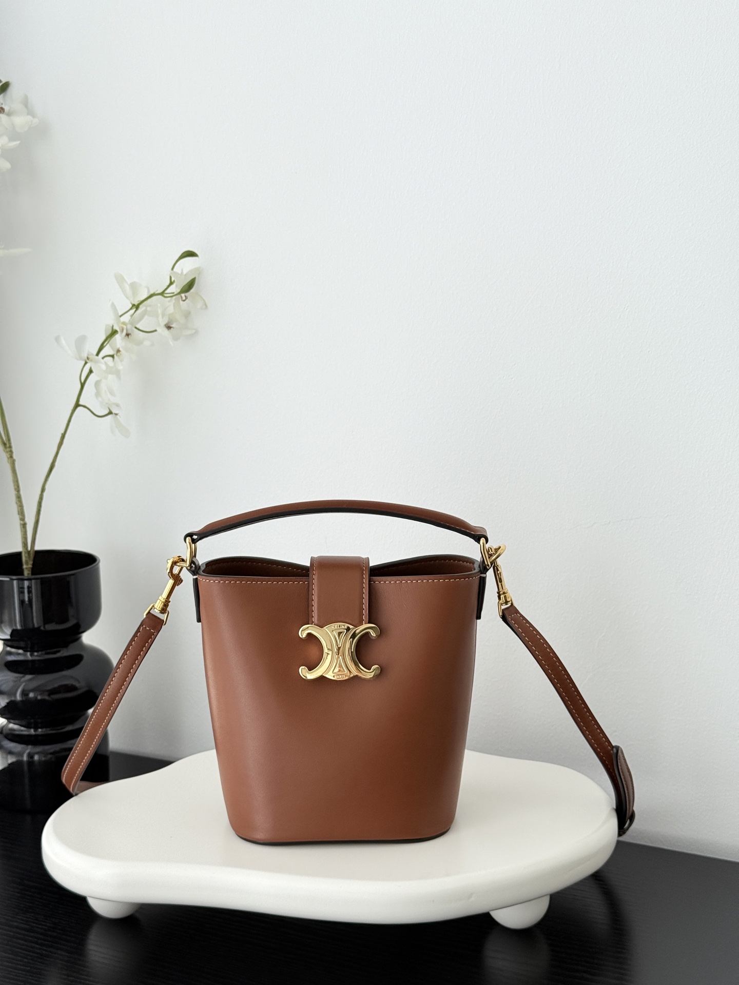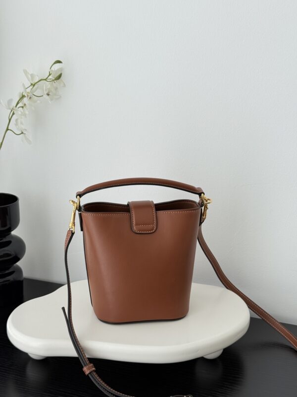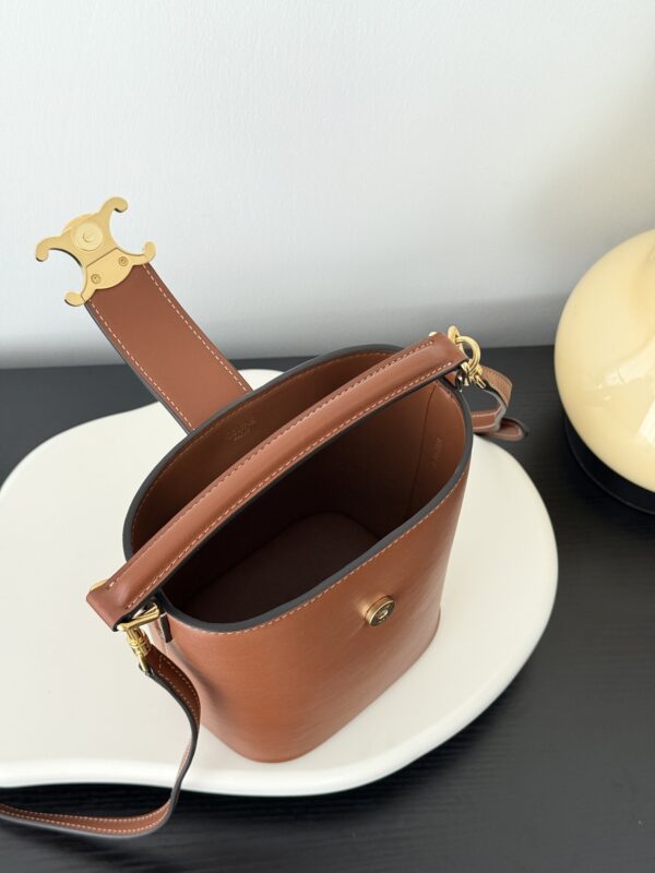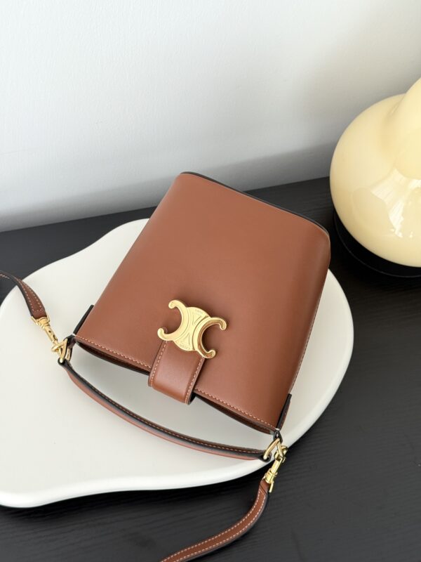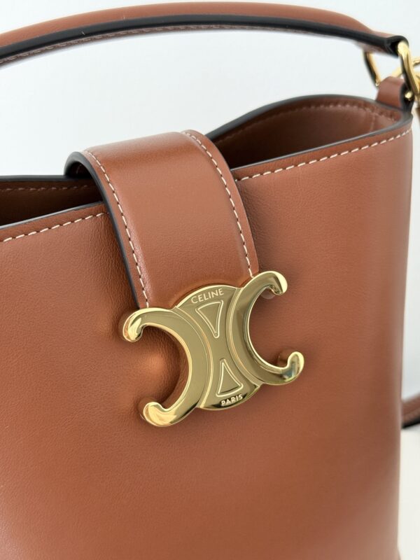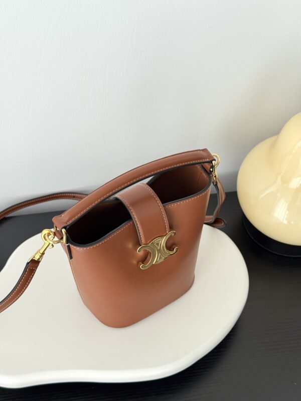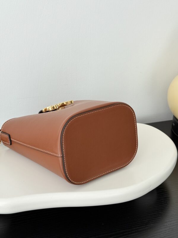 셀린느의 미니 물통 가방은 여성의 마음을 사로잡는 매력적인 디자인입니다. 고급스러운 브라운 컬러와 함께 클래식한 케이트리온 요소가 더해져 세련된 느낌을 줍니다.