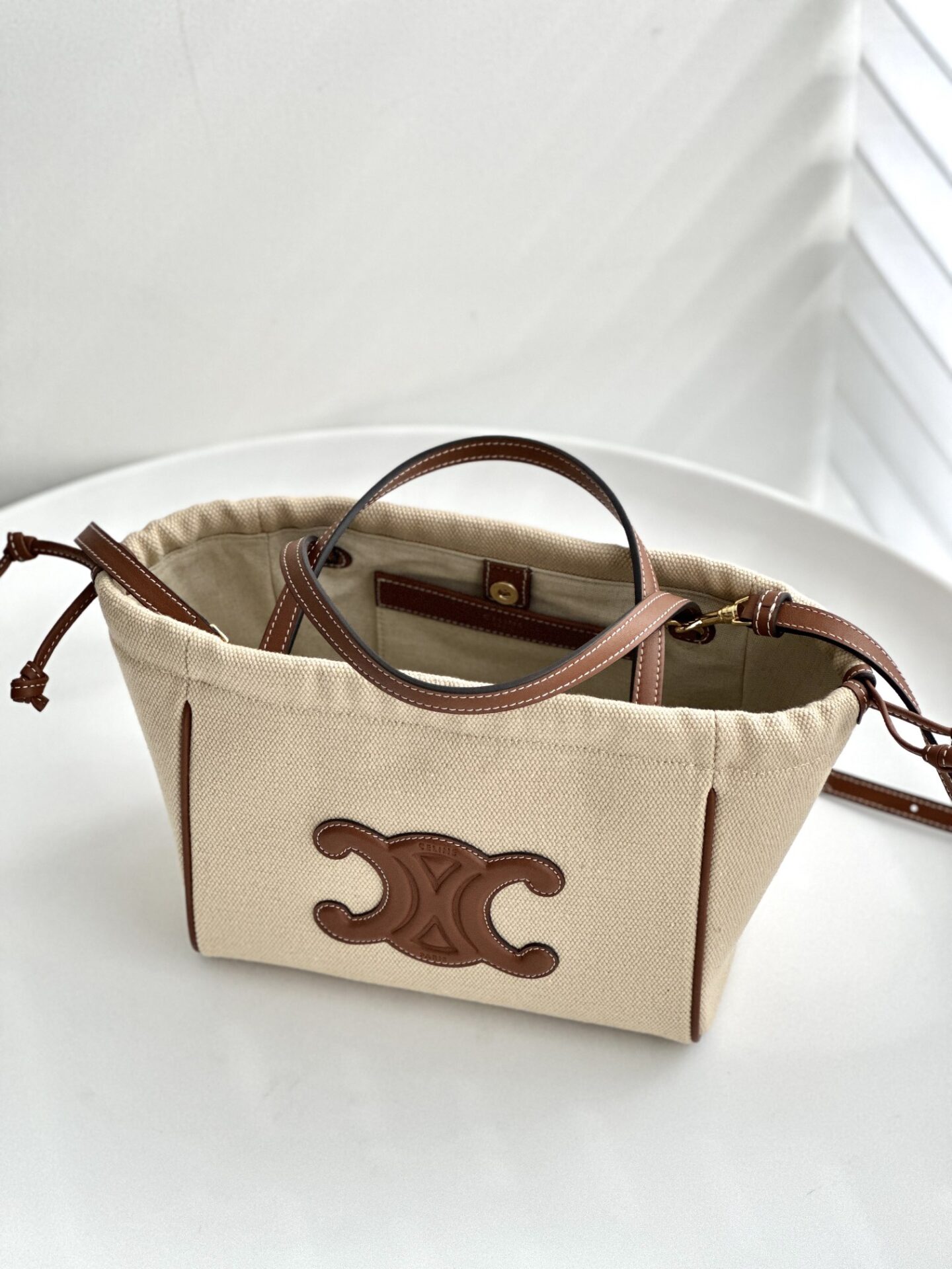 고급 캔버스 소재로 제작되어 가벼우면서도 내구성이 뛰어나며, 아이보리 색상이 어떤 스타일에도 잘 어울립니다.