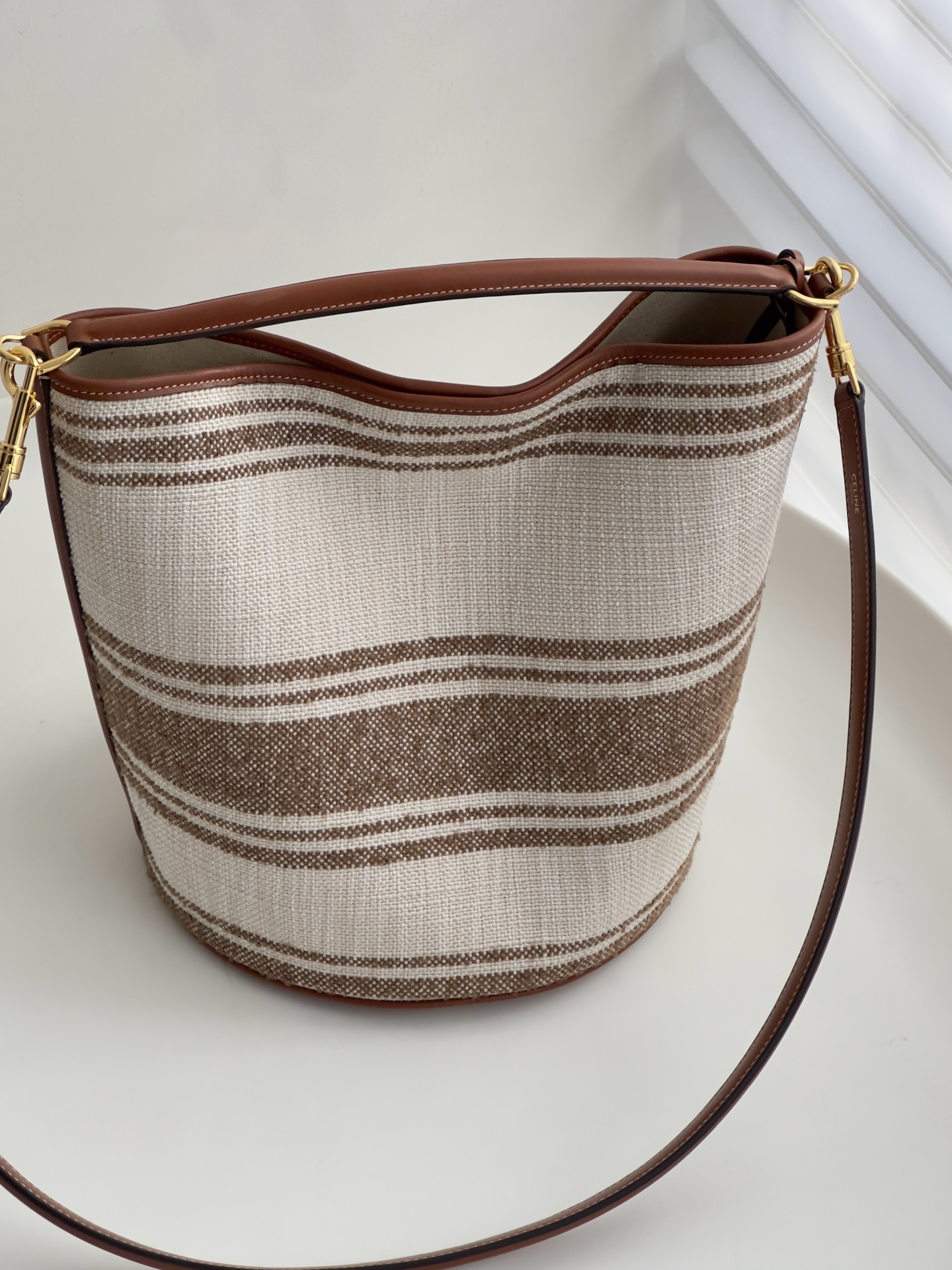 셀린느의 여름 핫 아이템, 버킷백을 소개합니다. 이 가방은 프랑스 감성을 담아내며, 자연스럽고 여유로운 실루엣이 특징입니다.