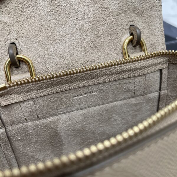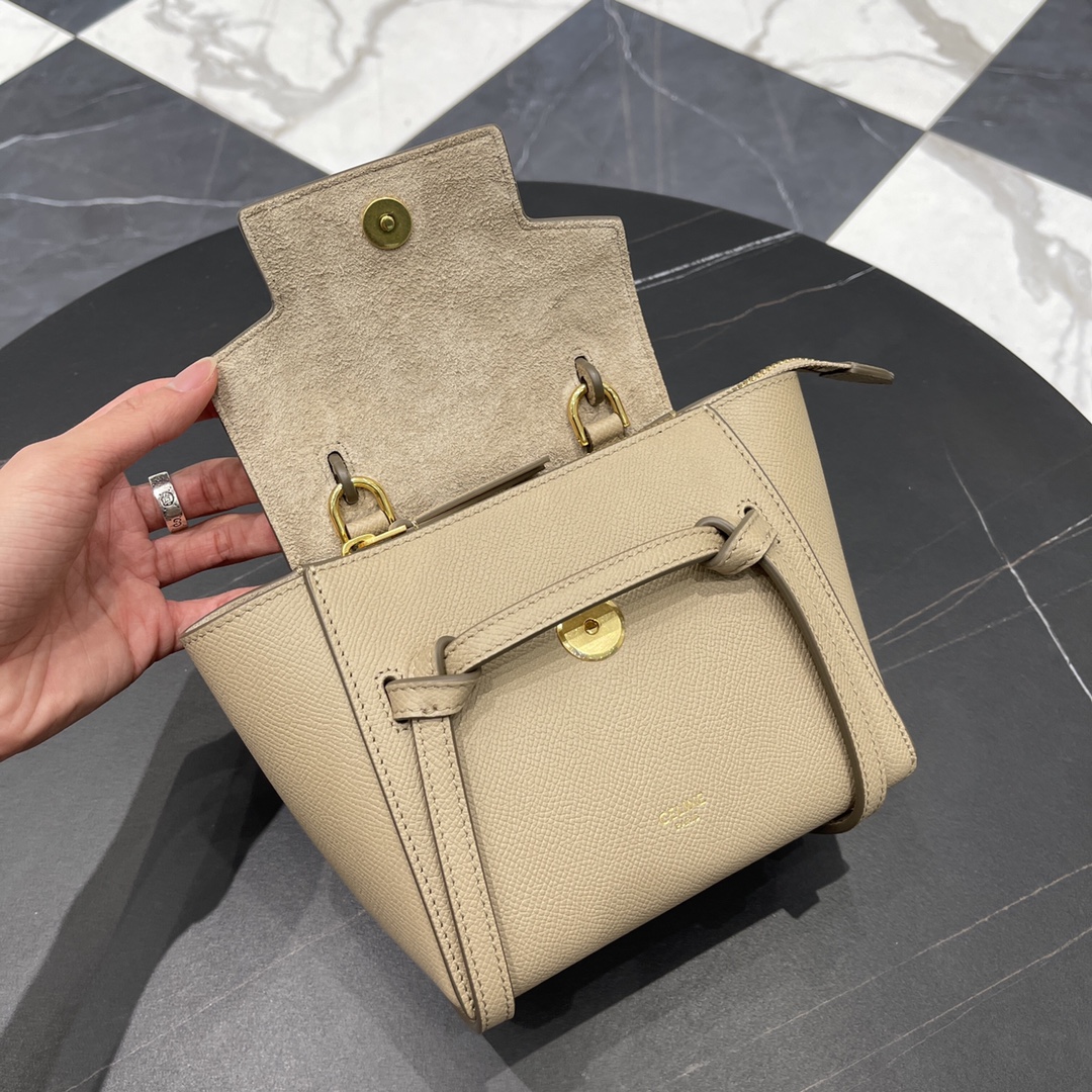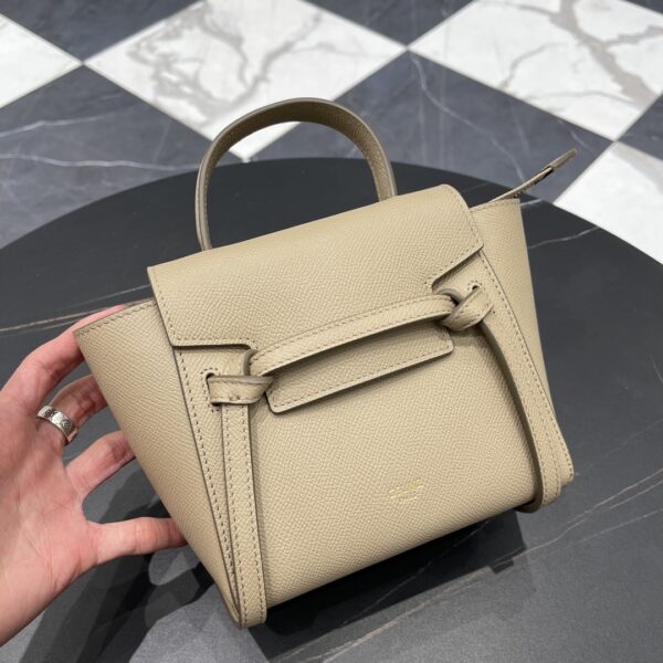 셀린느 벨트 피코 미니백은 작지만 강력한 존재감을 자랑합니다. 이탈리아에서 수입된 손바닥 질감의 가죽과 순수 스틸 하드웨어로 제작되어 고급스러움을 더했습니다.