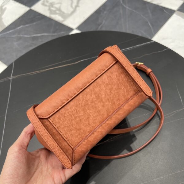 셀린느의 벨트 피코 미니백은 작지만 강력한 존재감을 자랑합니다. 이 가방은 두 개의 스마트폰, 화장품, 열쇠 등 일상 필수품을 손쉽게 수납할 수 있는 넉넉한 공간을 제공합니다.