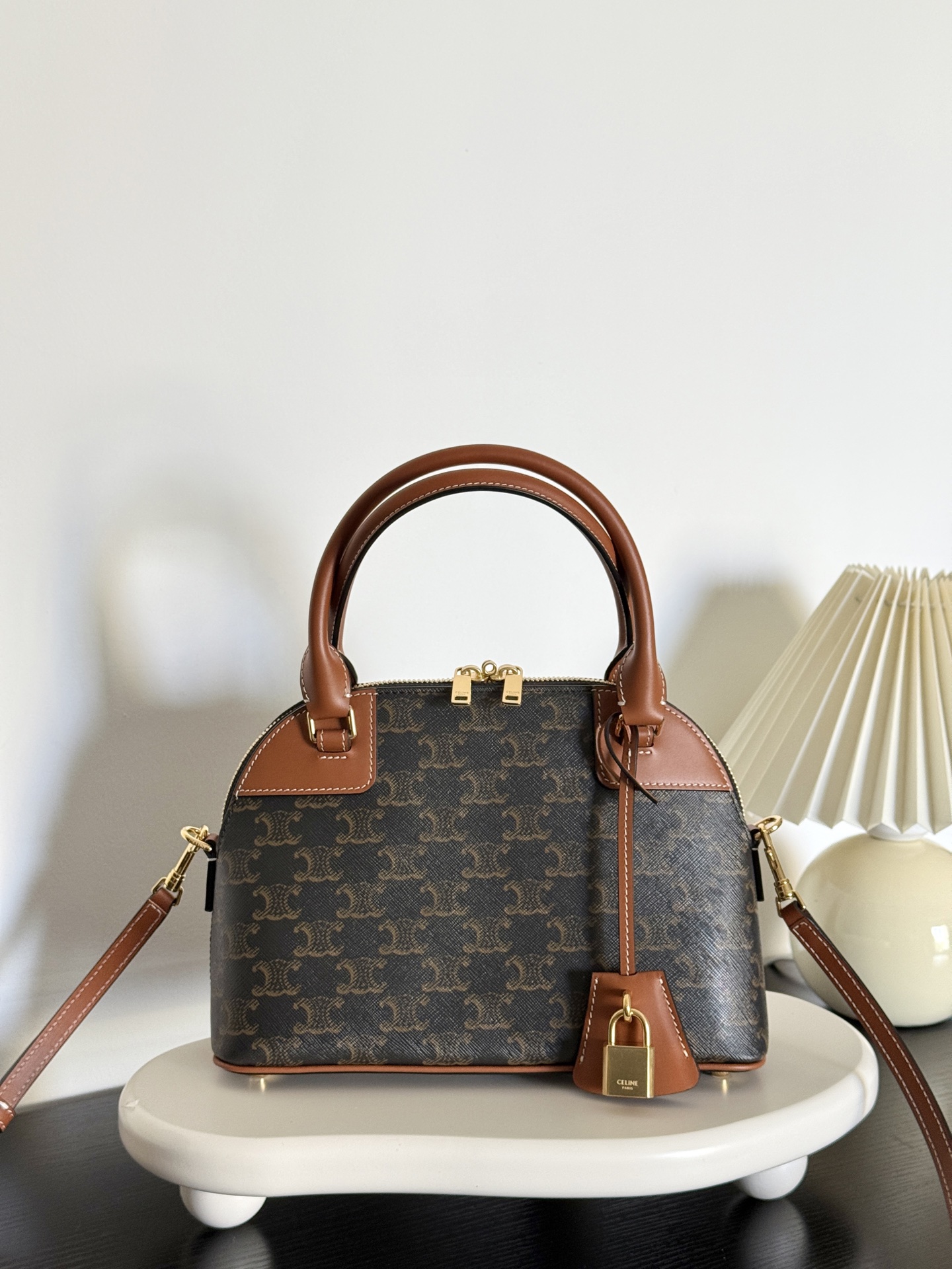 셀린느의 보울링 백은 클래식한 트리옴프 프린트가 돋보이는 디자인으로, 우아하고 견고한 쉐입을 자랑합니다.