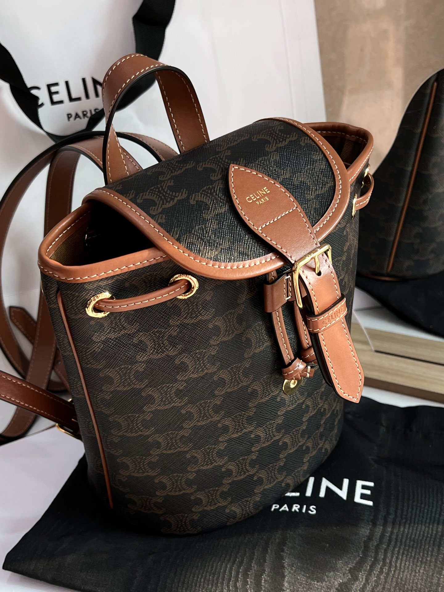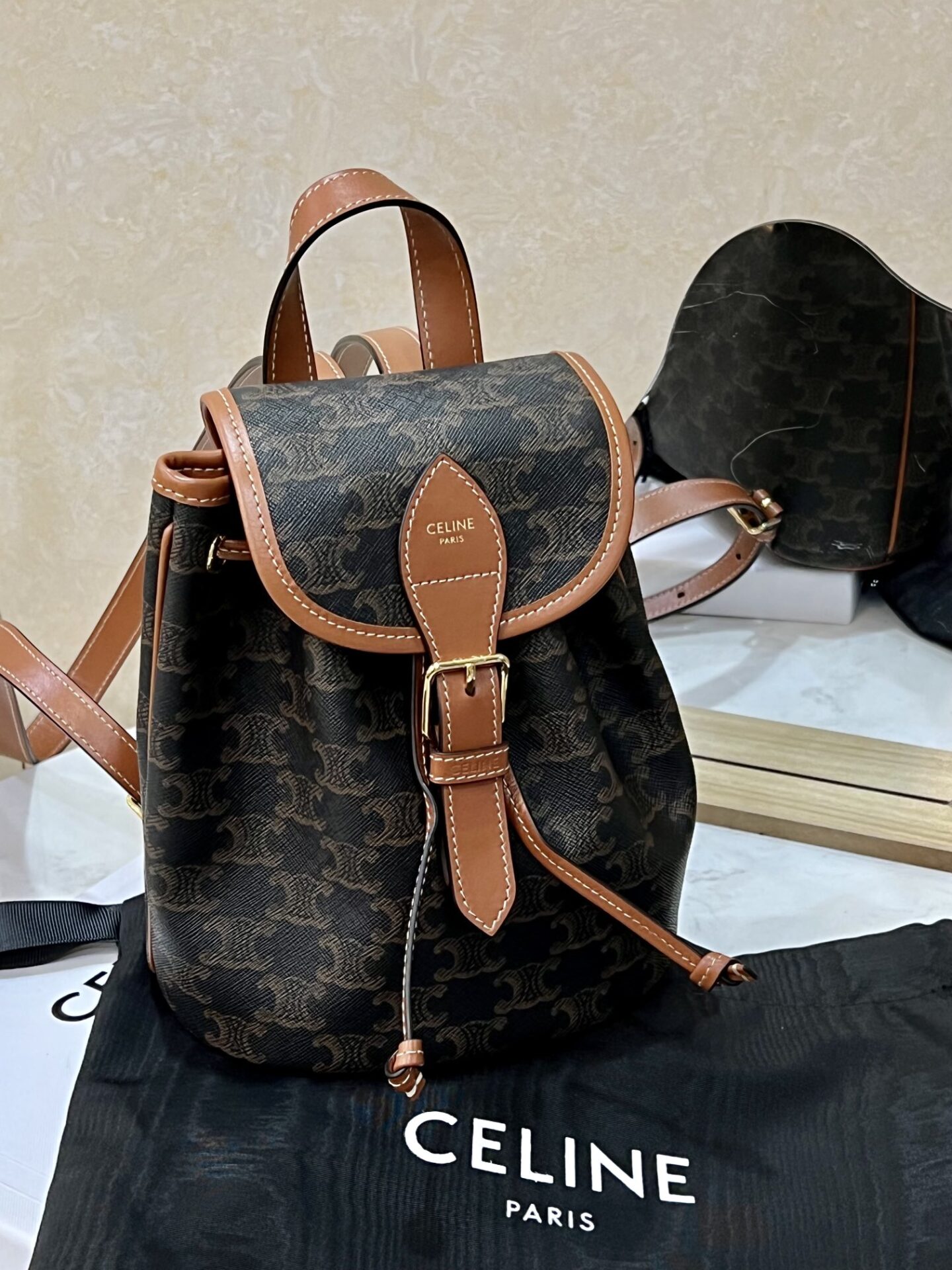 셀린느의 본명 로고 더블 백팩은 귀여운 디자인으로 눈길을 사로잡습니다. 내구성이 뛰어난 PVC 소재로 제작되어 스크래치에 강하며, 오랜 사용에도 변형이 적습니다.