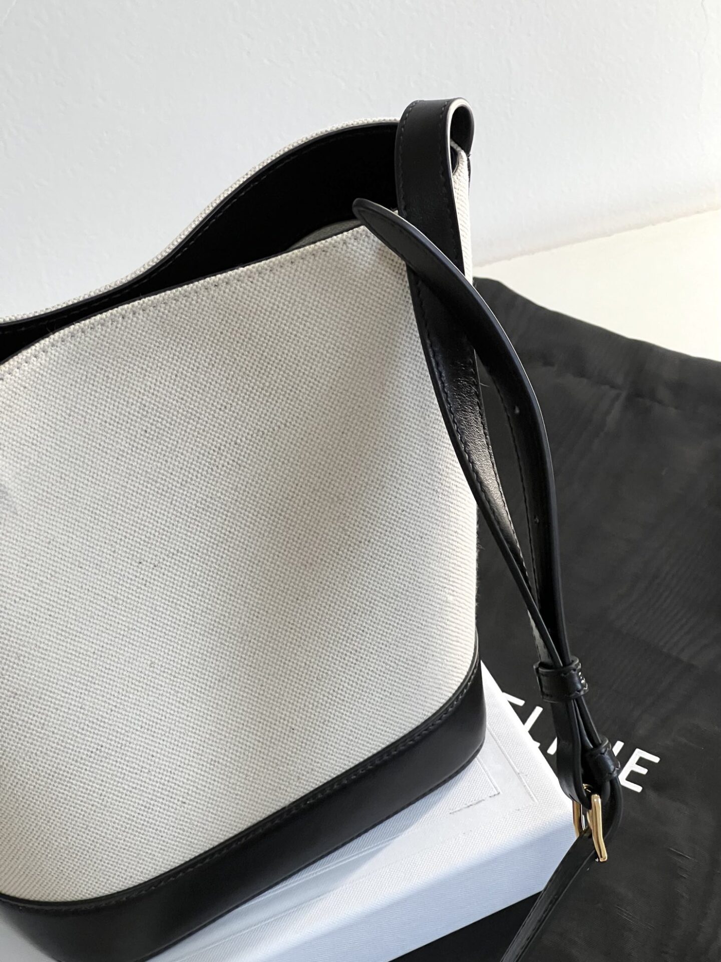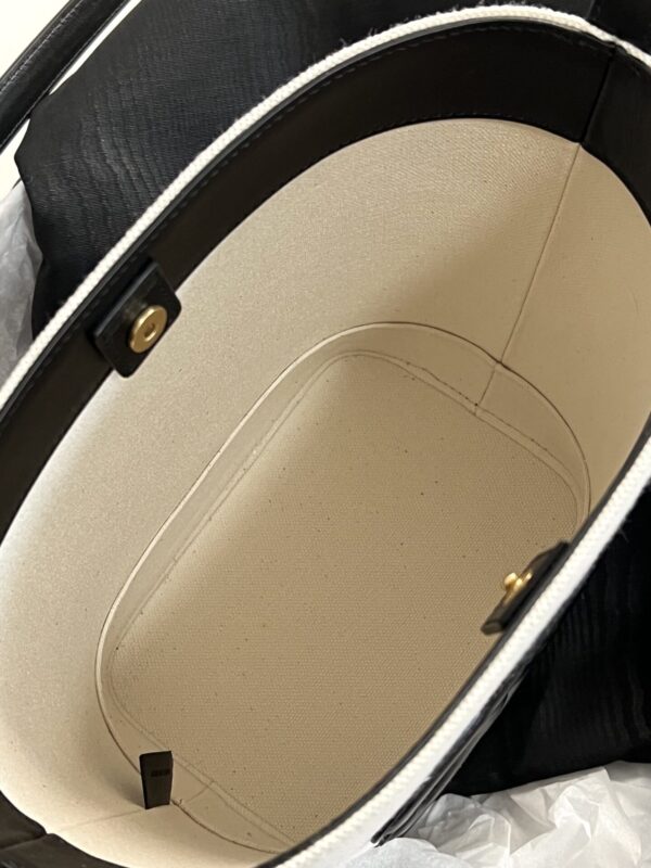 온화한 크림 색상이 돋보이며, 블랙 가죽 디테일이 세련된 느낌을 더합니다.