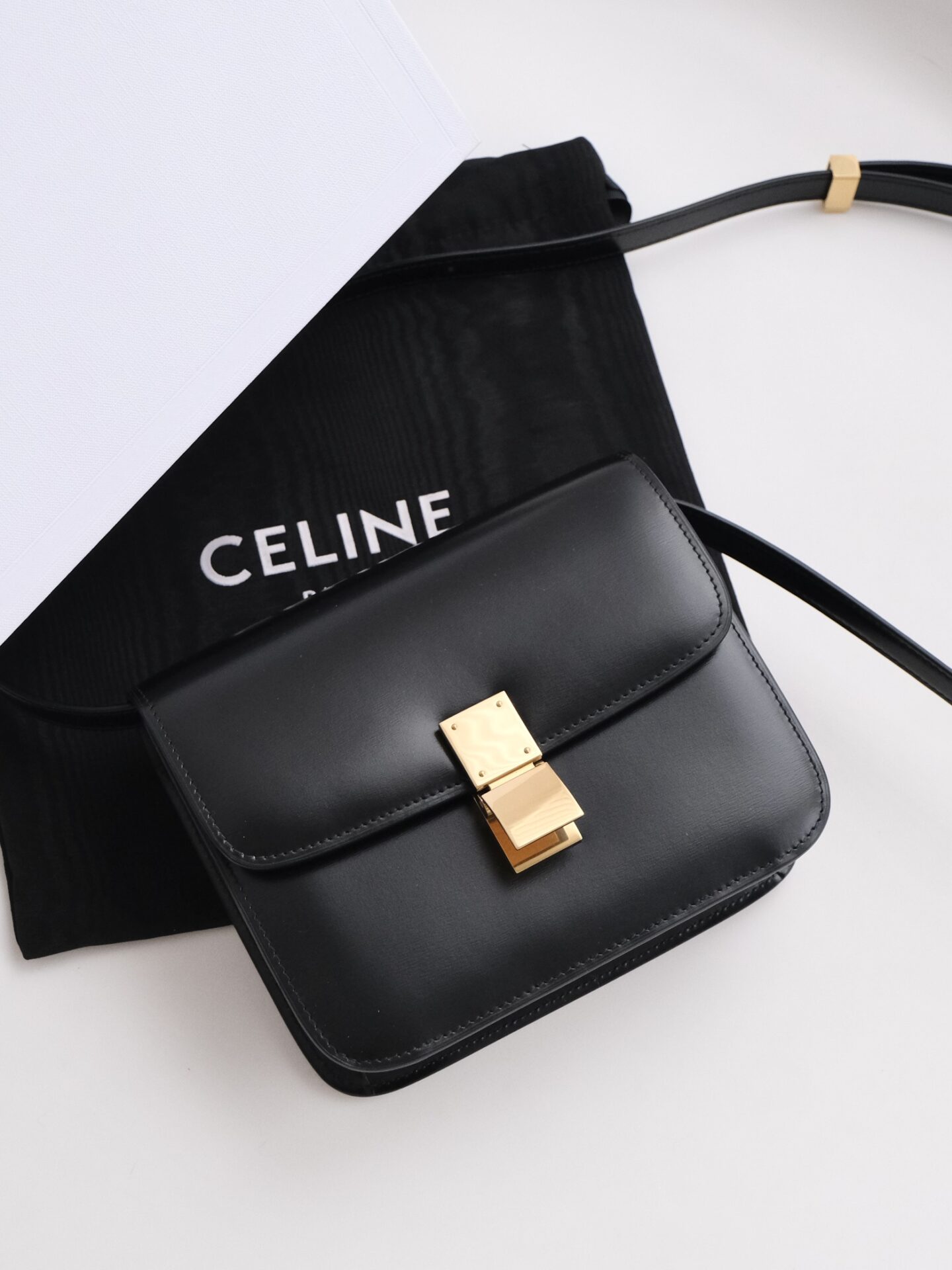셀린느의 클래식 블랙 박스 미니백은 세련된 디자인과 실용성을 겸비한 아이템입니다.