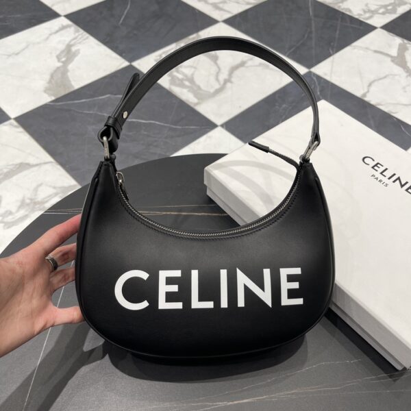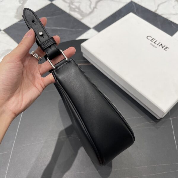 반달형의 우아한 실루엣이 작고 경쾌한 느낌을 주며, 조절 가능한 가죽 스트랩으로 어깨에 걸치거나 손에 들고 다닐 수 있어 일상적인 외출에 적합합니다.
