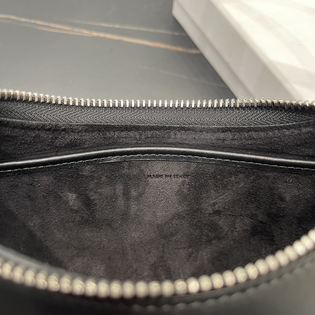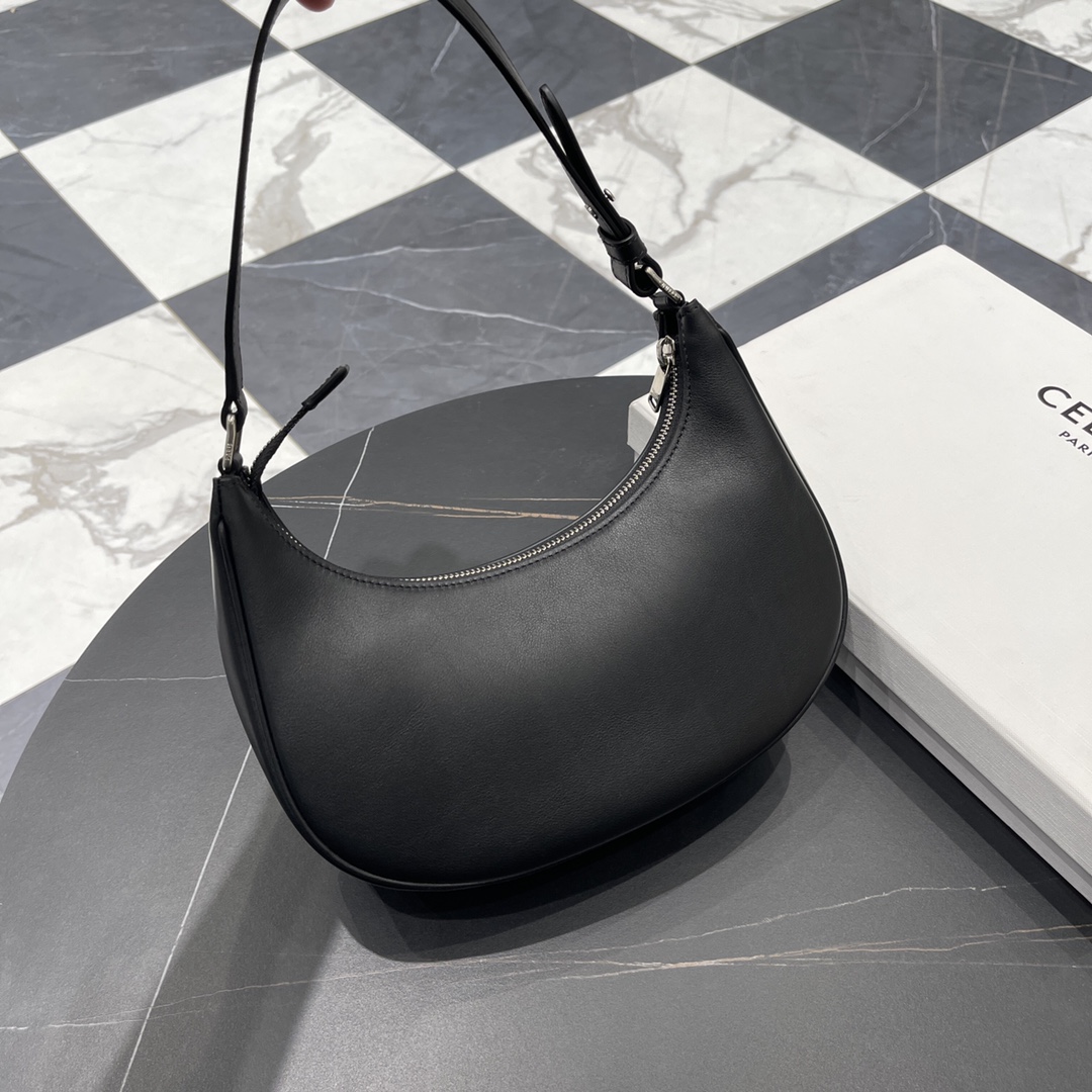반달형의 우아한 실루엣이 작고 경쾌한 느낌을 주며, 조절 가능한 가죽 스트랩으로 어깨에 걸치거나 손에 들고 다닐 수 있어 일상적인 외출에 적합합니다.