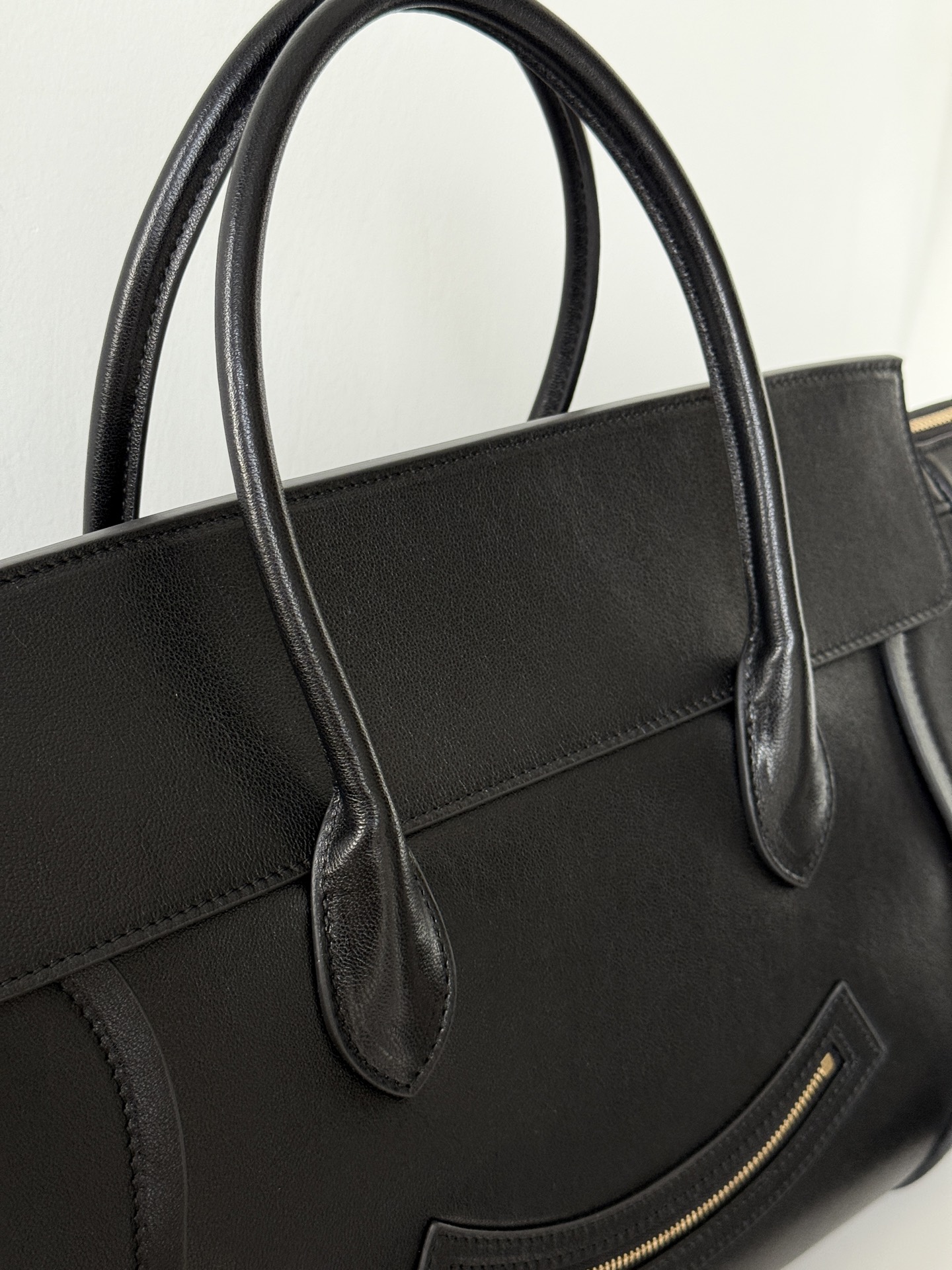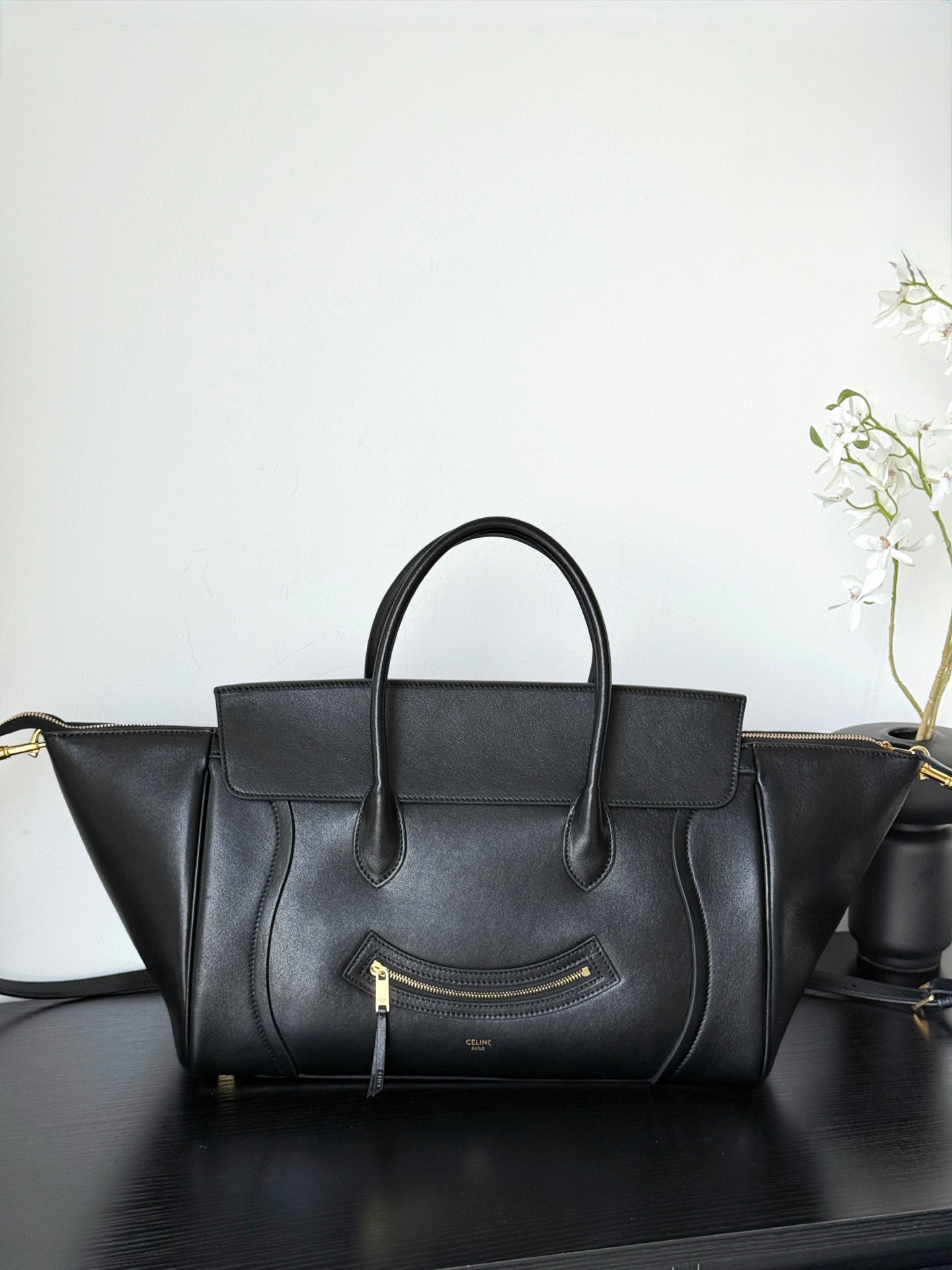 셀린느의 2026 봄 시즌 웃는 얼굴 백은 부드러운 소가죽 소재로 제작되어 가벼운 착용감을 제공합니다.