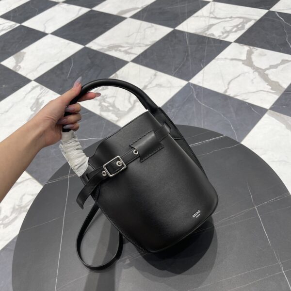 부드러운 소가죽으로 제작된 셀린느의 빅 백 버킷 나노입니다.