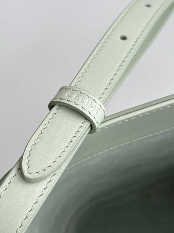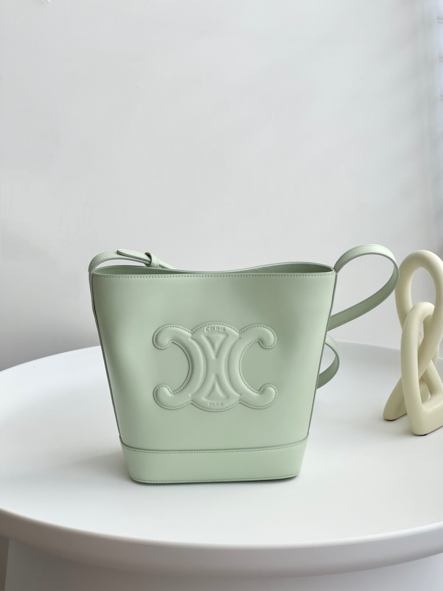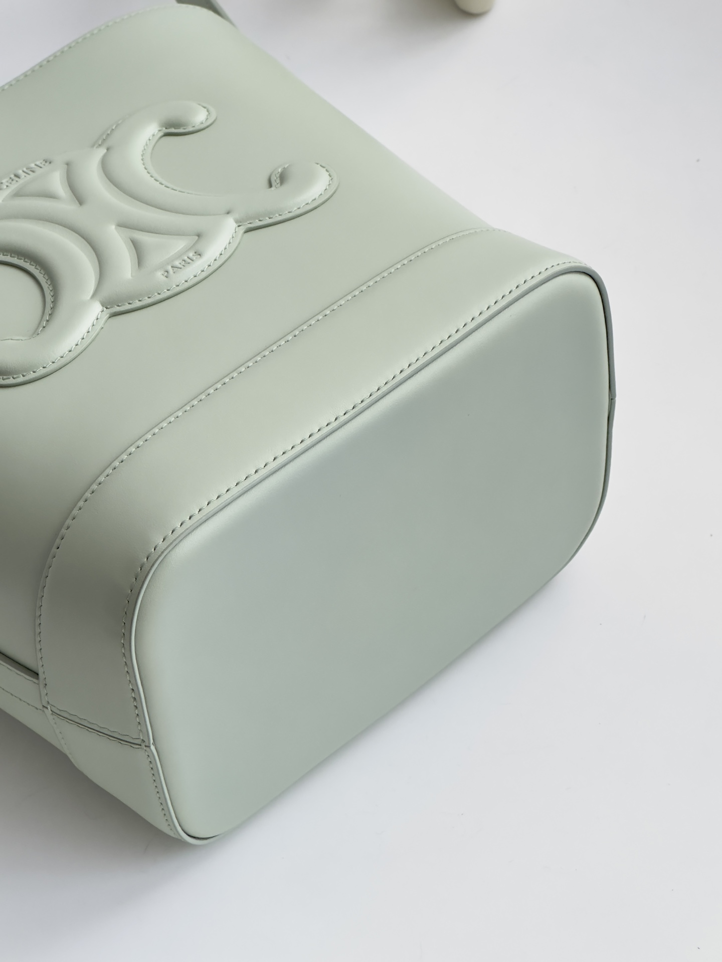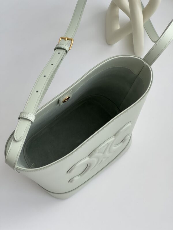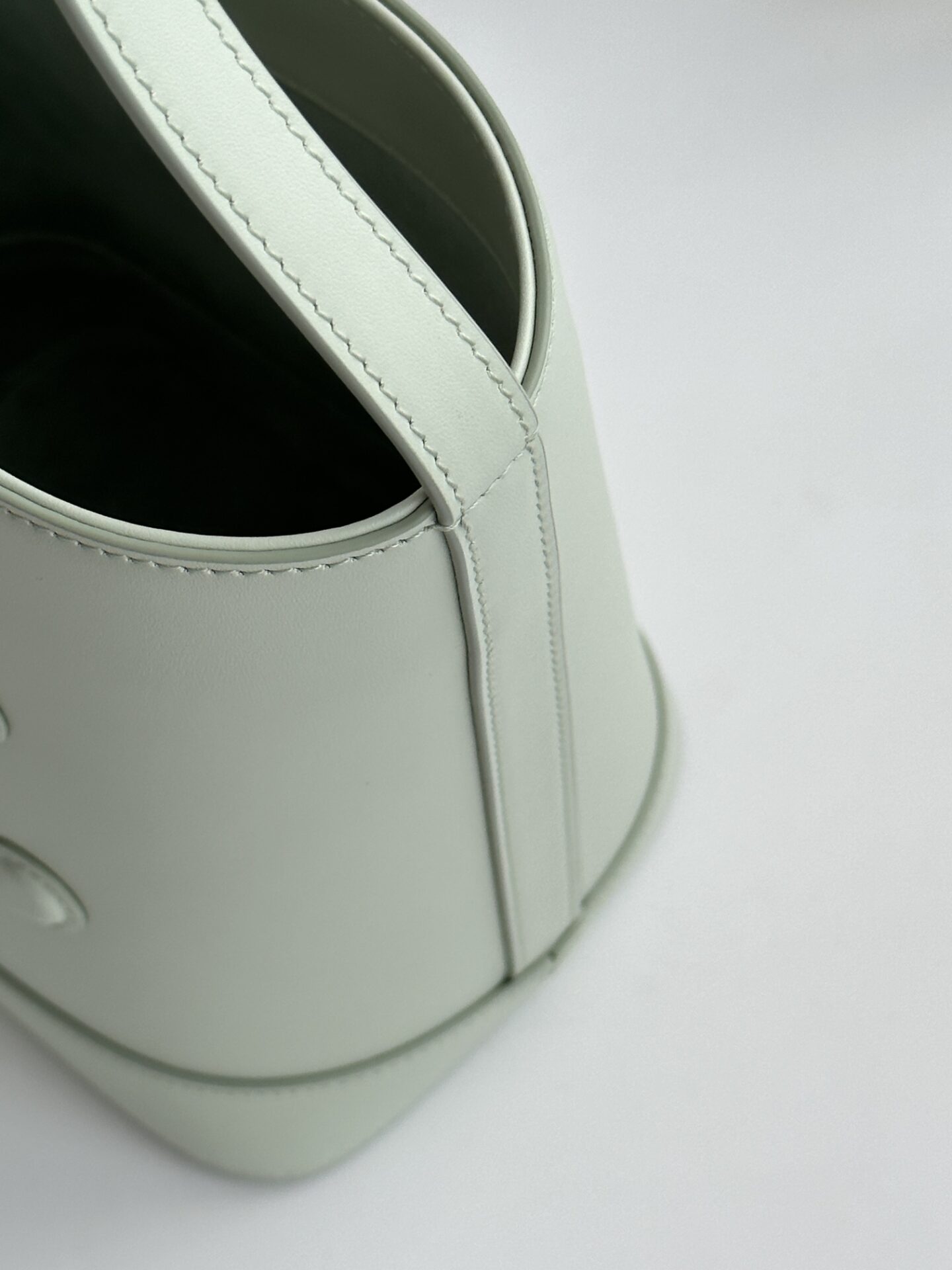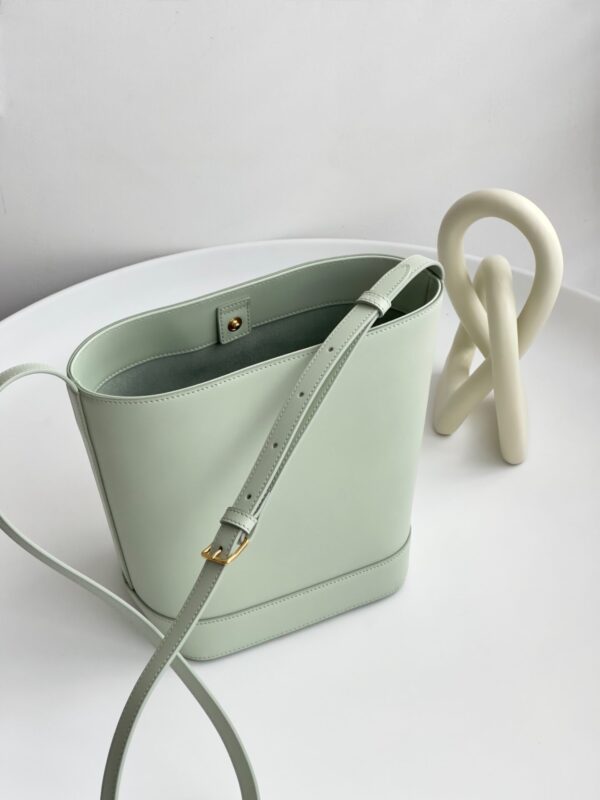 소가죽으로 제작된 물통백으로, 세련된 디자인이 돋보입니다.