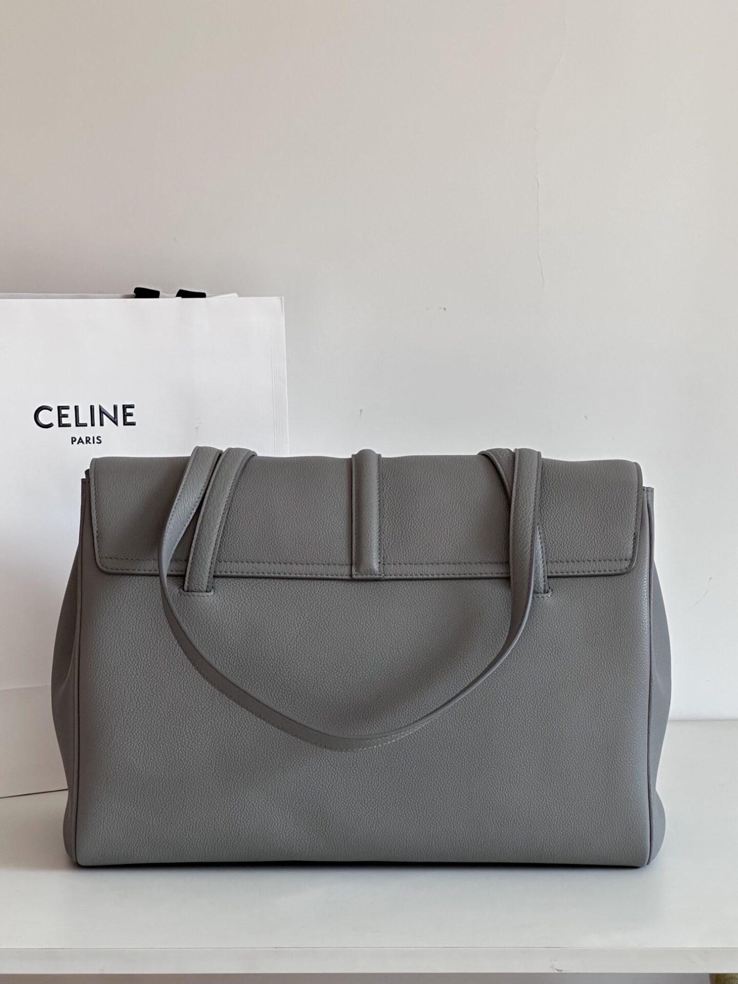 셀린느 (블랙프라임) 소프트 16 토트백 대형 레더 그레이 194043