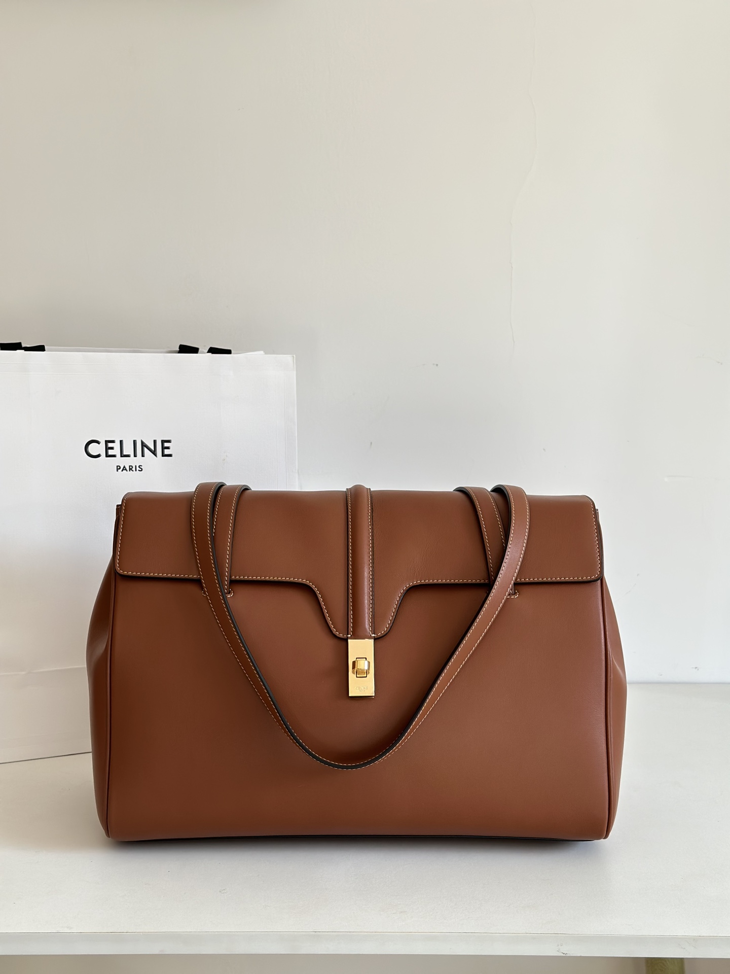셀린느의 소프트 16은 외형 디자인과 내부 구조가 완벽하게 조화를 이루는 대형 토트백입니다.