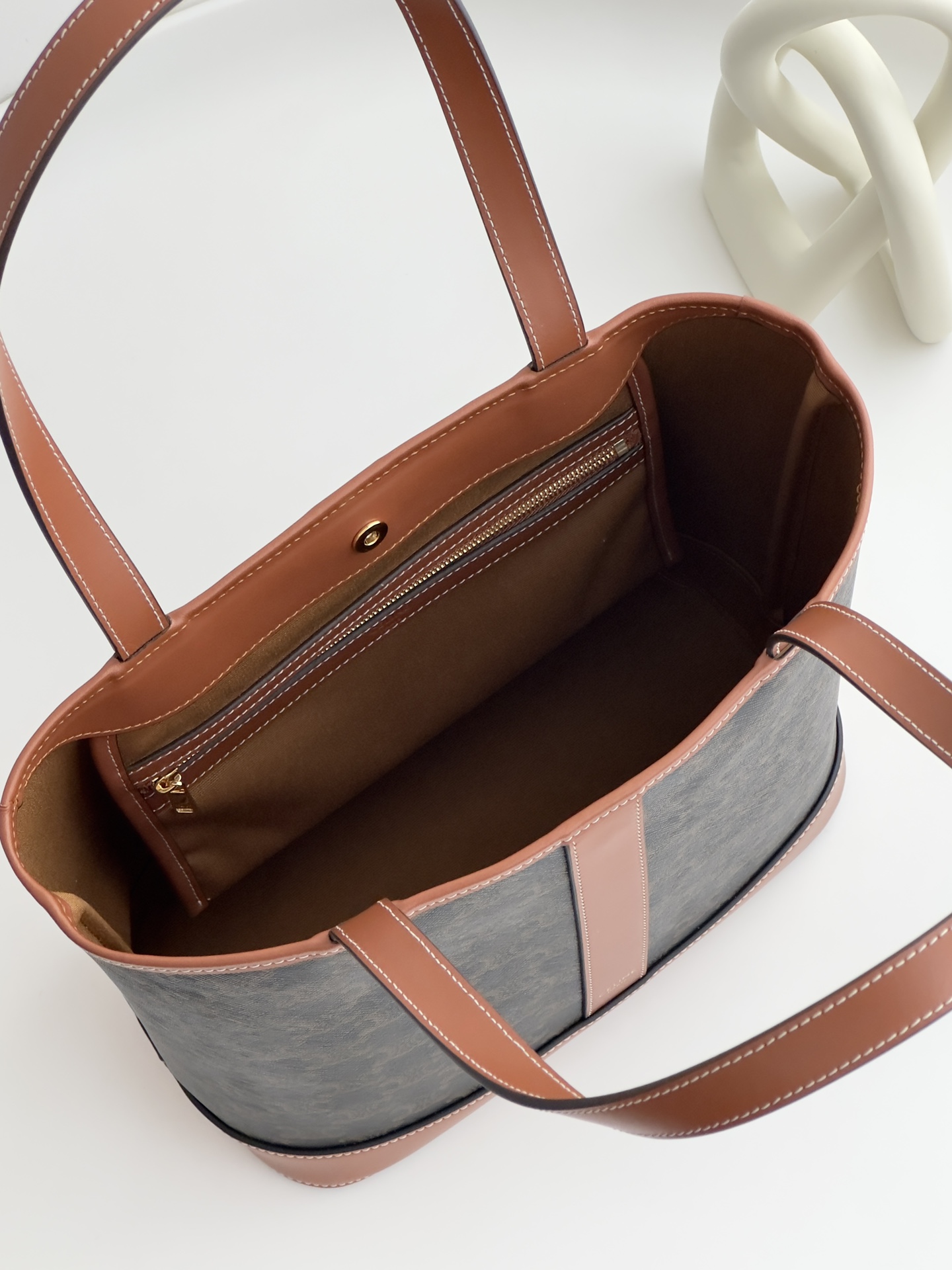 내부는 넉넉한 공간과 함께 지퍼 포켓이 있어 소지품을 안전하게 보관할 수 있습니다. 통근이나 일상적인 외출에 적합한 활용도가 높은 가방입니다.