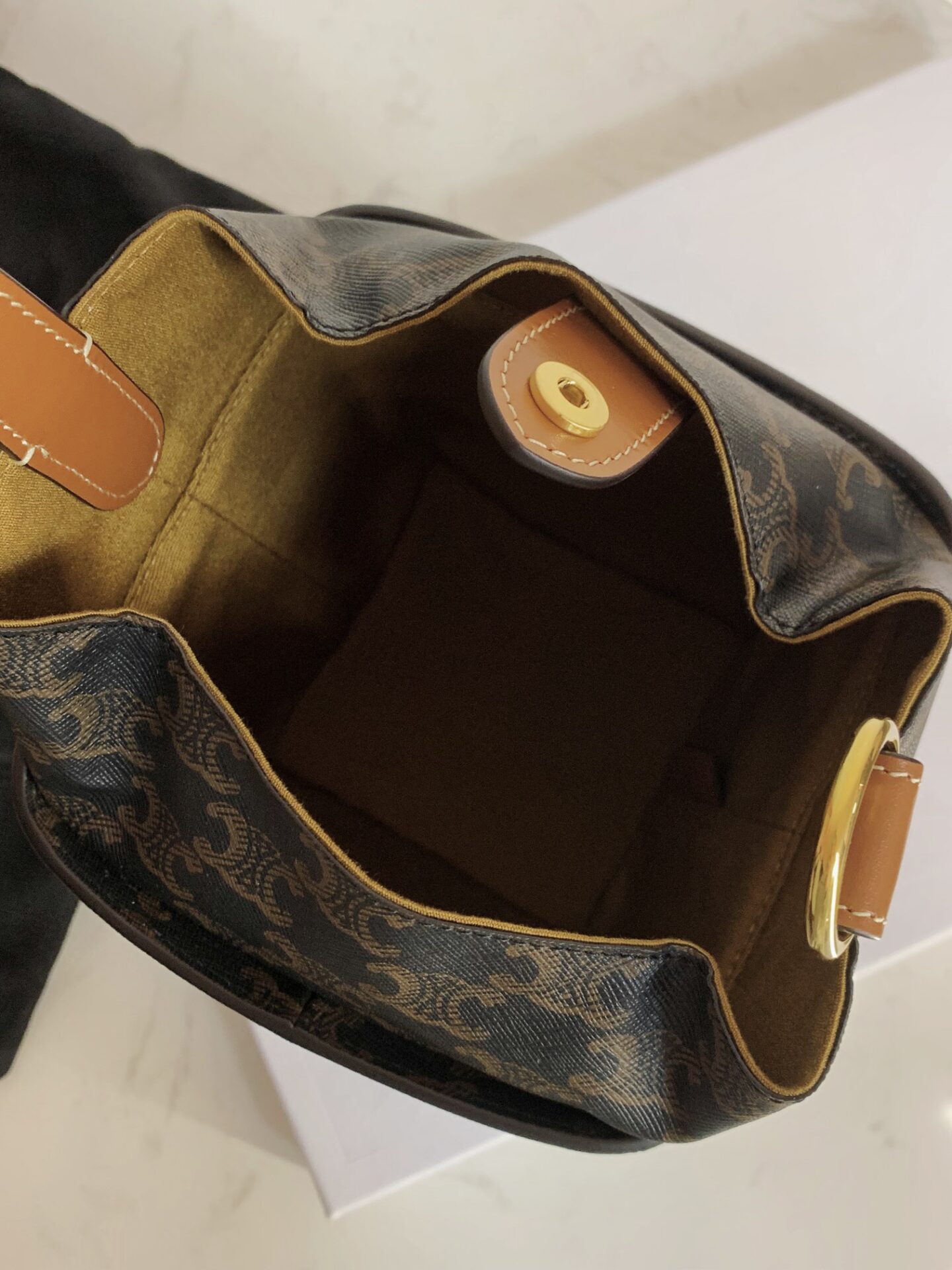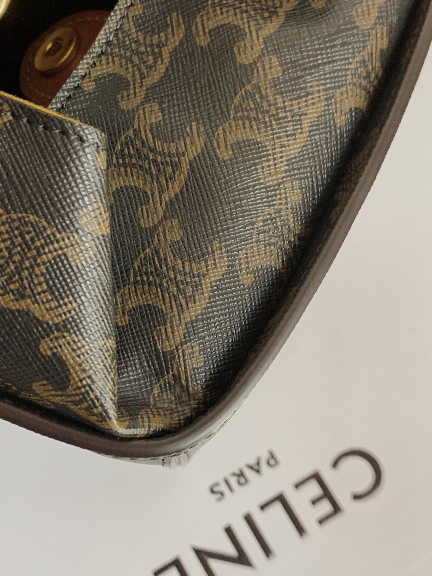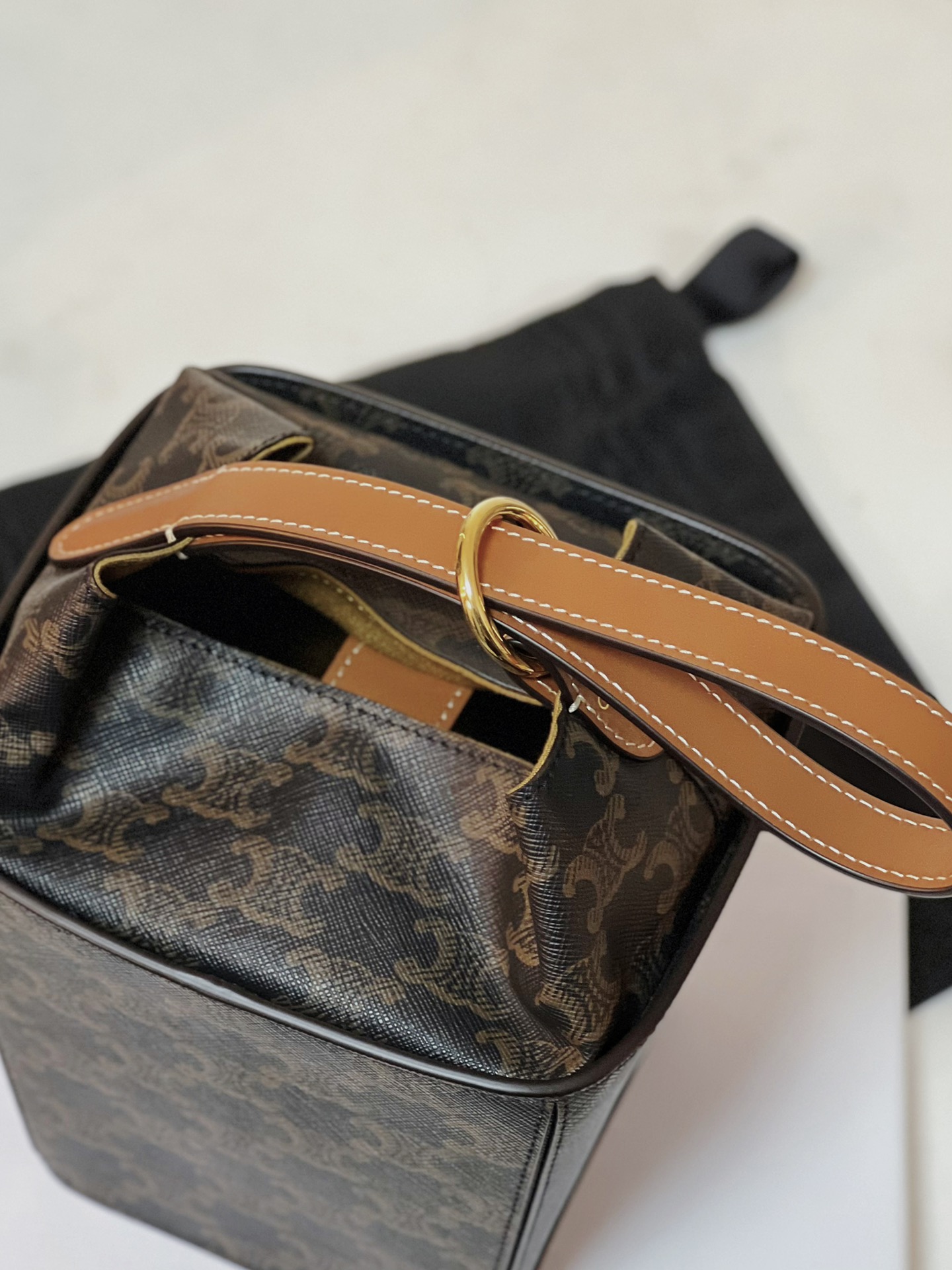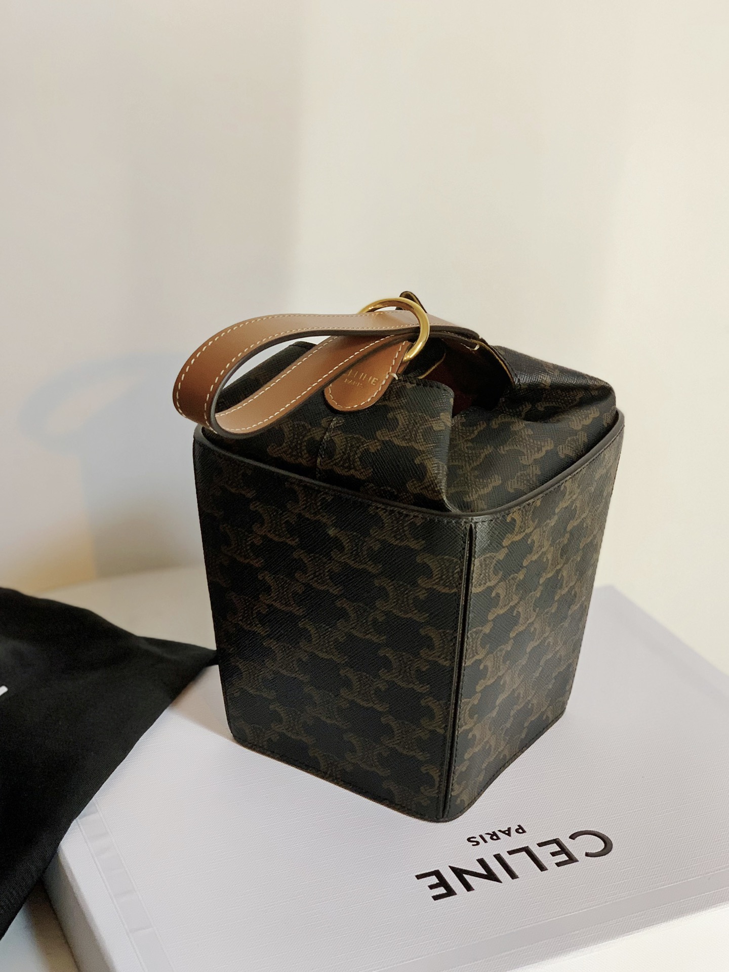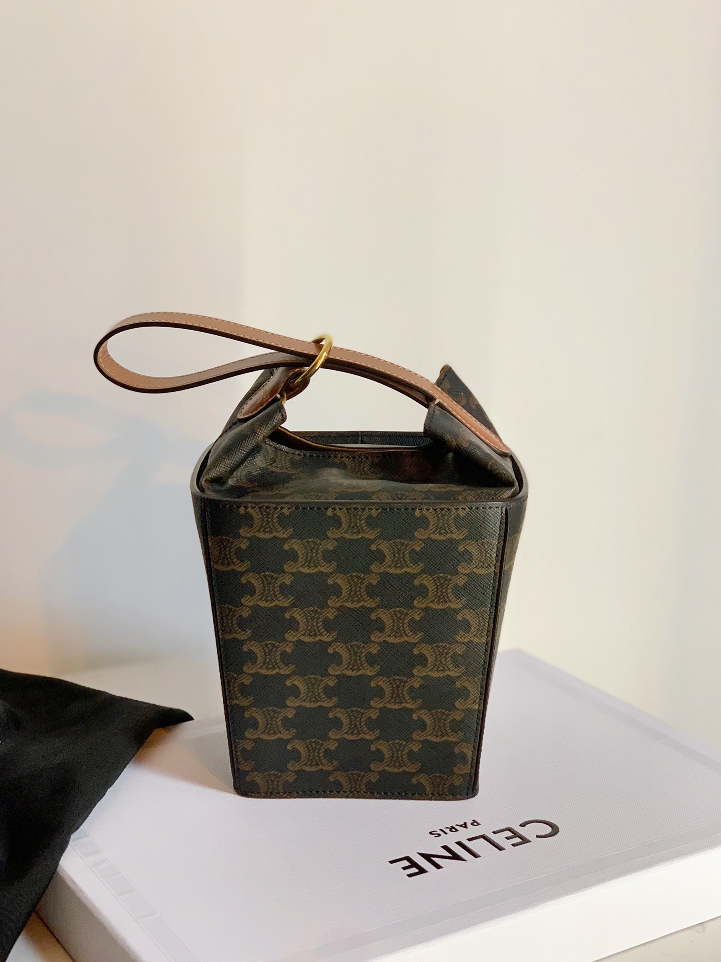 셀린느의 스트랩박스 핸드백은 독특한 A자 형태로 디자인되어 모던한 감각을 더합니다.
