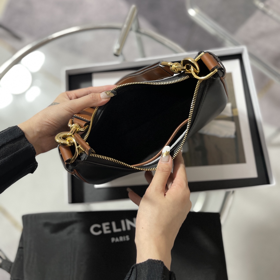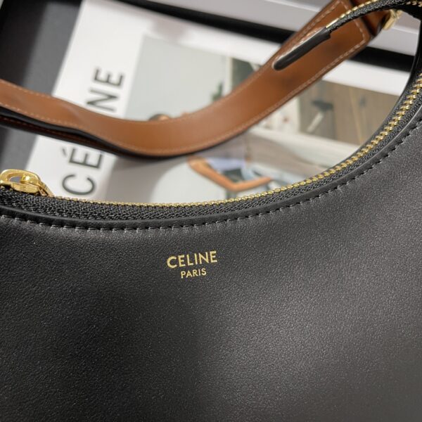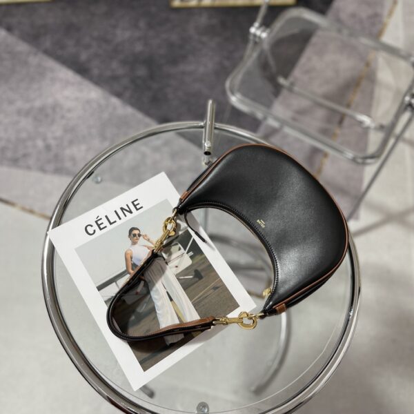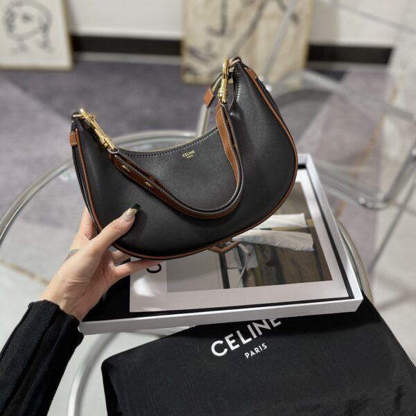 셀린느의 아바 미니 블랙 가죽 숄더백은 독특한 신월 형태로 프랑스의 우아함을 담고 있습니다.