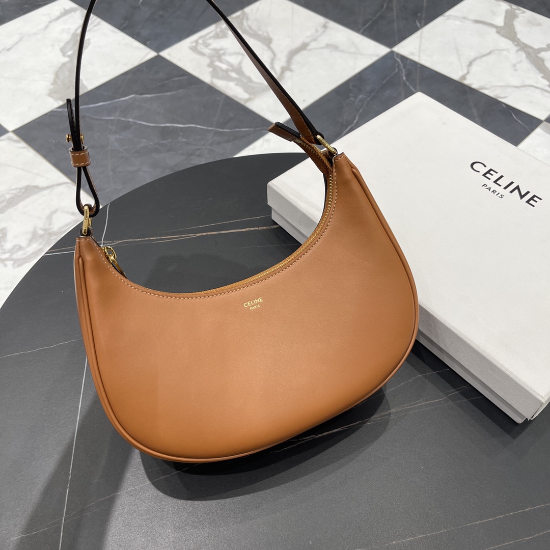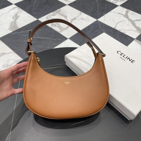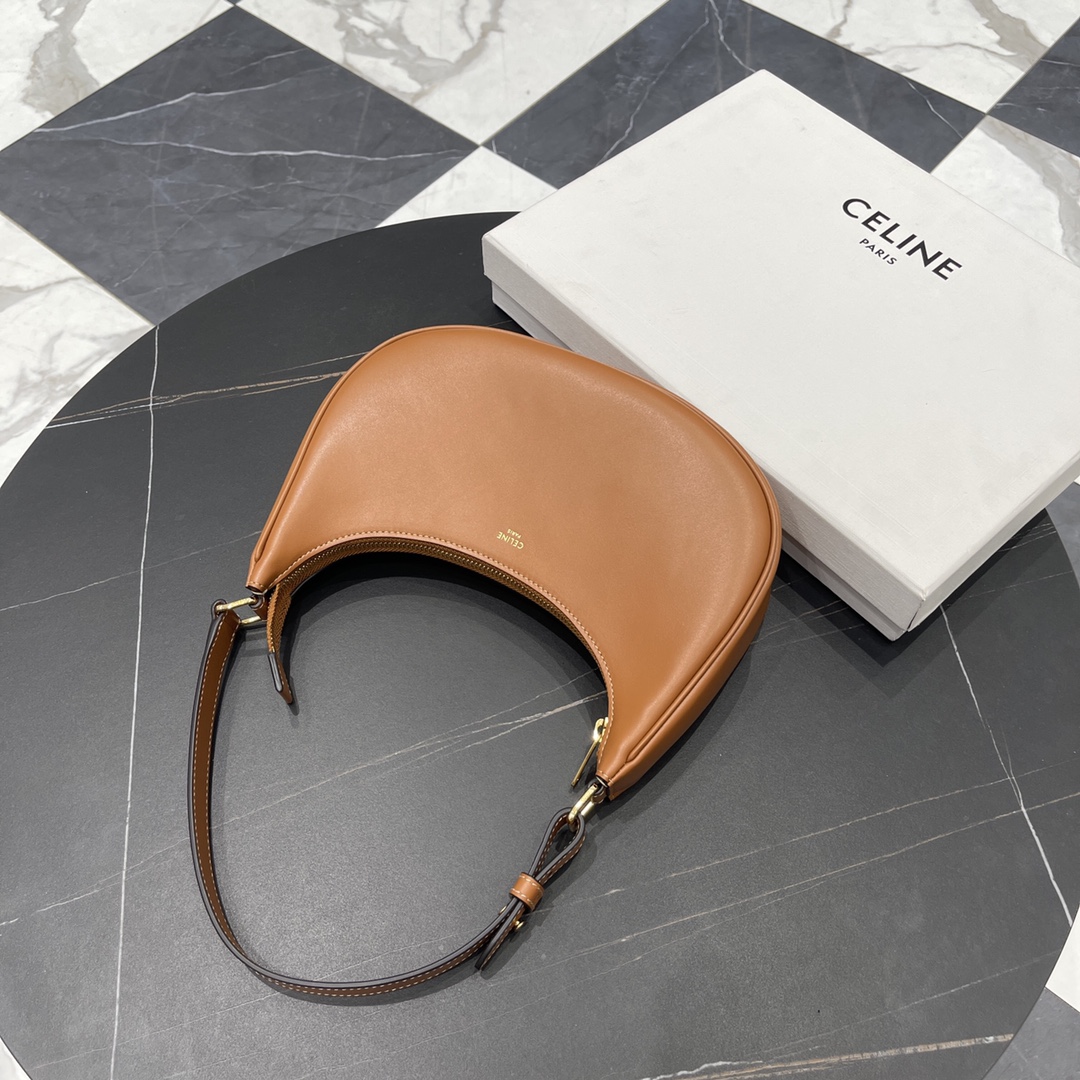 셀린느 아바 숄더백은 부드러운 황갈색의 가죽으로 제작되어 세련된 느낌을 줍니다.
