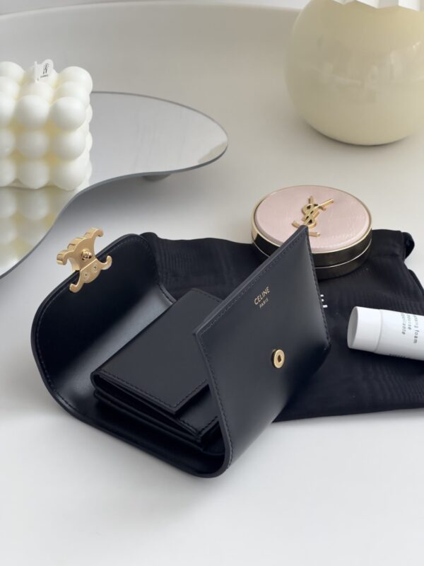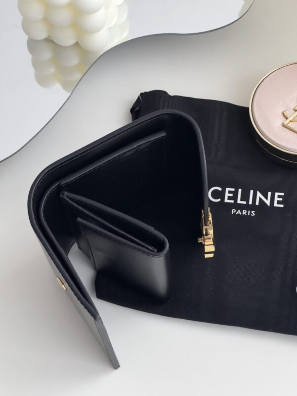 셀린느의 잠금 지갑은 고급스러운 소가죽으로 제작되어 내구성이 뛰어납니다.