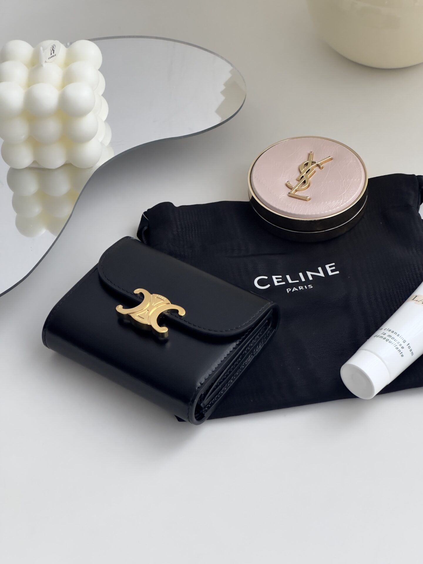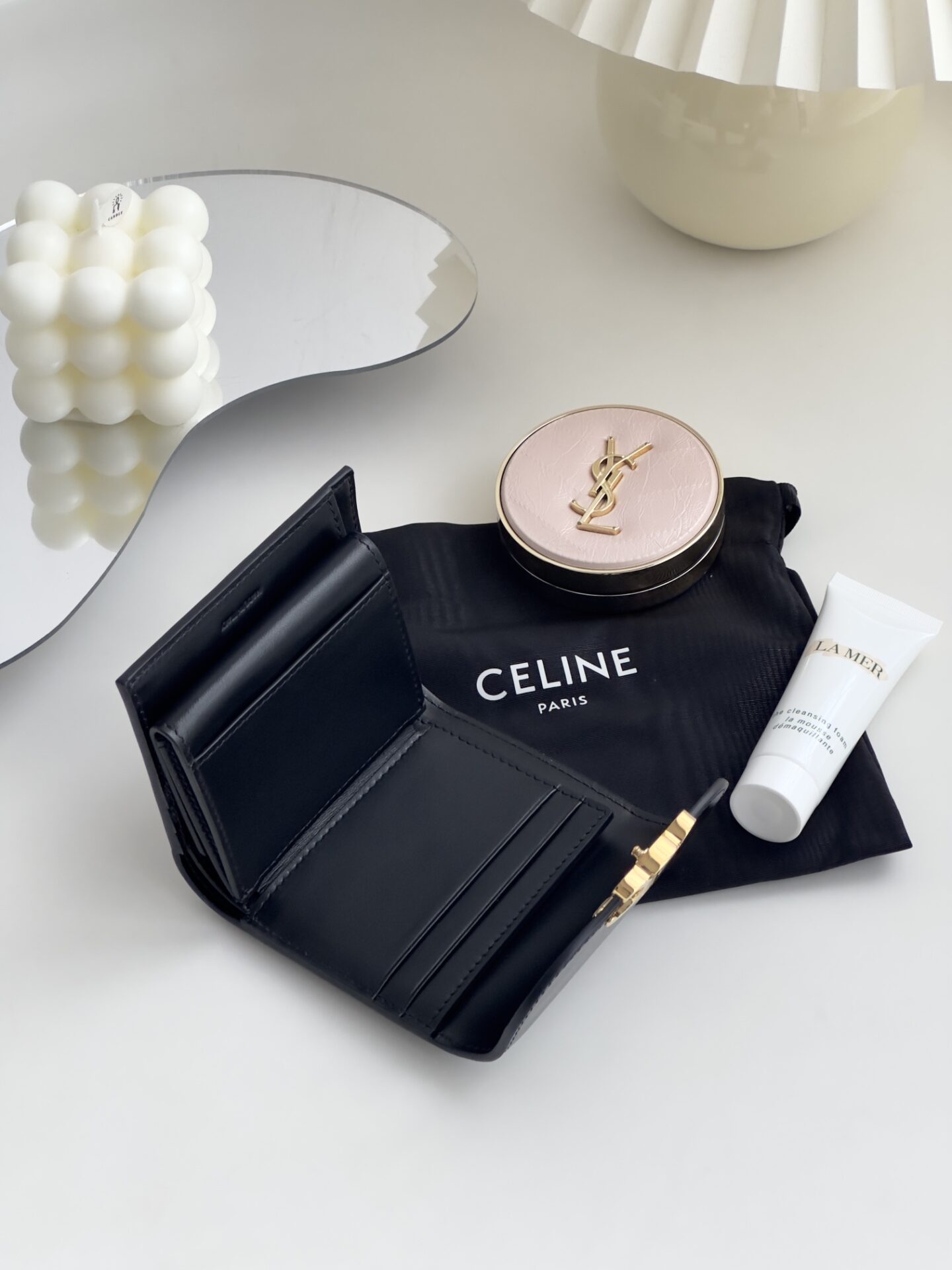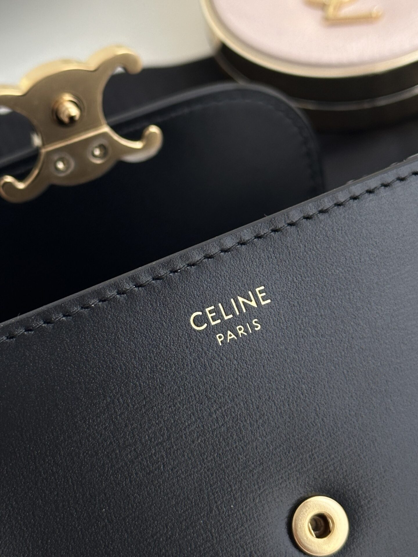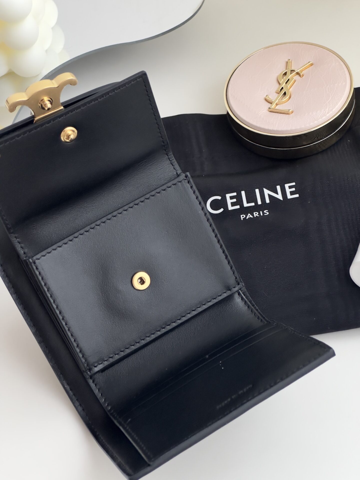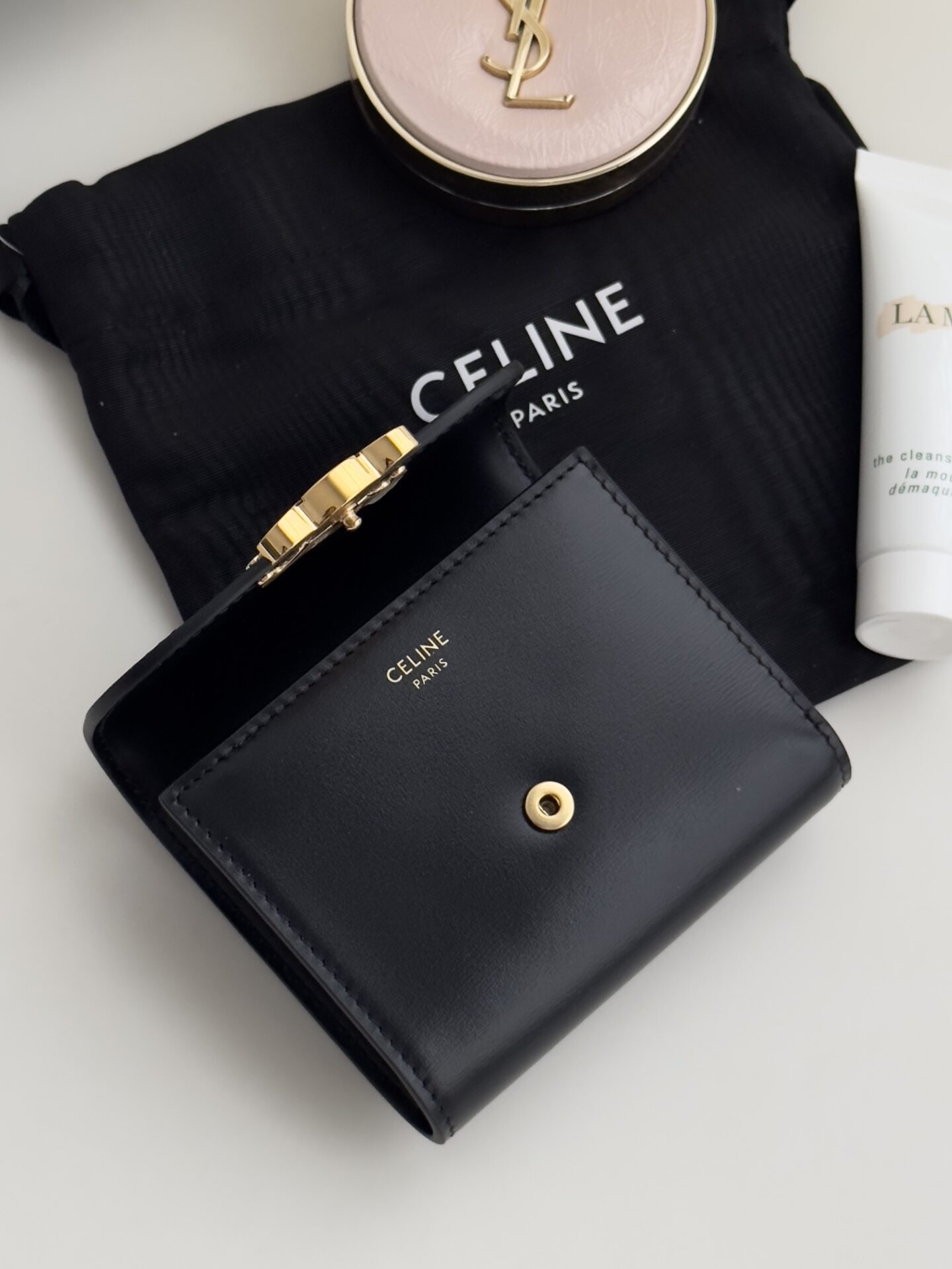 셀린느의 잠금 지갑은 고급스러운 소가죽으로 제작되어 내구성이 뛰어납니다.