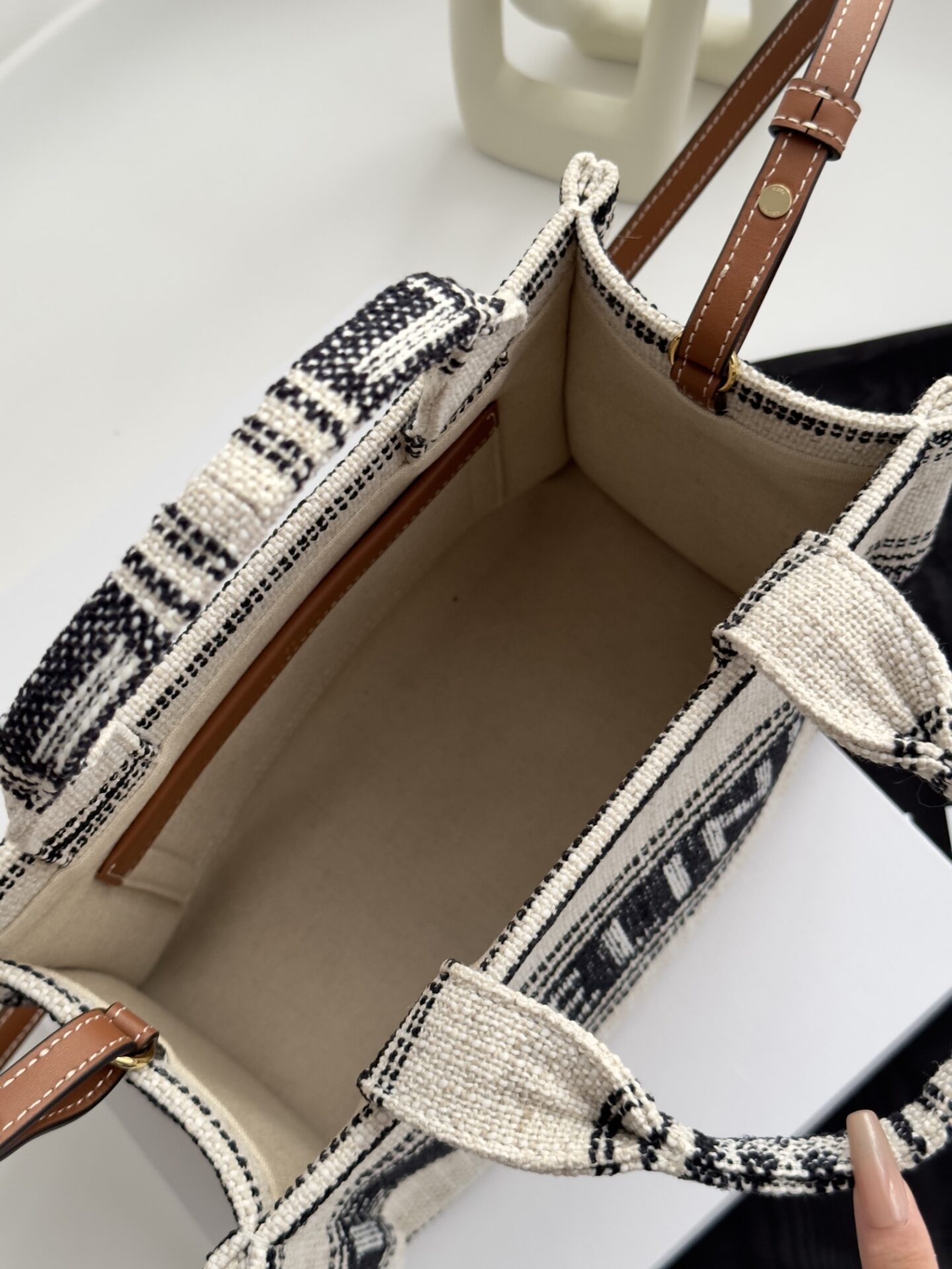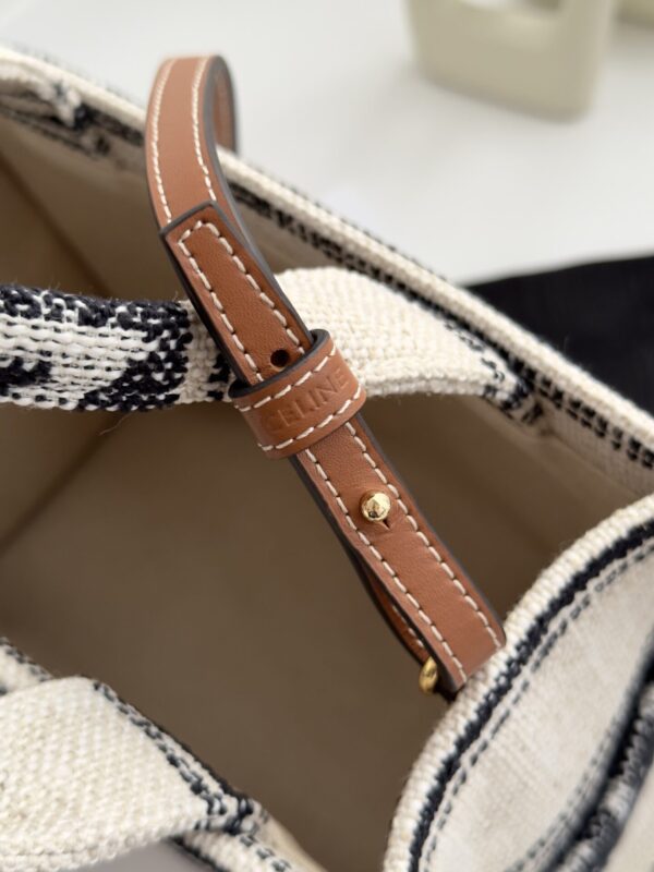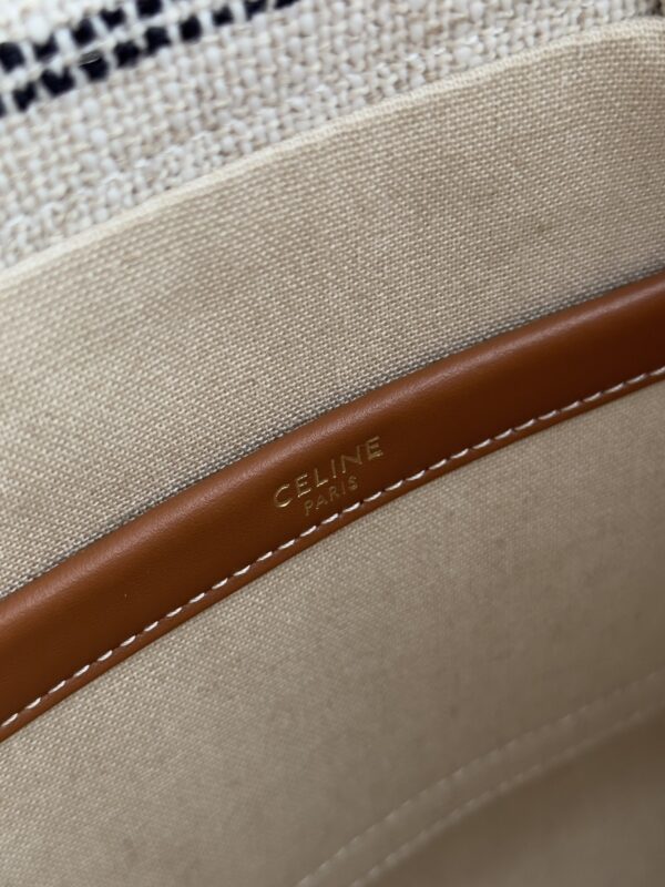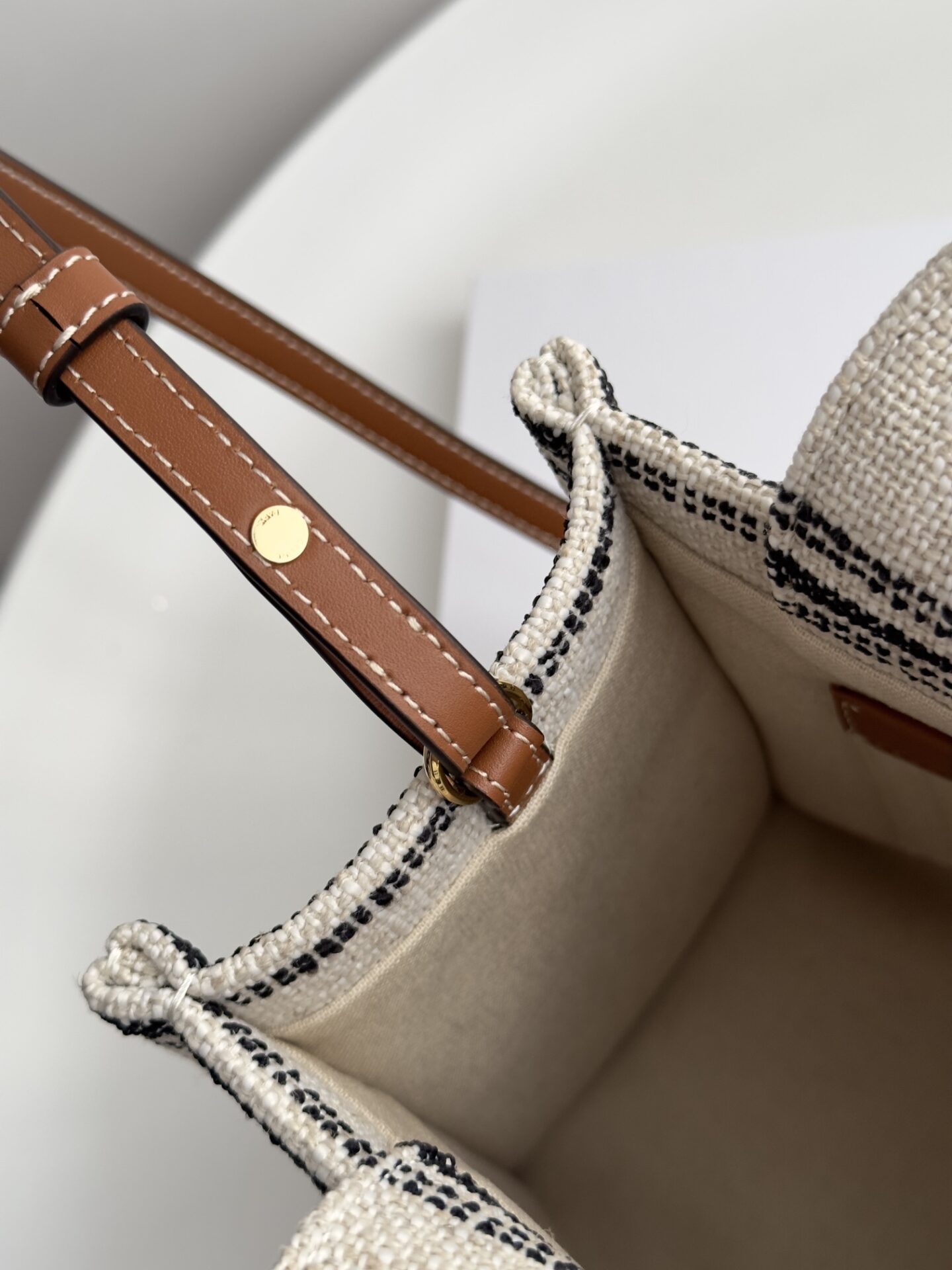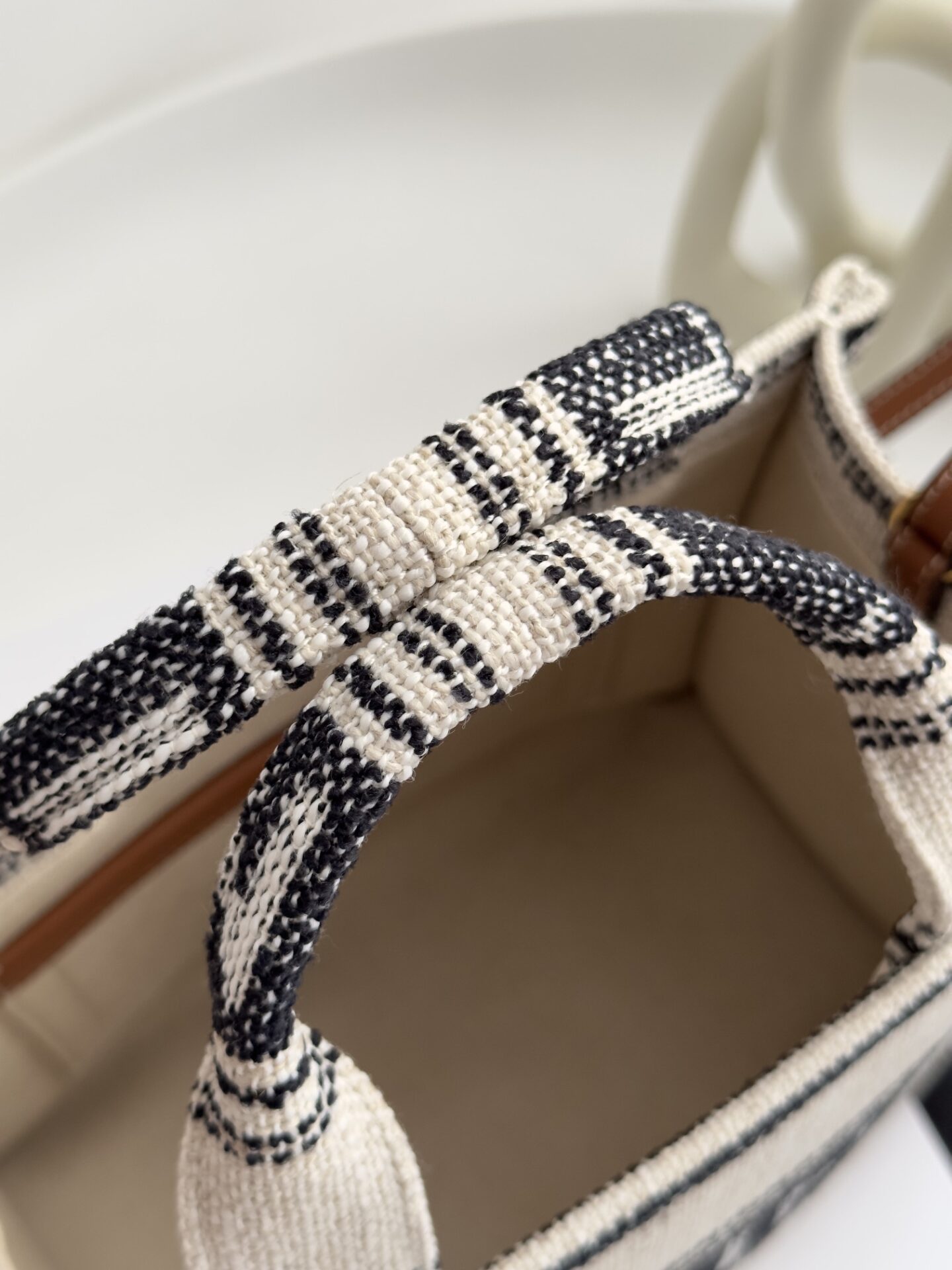 셀린느의 제직 스트라이프 캔버스 숄더백은 여름철 필수 아이템입니다.