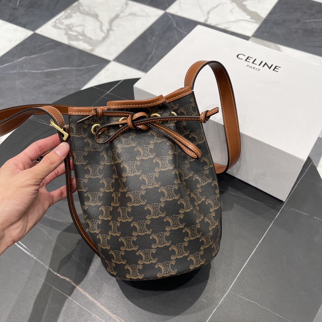 셀린느의 추리닝 미니 버킷백은 원단과 디자인의 조화가 돋보입니다.