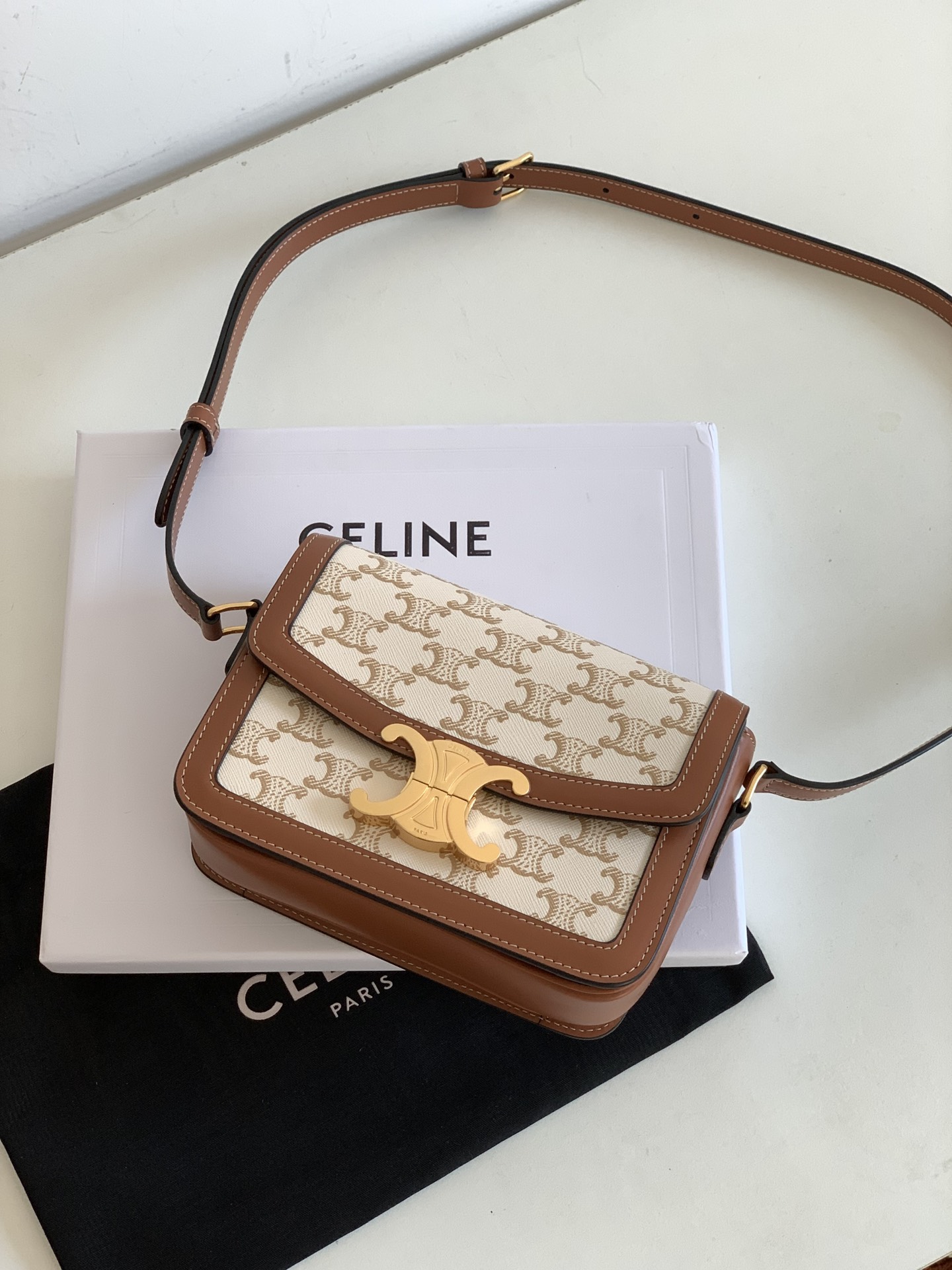 셀린느의 트리옴프 숄더백은 클래식한 디자인으로, 어떤 스타일에도 잘 어울립니다.