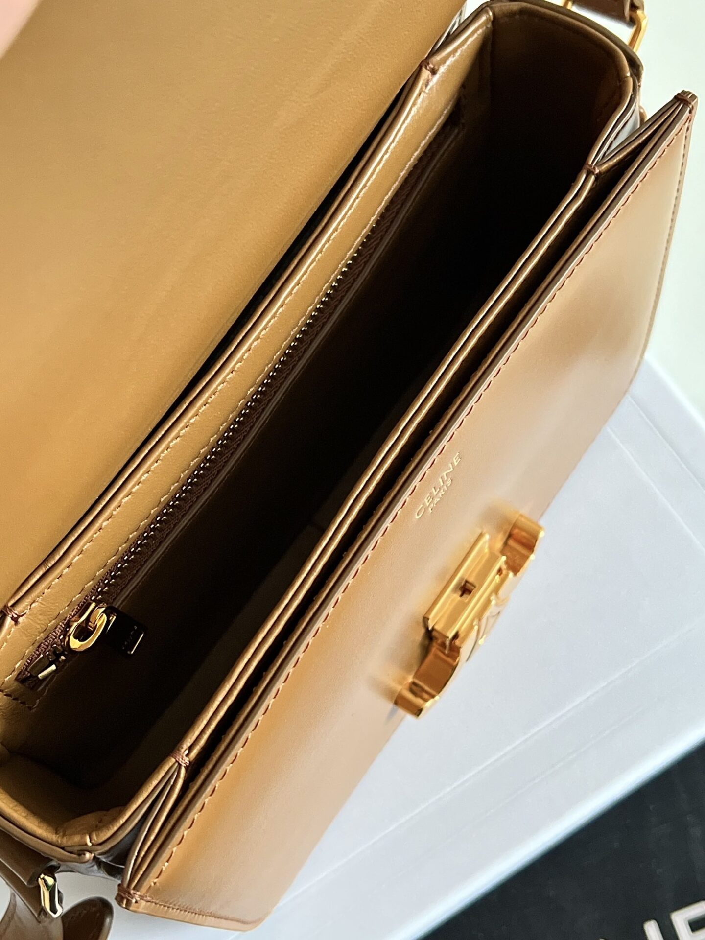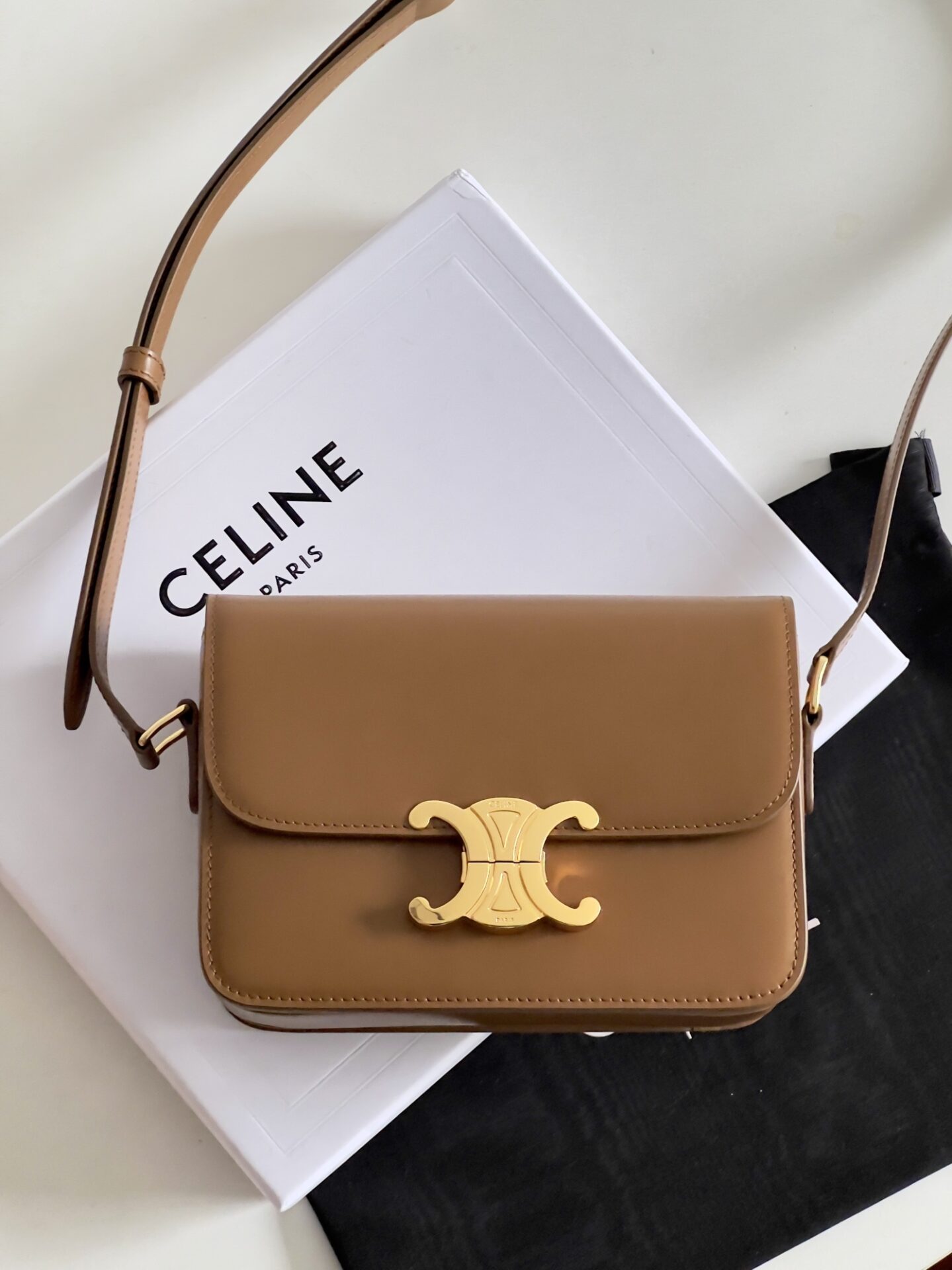 셀린느의 트리옴프 숄더백은 클래식한 디자인으로, 다양한 스타들이 이미 착용한 아이템입니다.