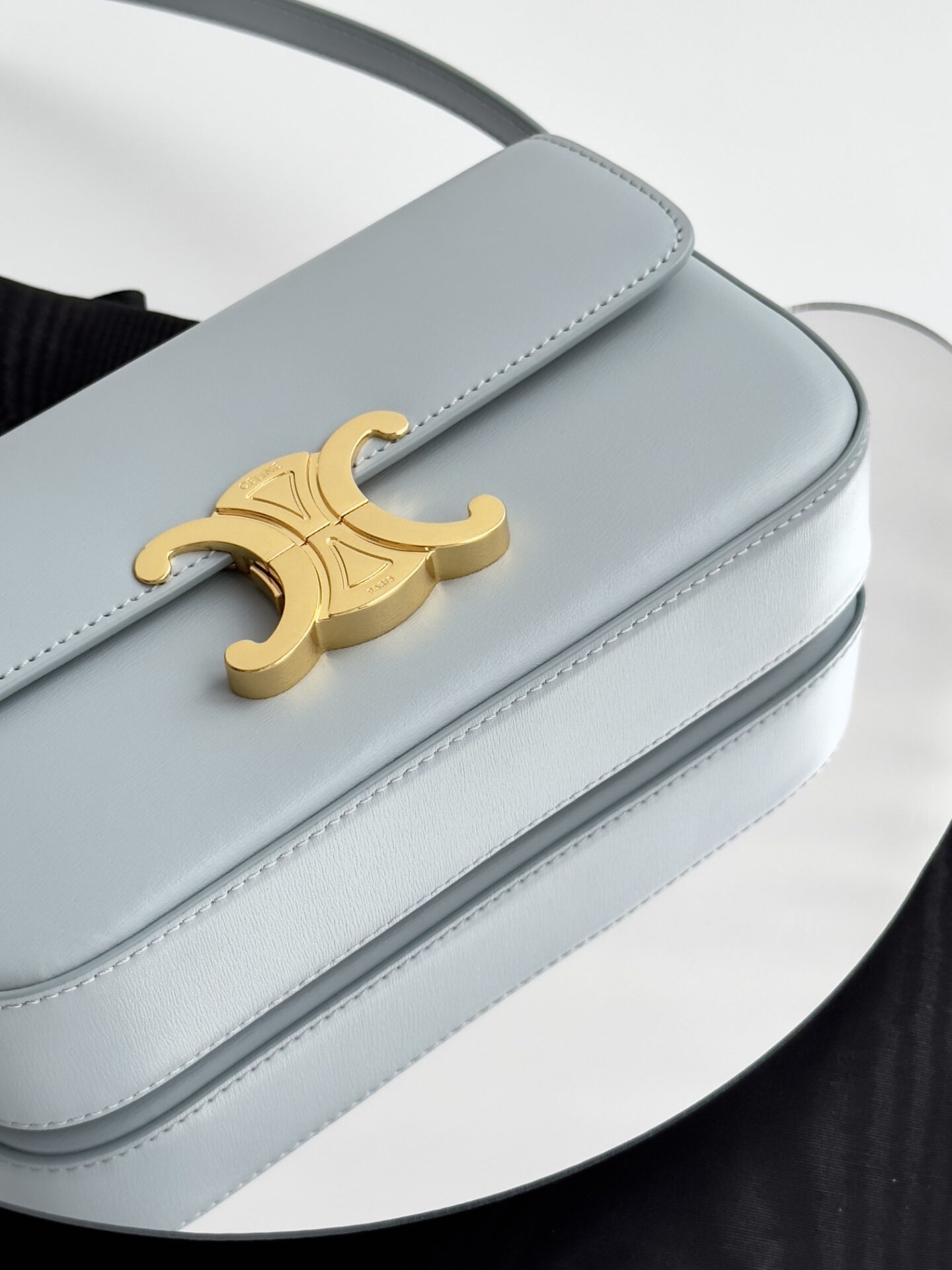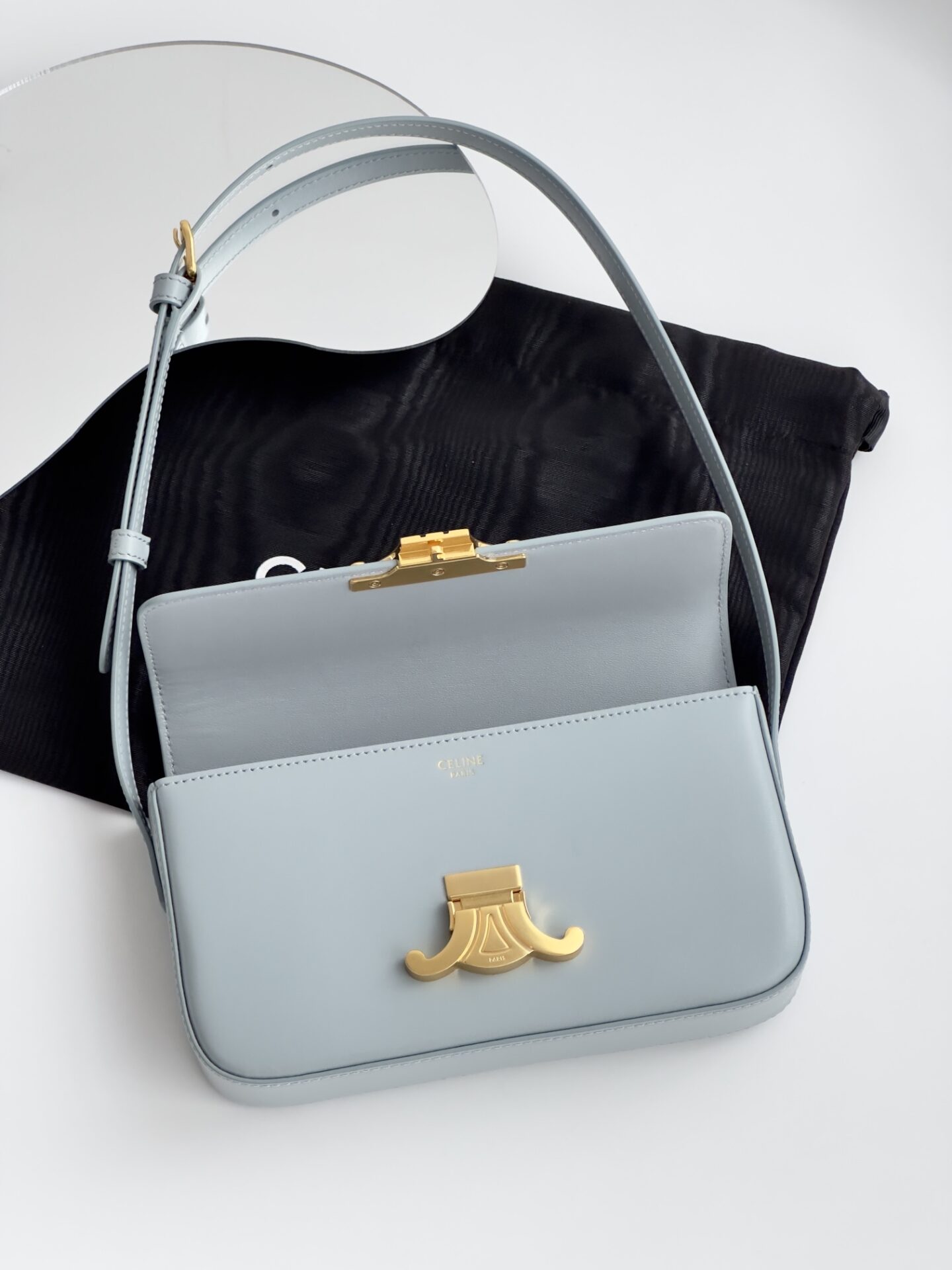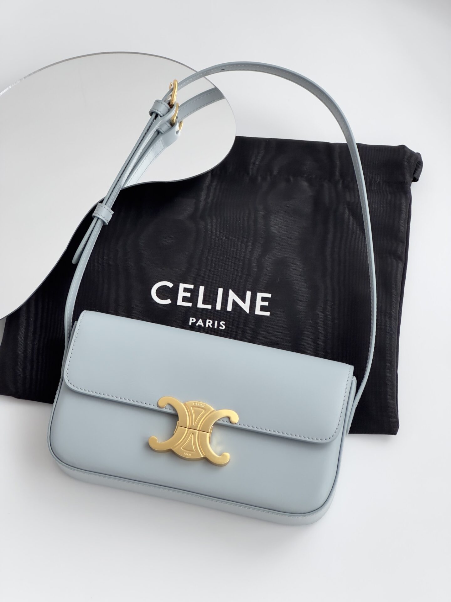 부드러운 연한 파랑 색상의 셀린느 트리옴프 숄더백입니다.