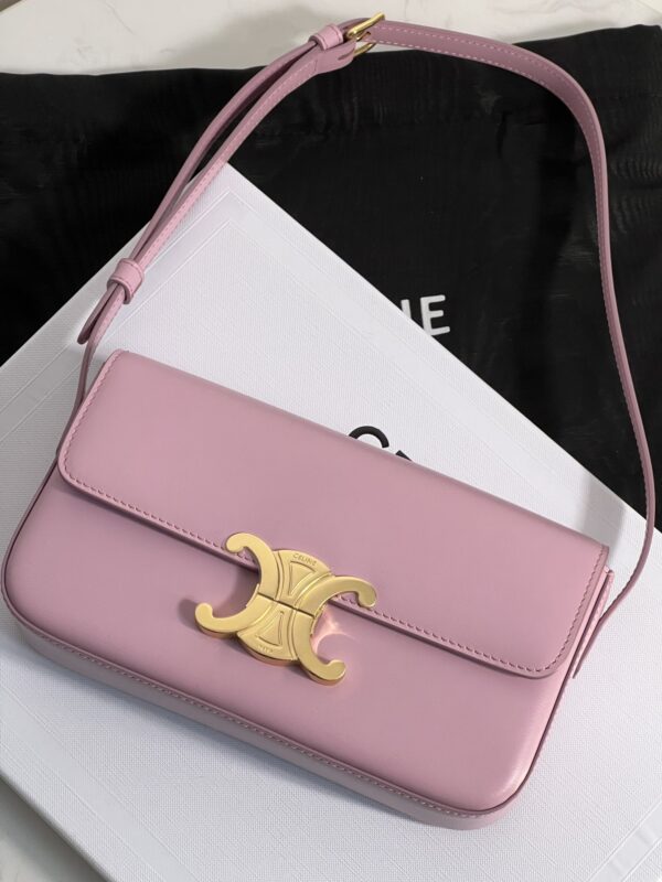 부드러운 핑크 컬러의 셀린느 트리옴프 숄더백입니다.