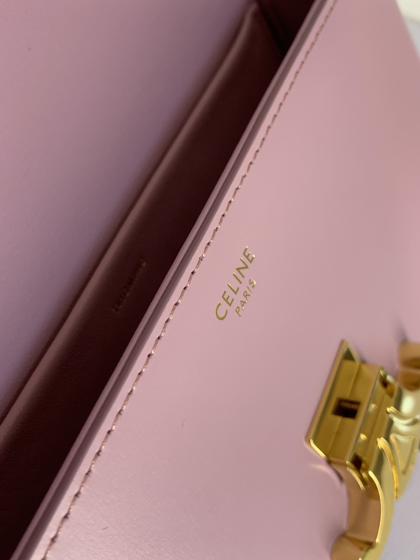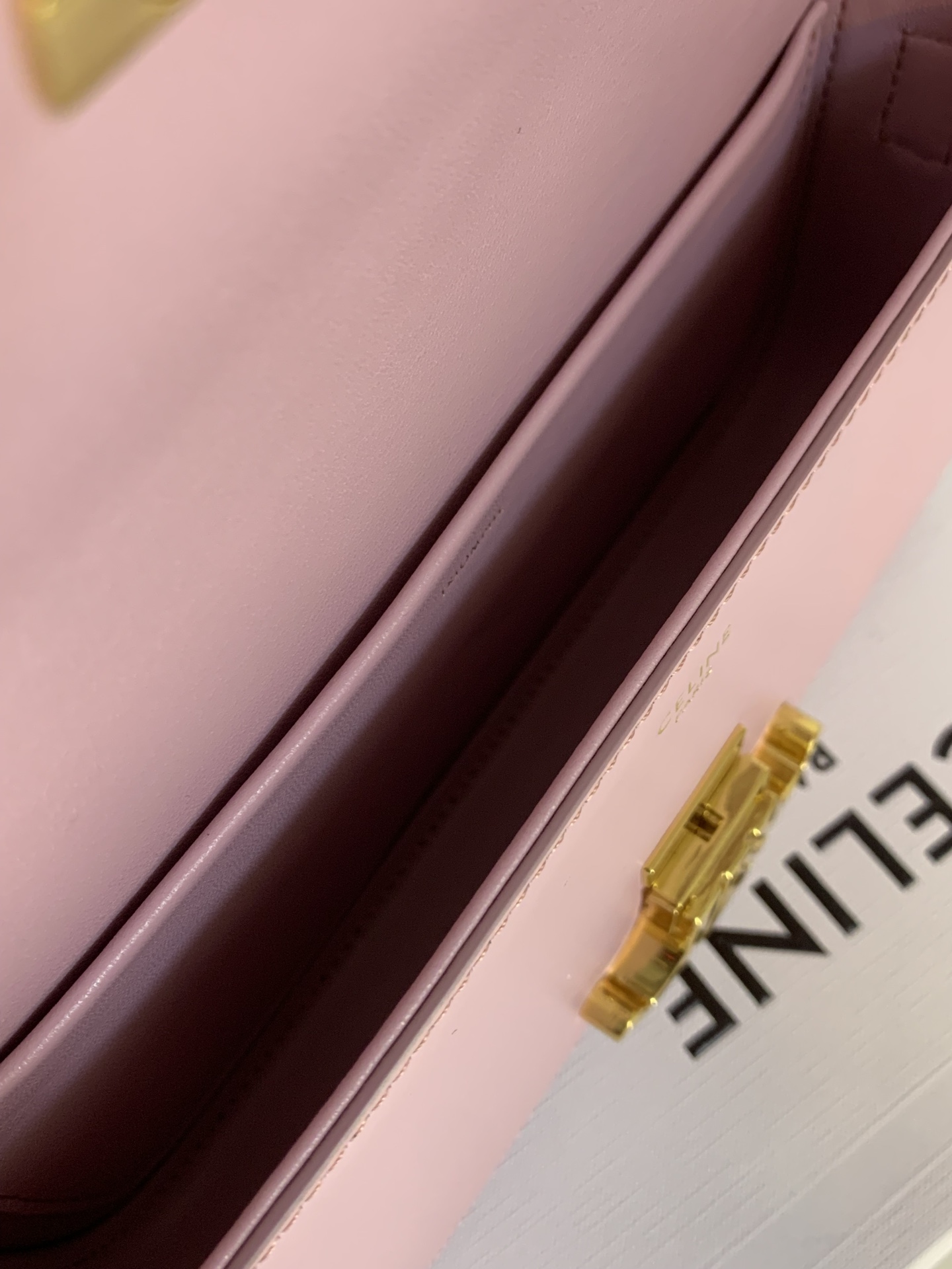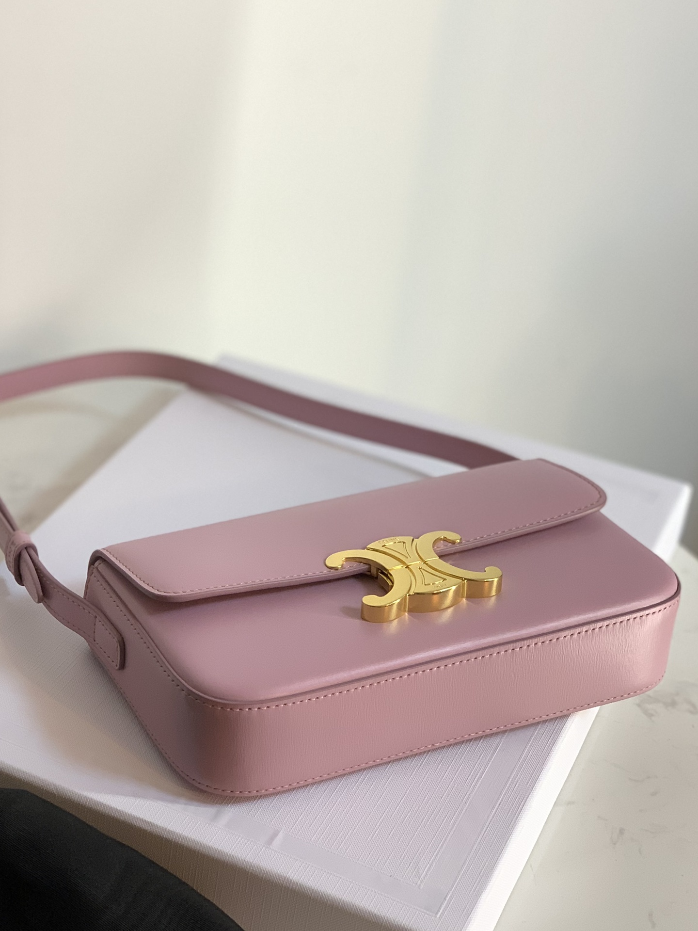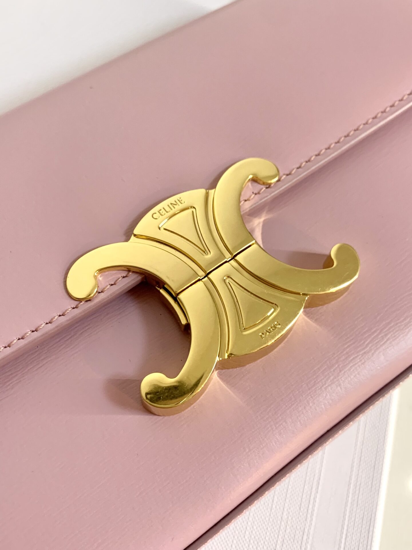 부드러운 핑크 컬러의 셀린느 트리옴프 숄더백입니다.