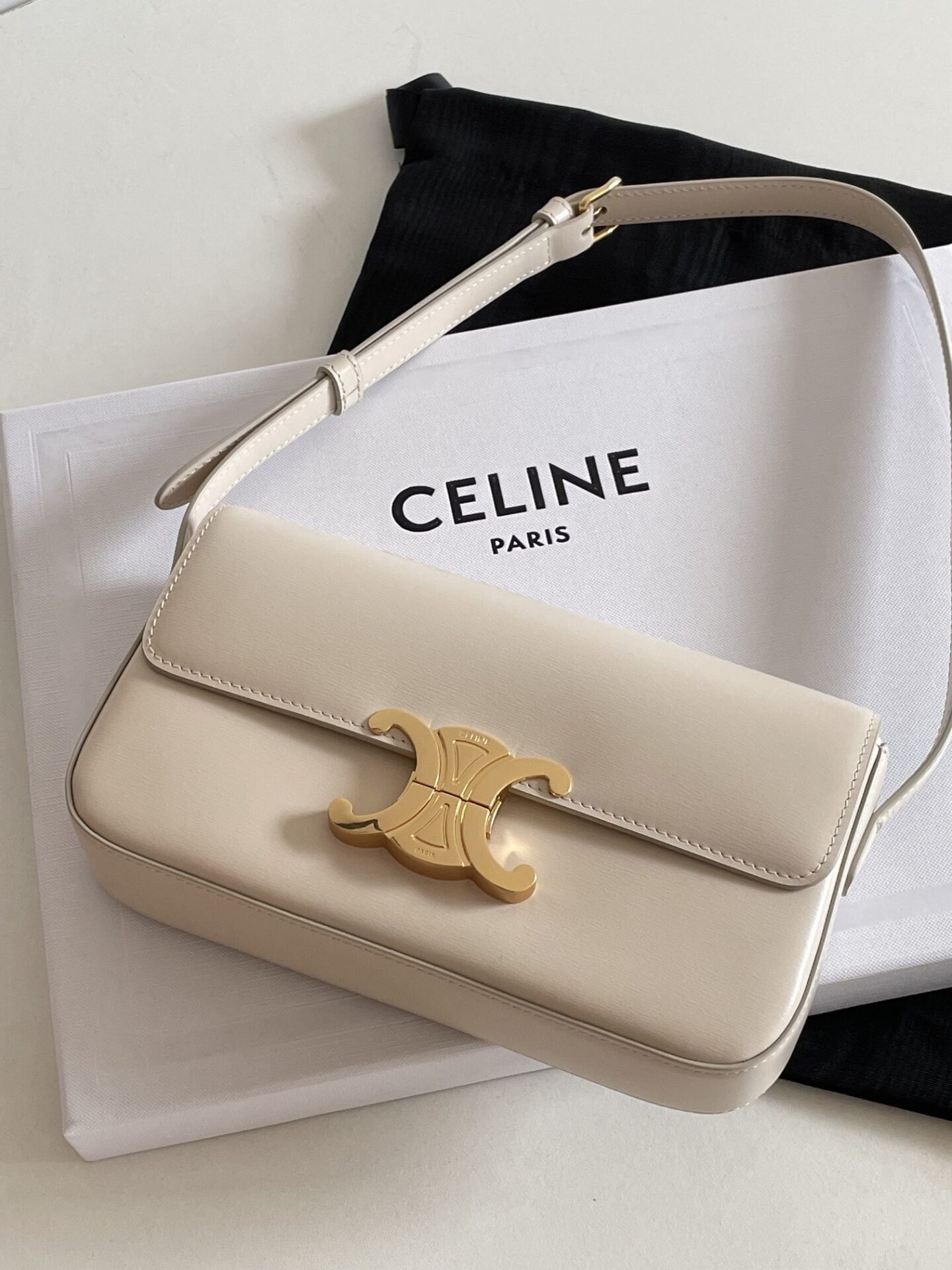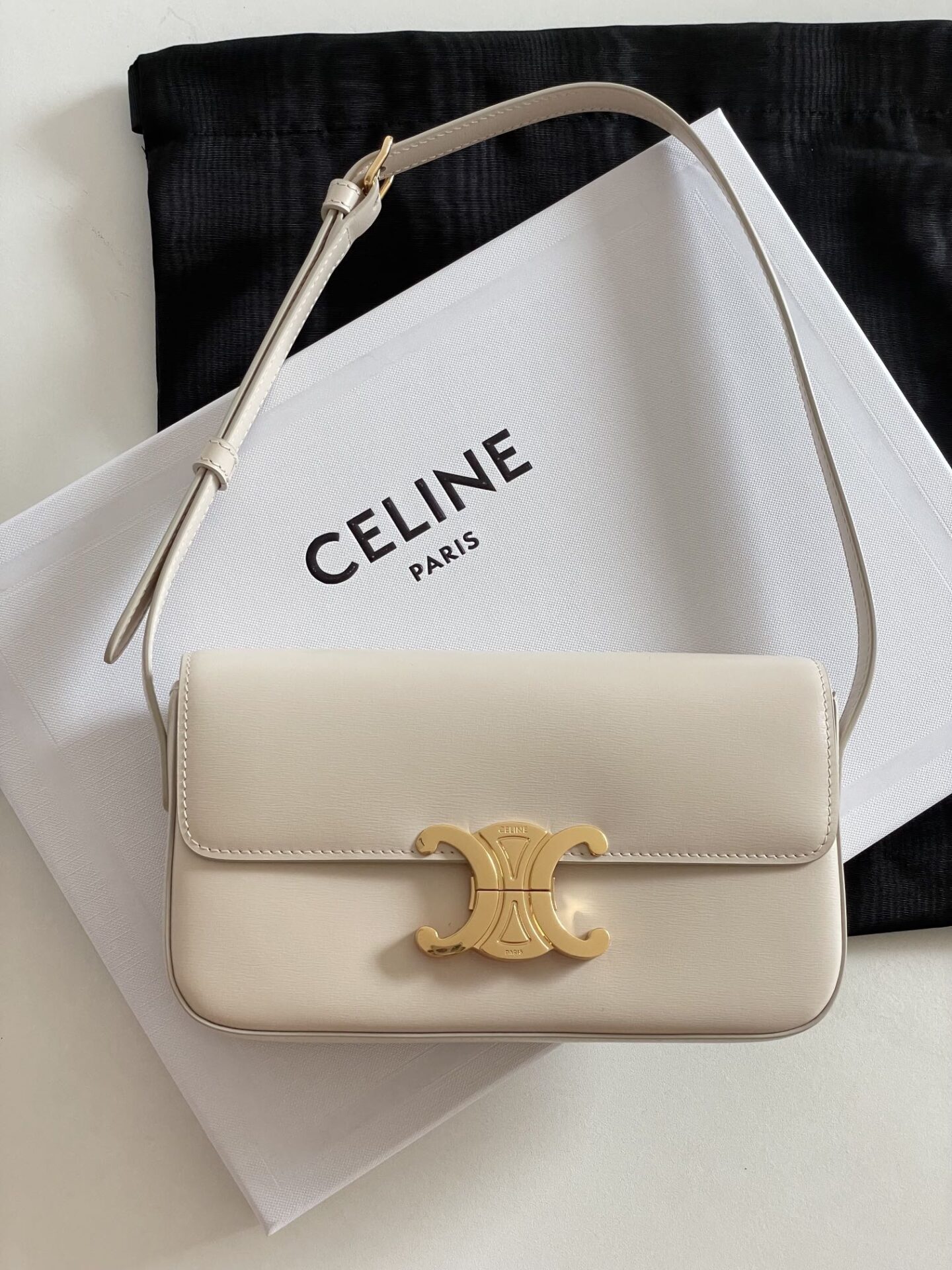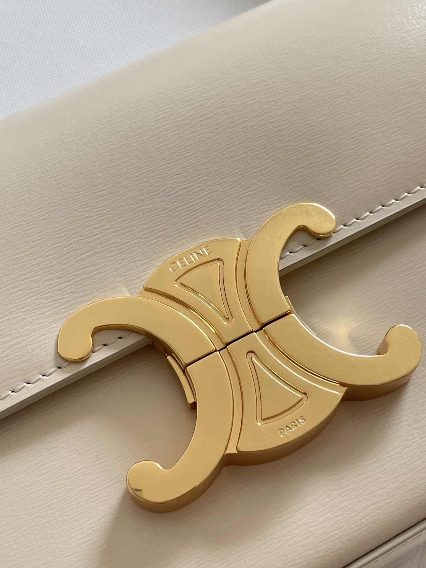 아이보리 색상의 셀린느 트리옴프 크로스백은 세련된 디자인과 실용성을 겸비한 제품입니다.