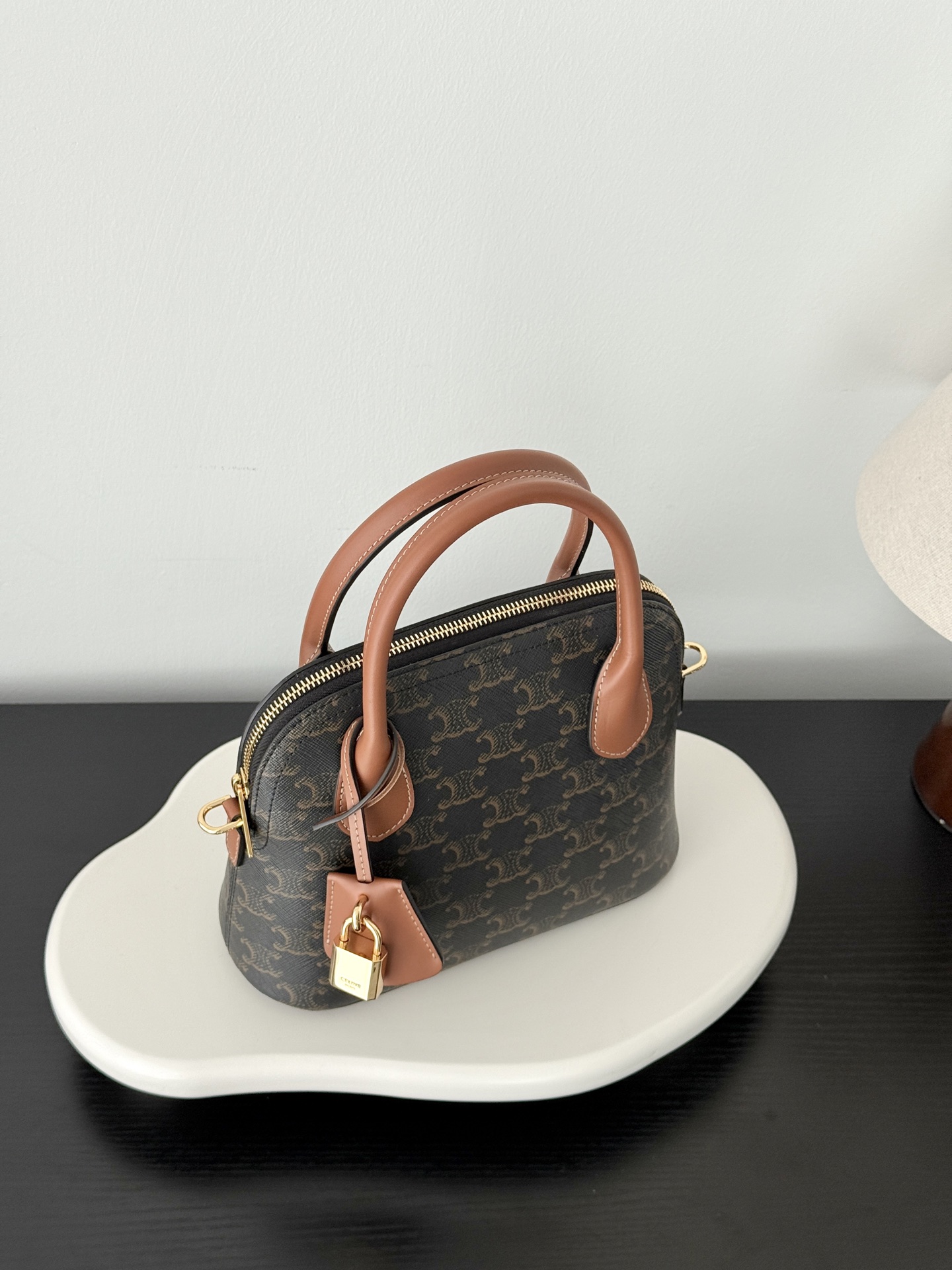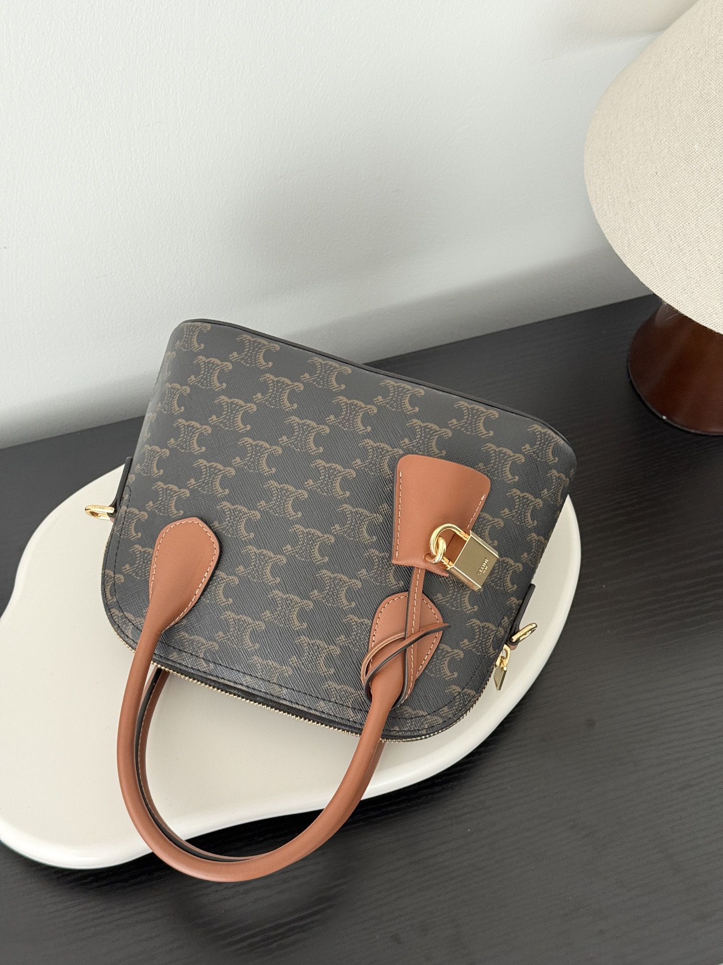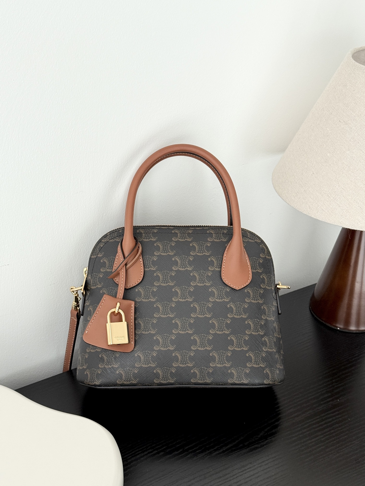셀린느의 티안 호노린 백은 클래식한 트리옴프 로고가 인상적인 디자인으로, 우아한 쉘 형태를 자랑합니다.