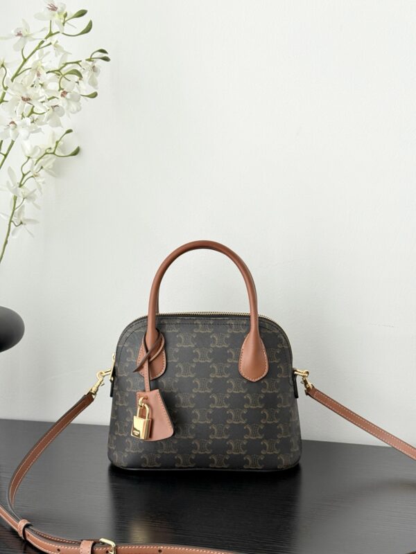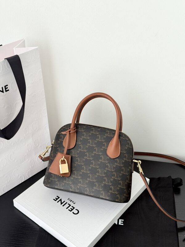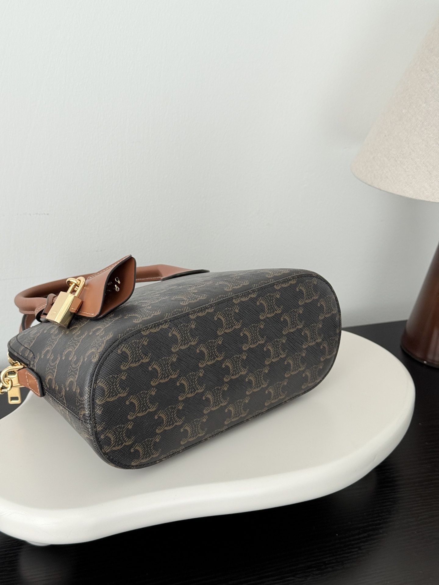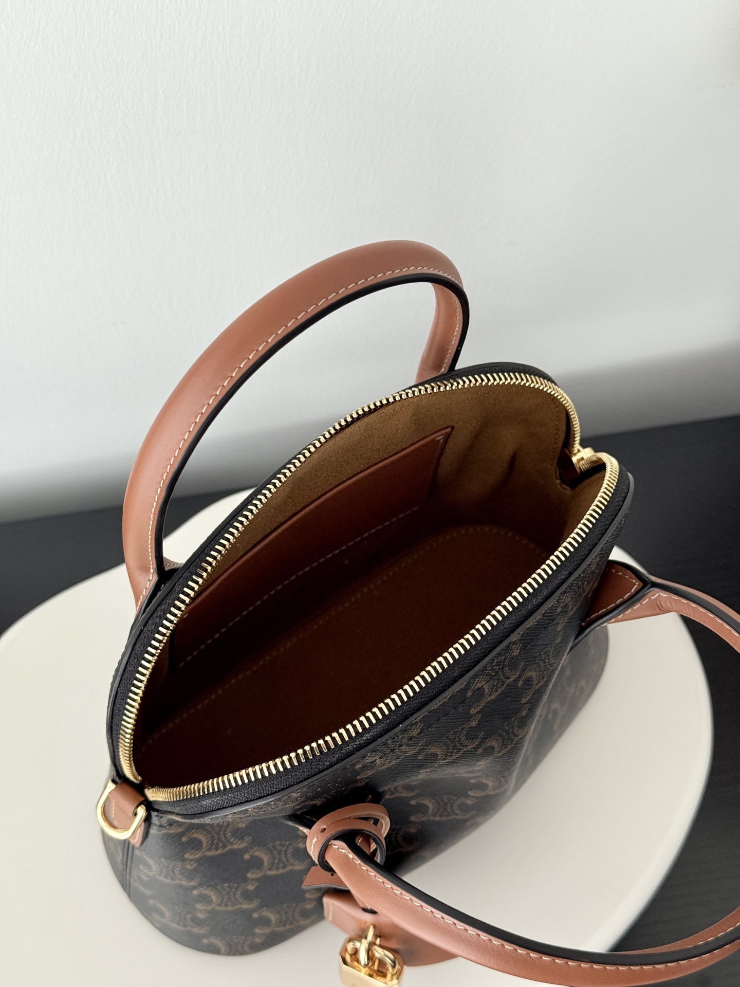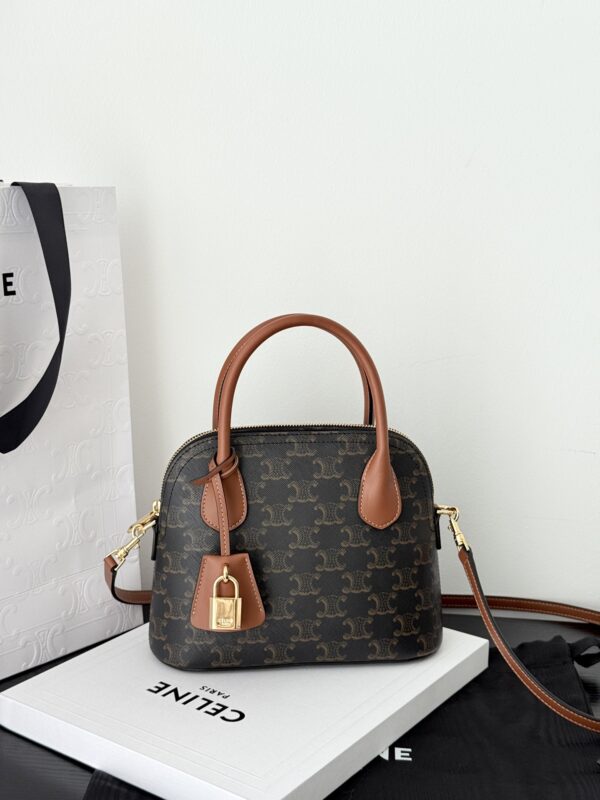 셀린느의 티안 호노린 백은 클래식한 트리옴프 로고가 인상적인 디자인으로, 우아한 쉘 형태를 자랑합니다.