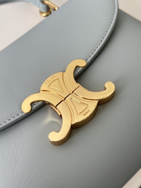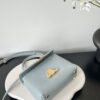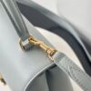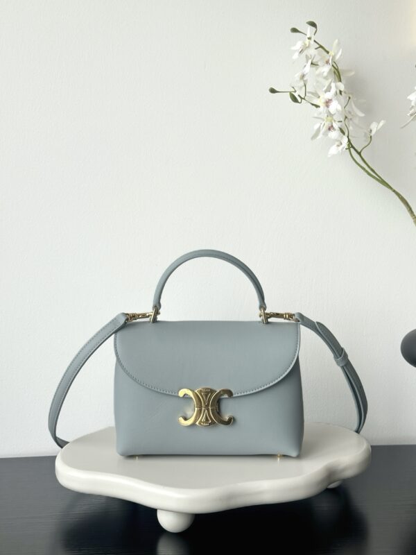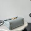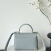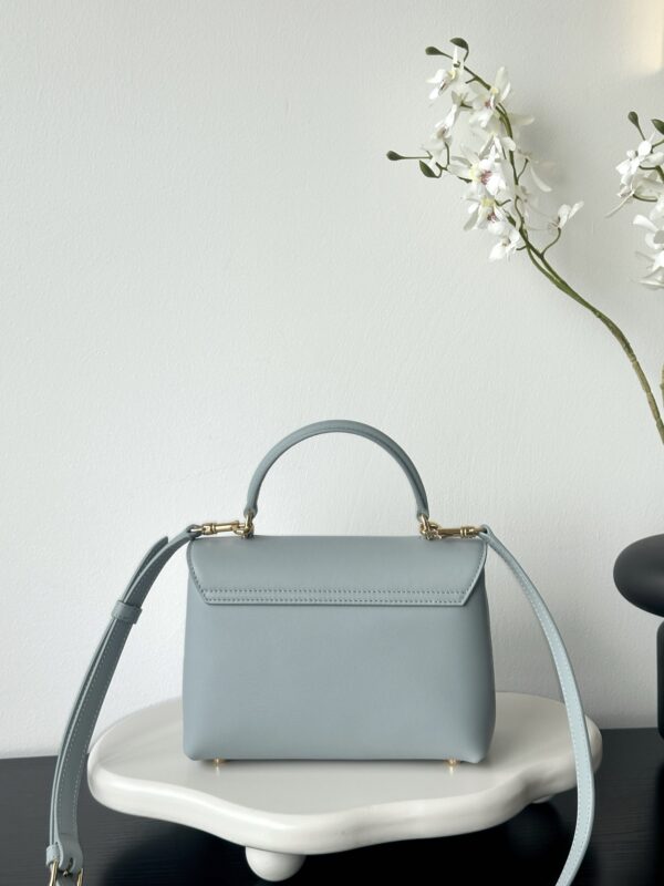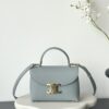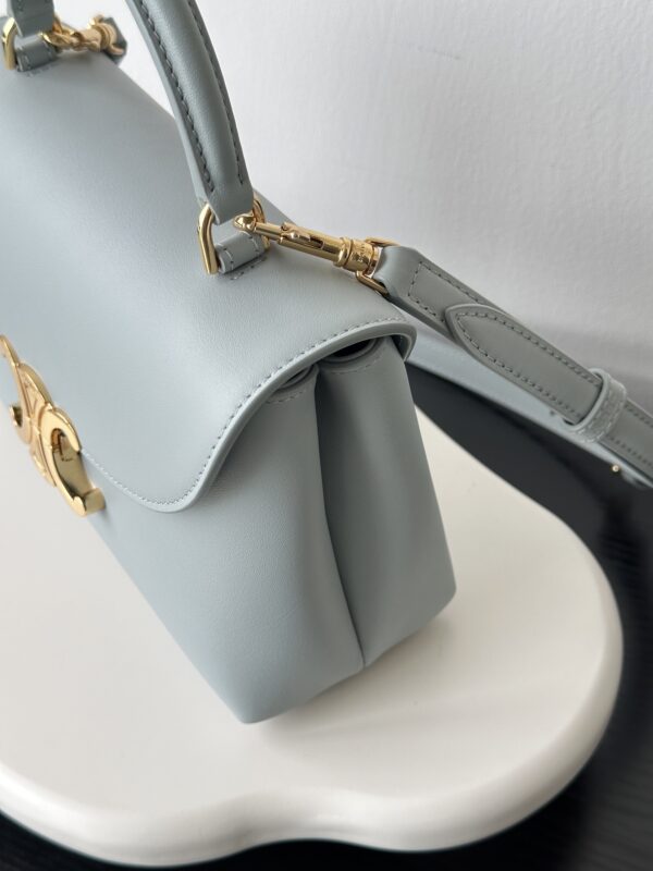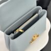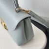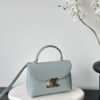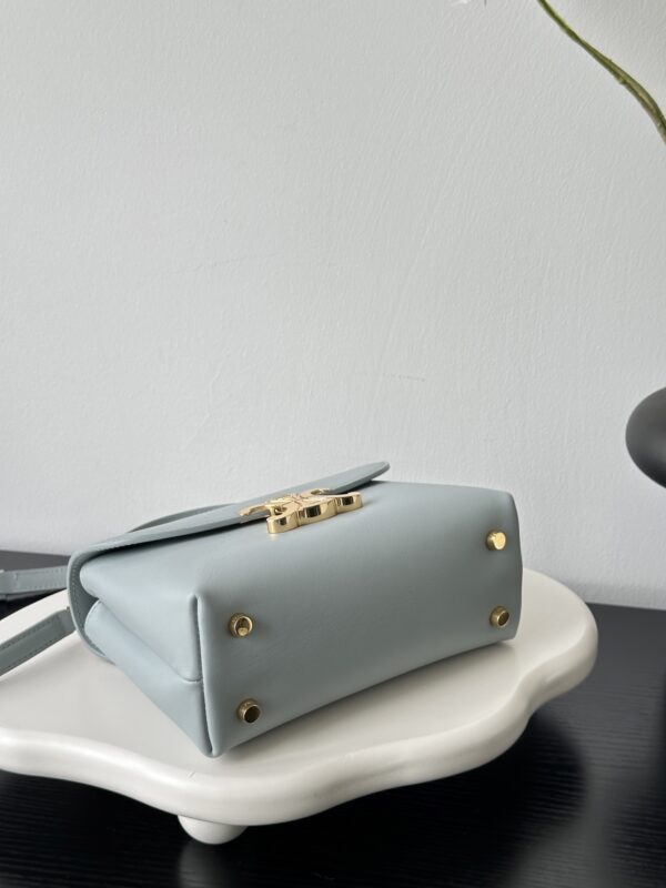 부드러운 블루 컬러와 골드 하드웨어가 조화를 이루어 고급스러운 느낌을 줍니다. 단일 손잡이 디자인으로 우아함을 더하며, 작은 사이즈임에도 불구하고 일상에서 활용하기에 적합합니다.