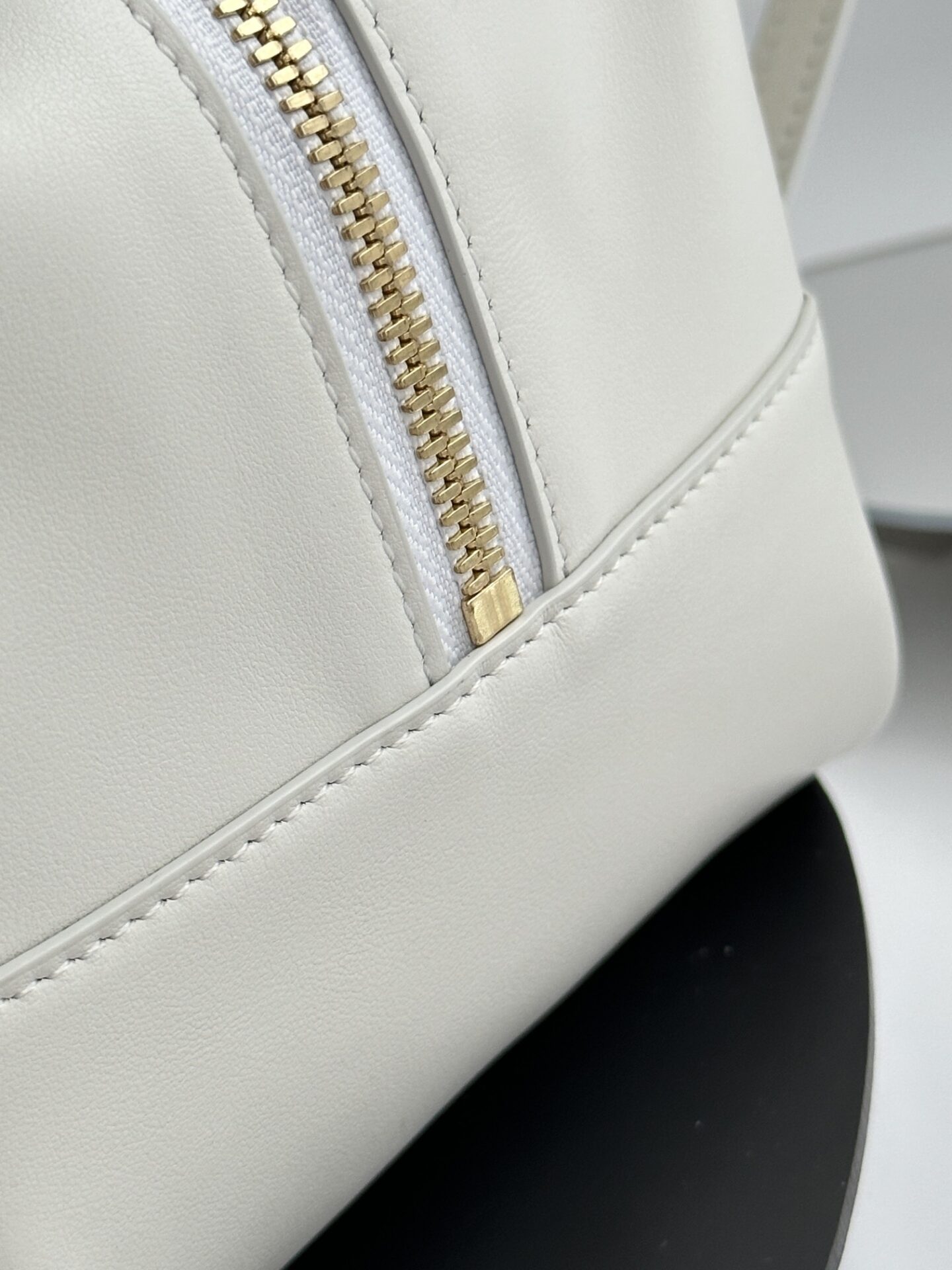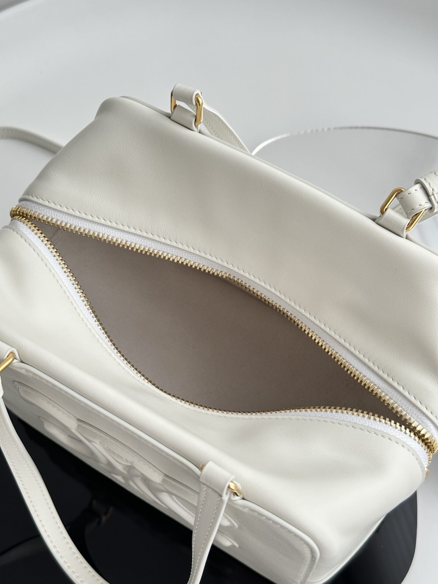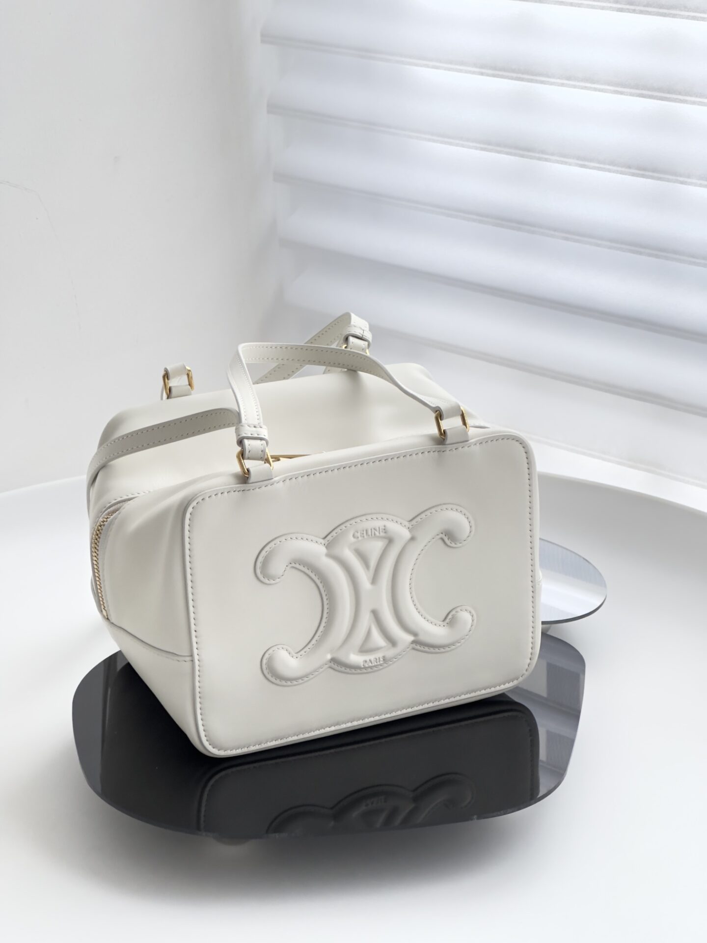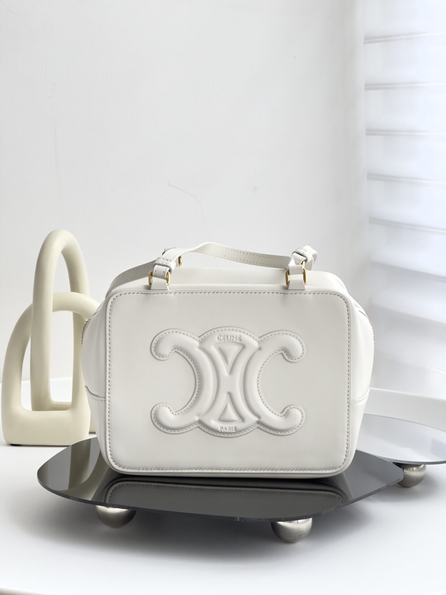 부드러운 아이보리 색상으로 여름에 잘 어울리는 폴디드 큐브 백입니다.