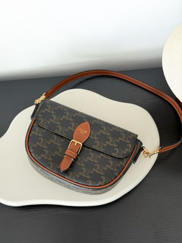 셀린느의 새로운 폴코 숄더백을 소개합니다. 이 가방은 복고풍의 매력을 지닌 디자인으로, 전통적인 마鞍 형태를 현대적으로 재해석했습니다.