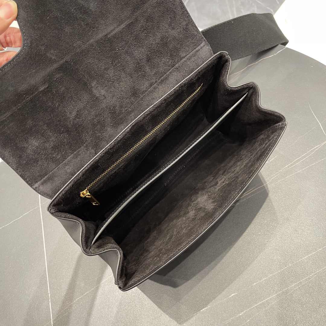 모던한 블랙 컬러와 세련된 디자인이 조화를 이루어 다양한 스타일에 매치하기 좋습니다. 스마트폰, 카드 지갑, 선글라스, 열쇠 등 필수 소지품을 수납할 수 있는 넉넉한 공간을 자랑합니다.