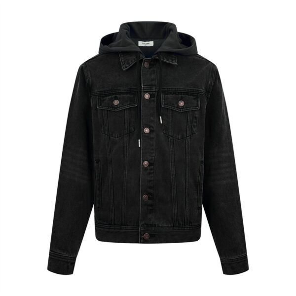 셀린느 【잔디집2】 트러커 후드 데님 자켓 블랙(세븐) 디테일 이미지