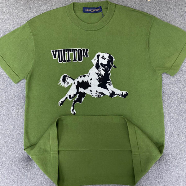 - 루이비통 브랜드의 반팔 티셔츠이며, 강아지 모티브가 디자인된 인따르시아 기법을 사용하였습니다.