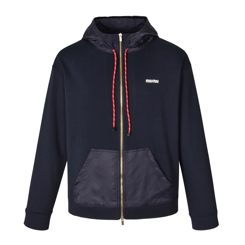 - 미우미우 코튼 플리스 지퍼 후드는 캐주얼한 일상복용 상의입니다.