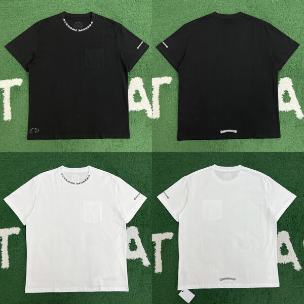 - 이 제품은 크롬하츠 브랜드의 남성용 긴팔 티셔츠이며, 네크라인에 로고가 있는 디자인입니다.